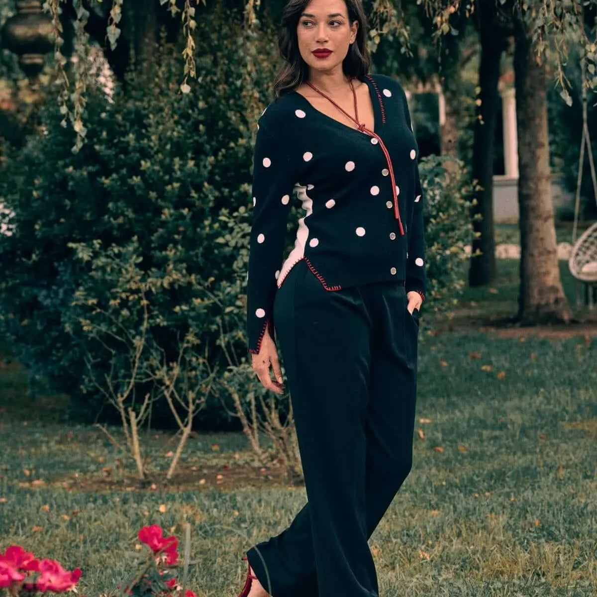 Cárdigan con escote en pico y lunares en la parte delantera NEGRO