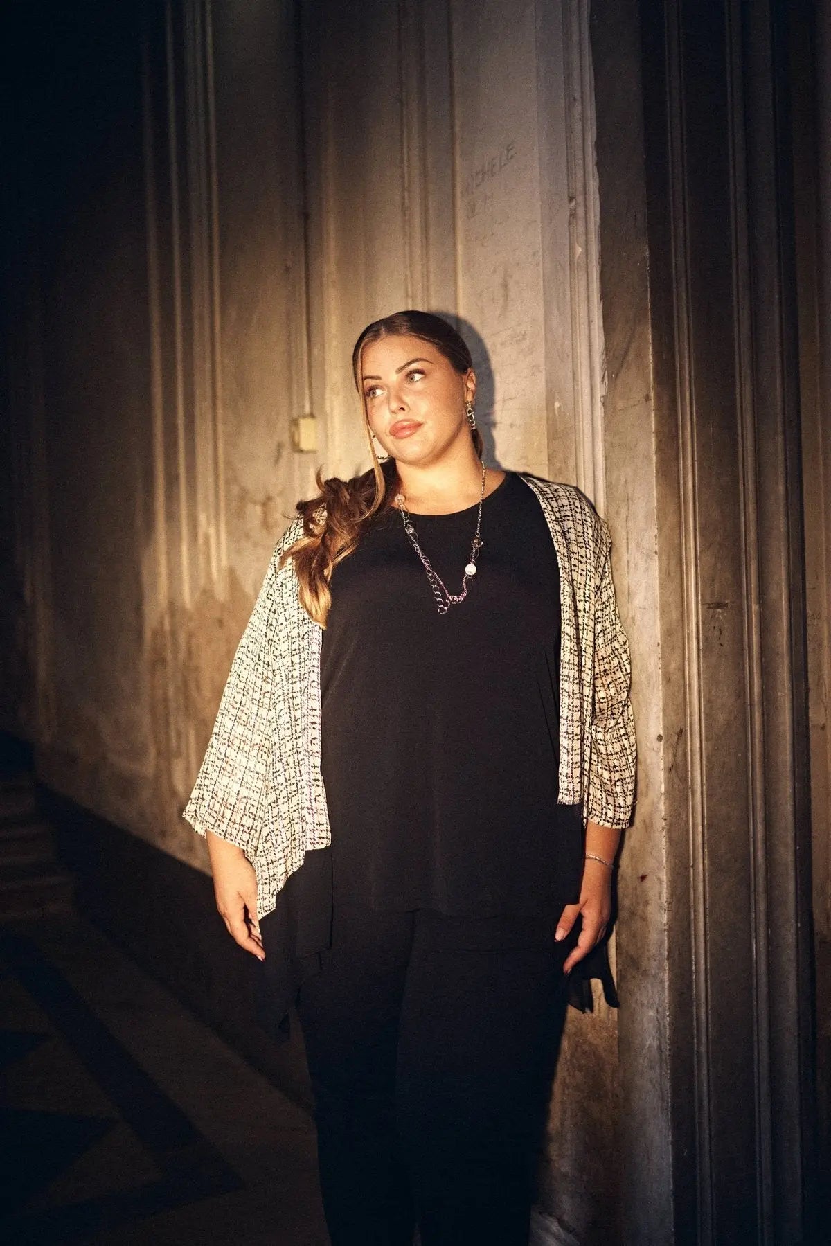 La modelo mide 1,75 m y usa talla M.