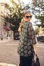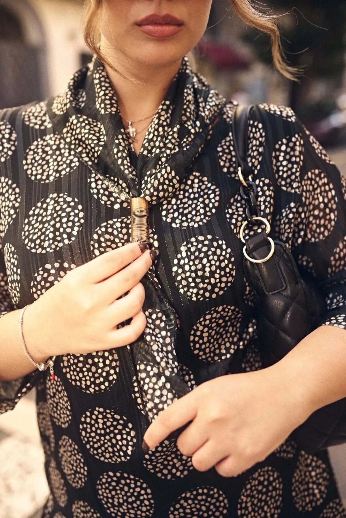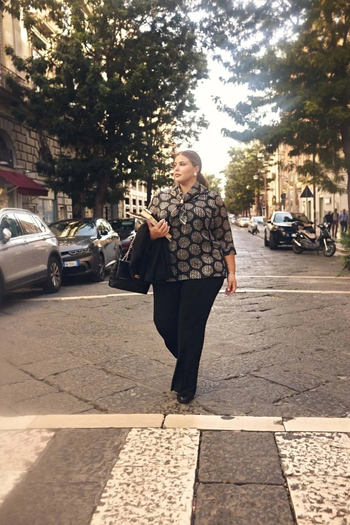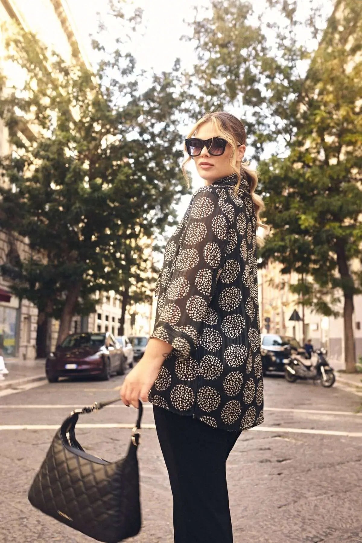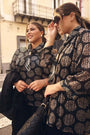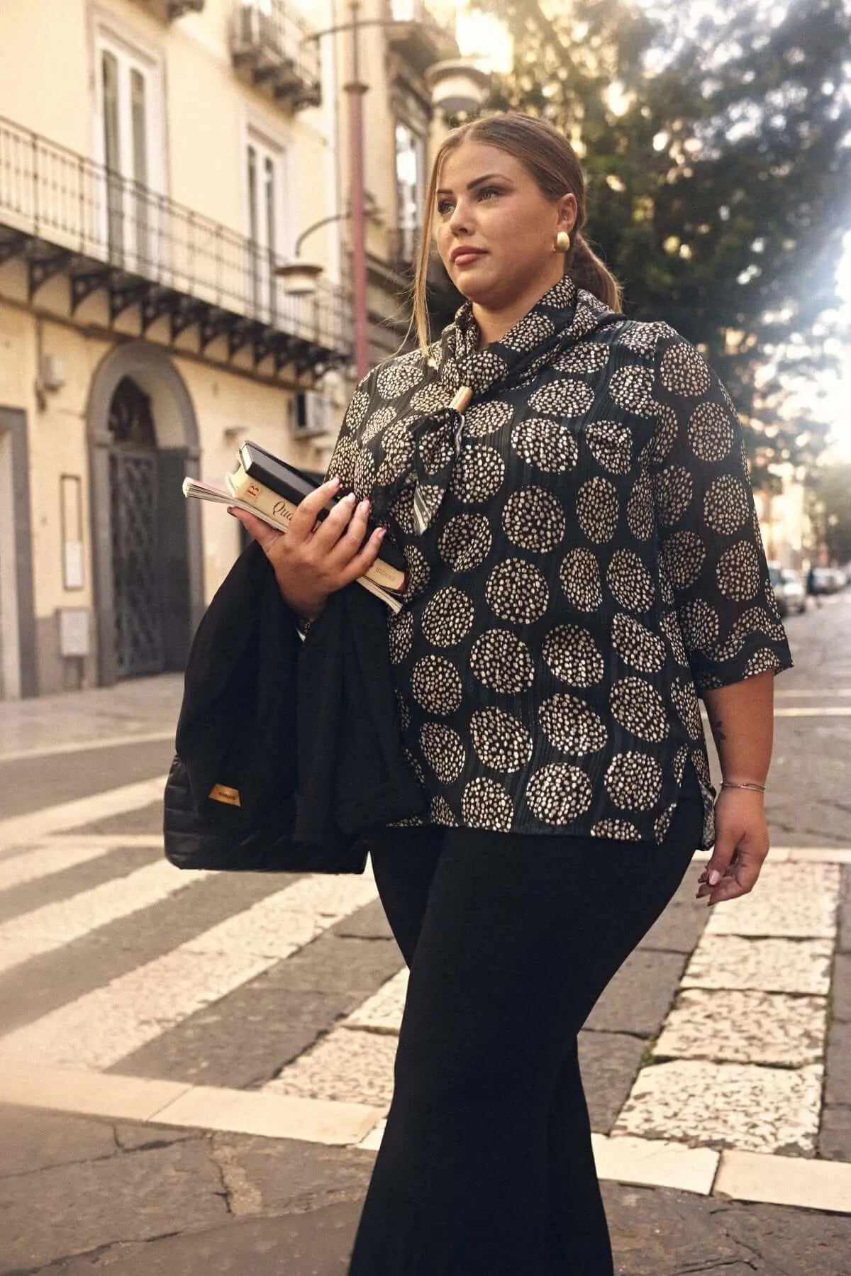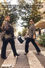 Conjunto de blusa estampada y pantalón de campana NEGRO