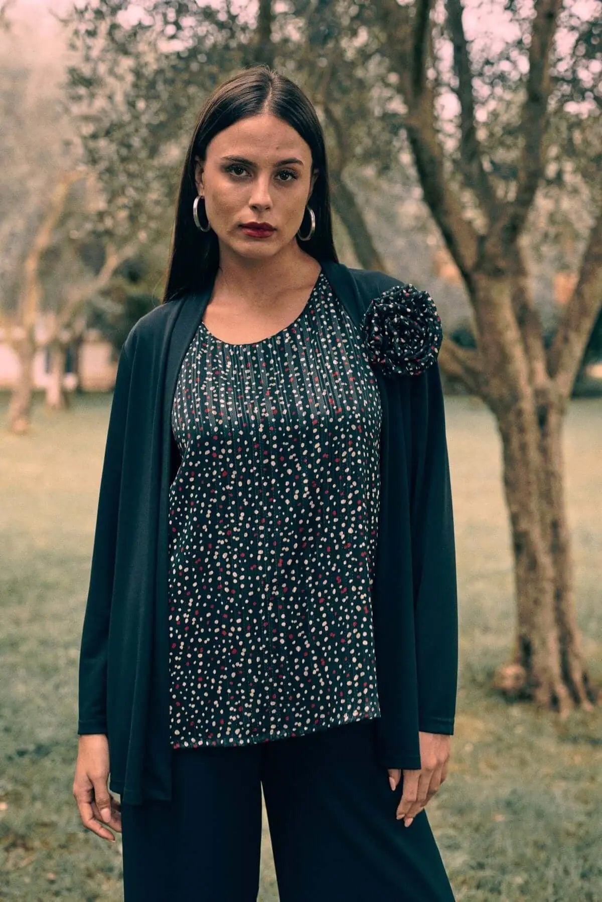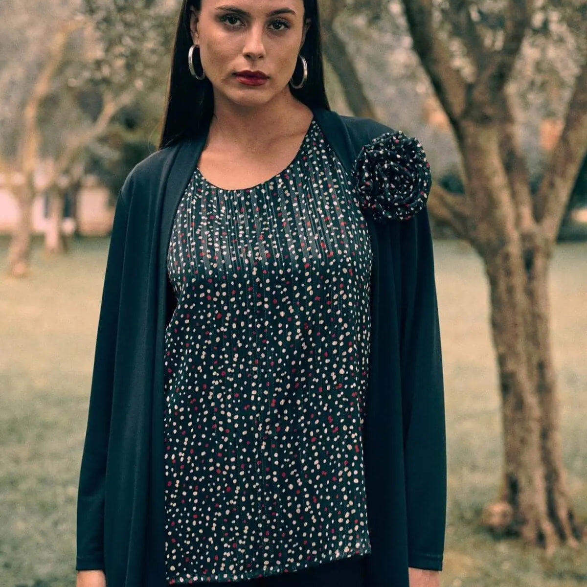 Conjunto con inserción frontal estampada con micro lunares NEGRO