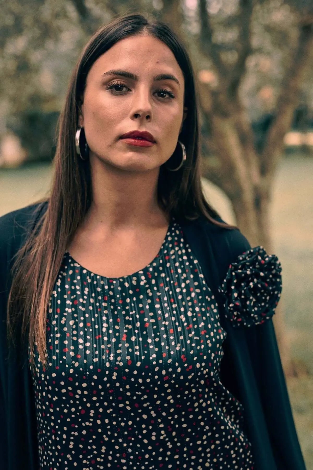 La modelo mide 1,75 m y usa talla M.