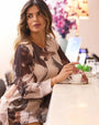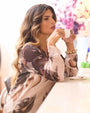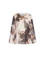 Blusa de cuello redondo y manga larga en georgette con estampado floral abstracto. NUECES