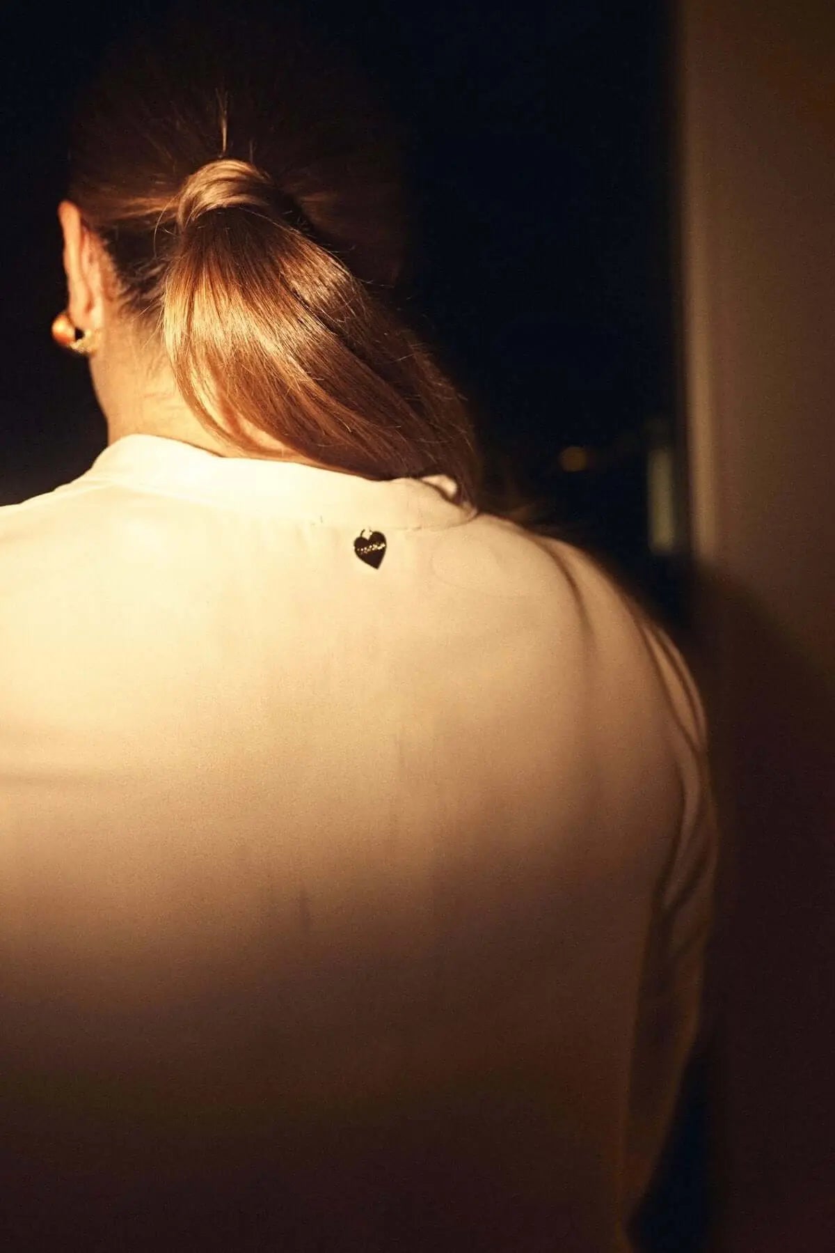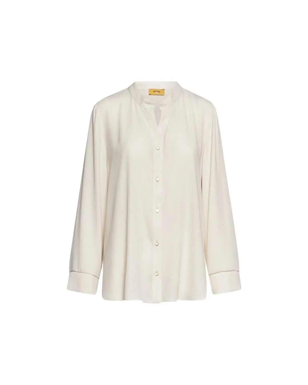 Camisa de cuello mandarín de georgette de color liso con botones metálicos. MARFIL