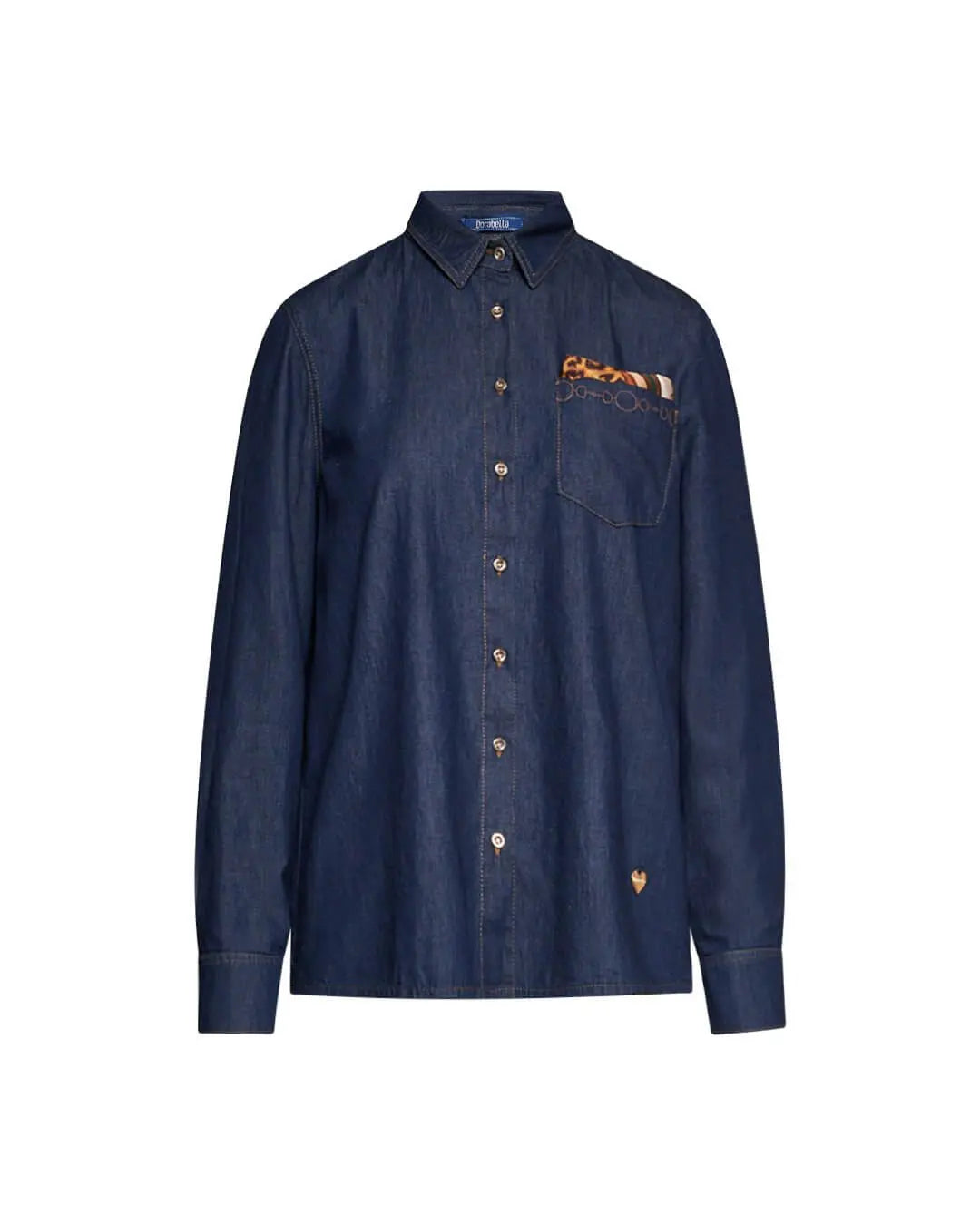 Camisa vaquera con bolsillo y pañuelo estampado AZUL