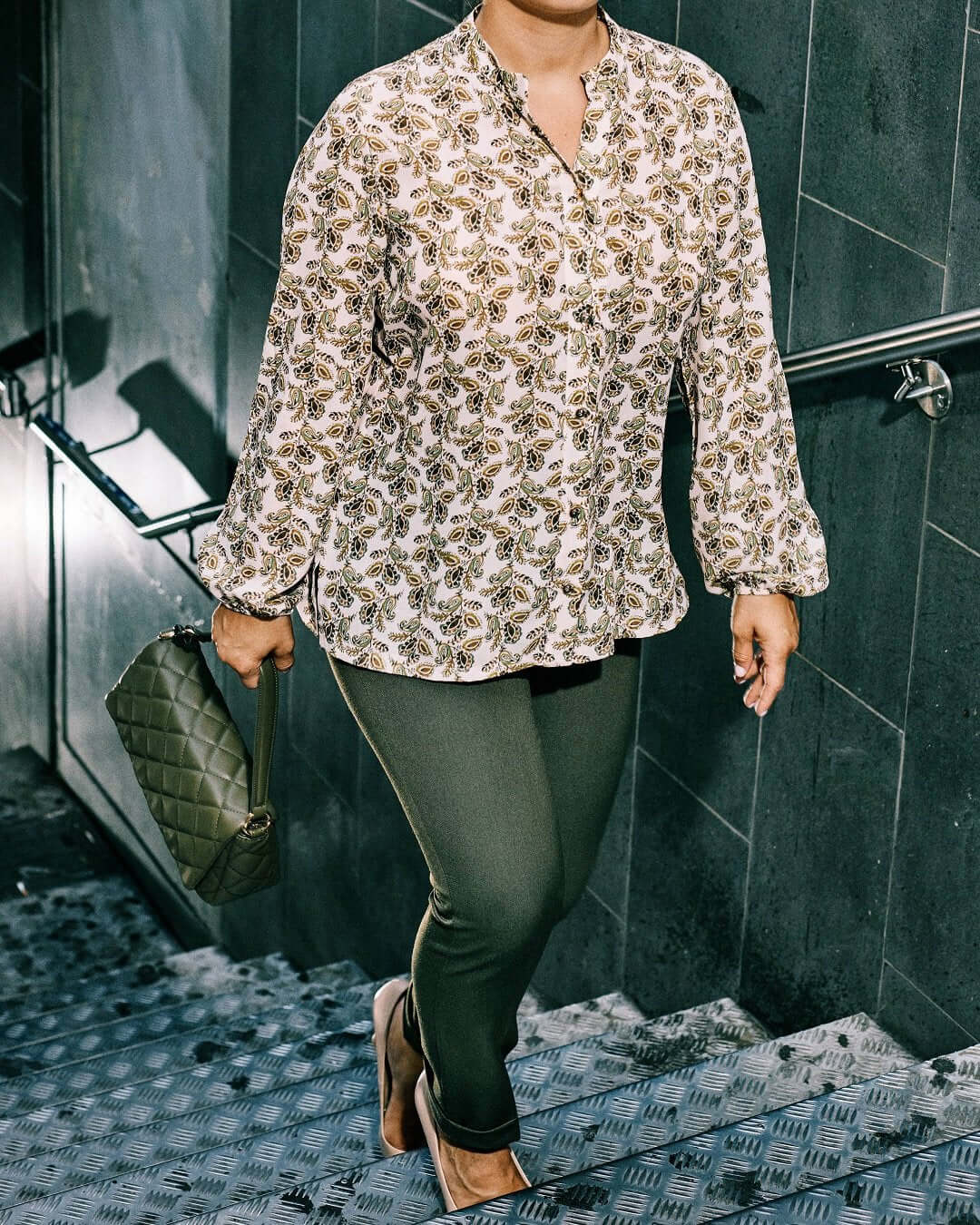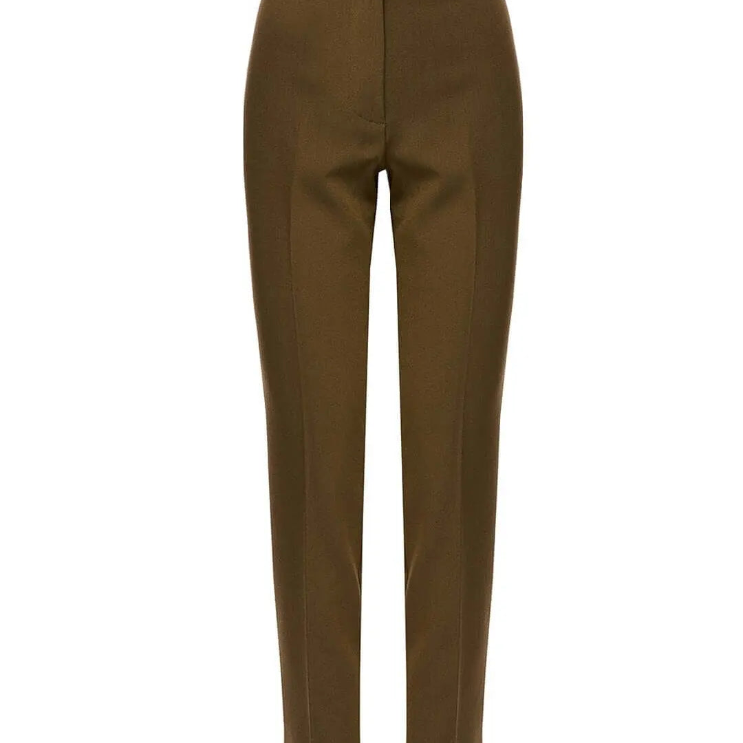 Pantalón recto con vuelta en el bajo y aplicación de pedrería en la espalda VERDE MILITAR