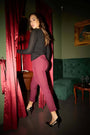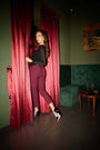 Pantalón recto con vuelta en el bajo y aplicación de pedrería en la espalda BURDEOS