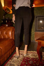 Pantalón recto con vuelta en el bajo y aplicación de pedrería en la espalda NEGRO