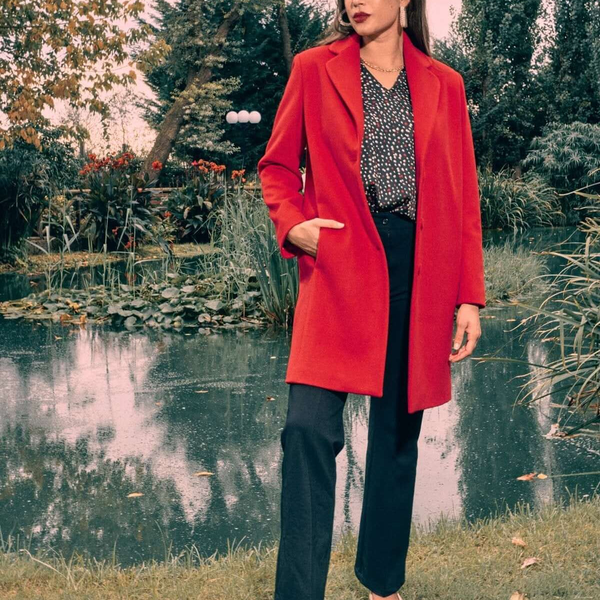Abrigo midi de botonadura sencilla con botones ROJO