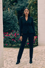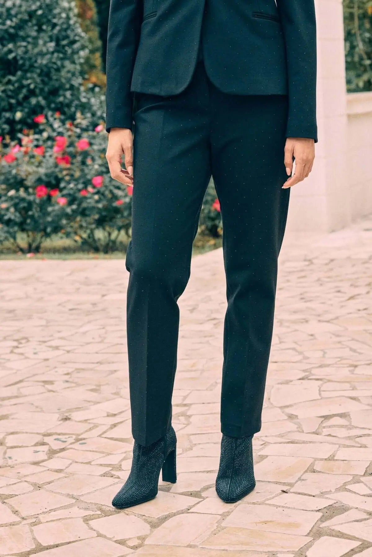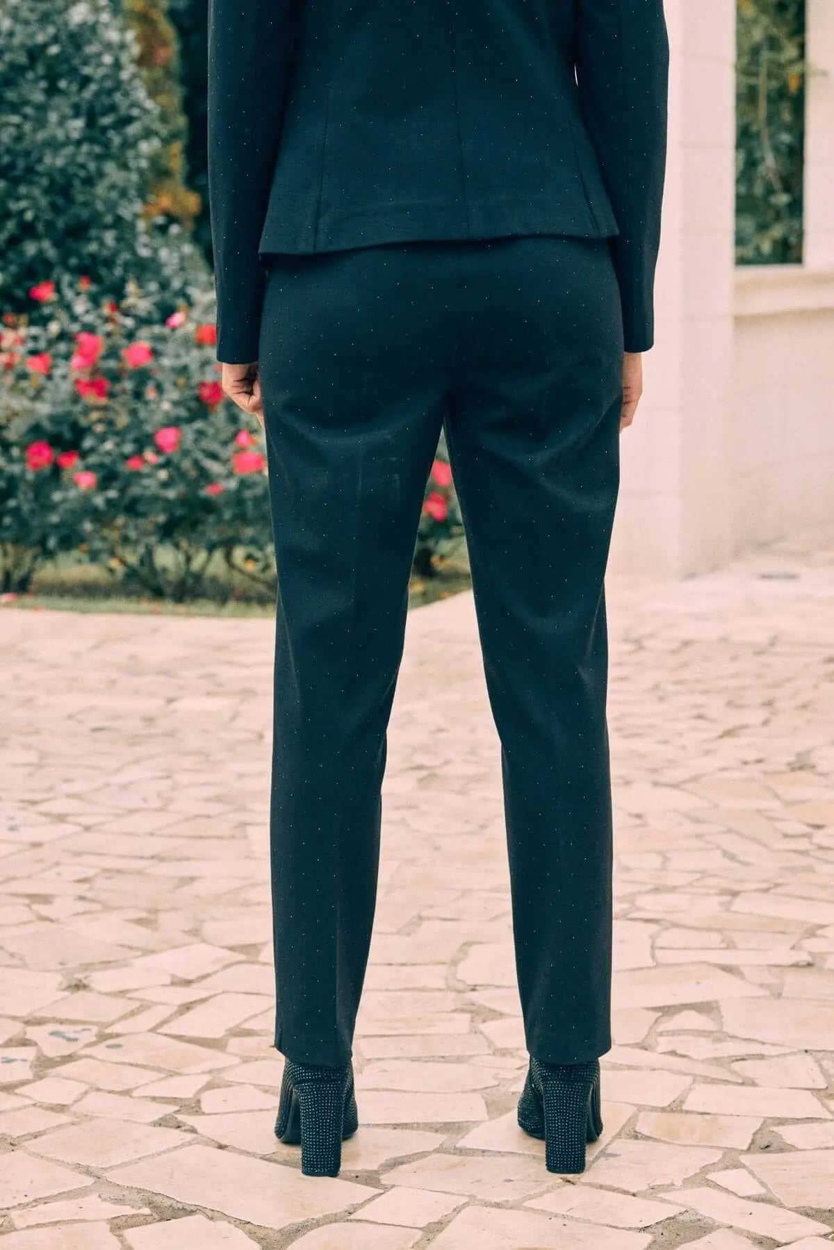 Pantalón ancho con pliegue y pedrería por toda la prenda NEGRO