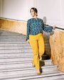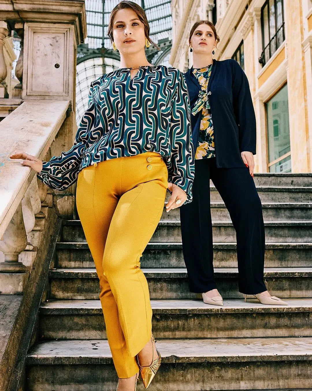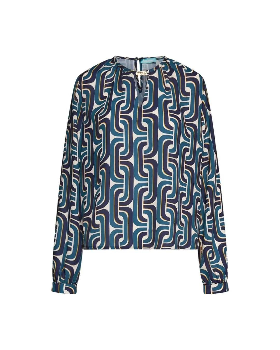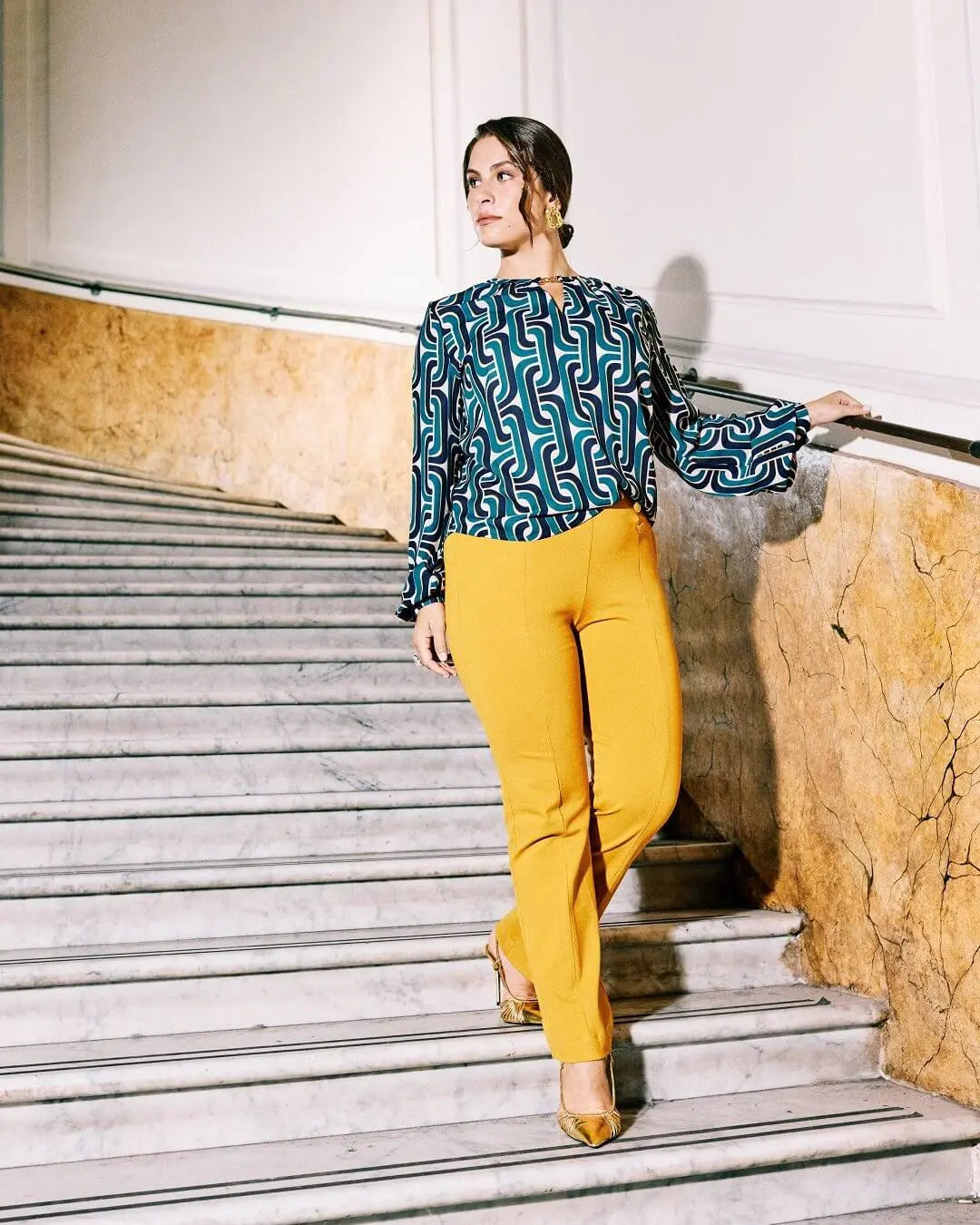 Blusa de crepe óptico con cadena en el escote AZUL MOSTAZA