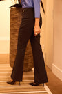 Pantalón de cady elástico de corte entallado color liso NEGRO