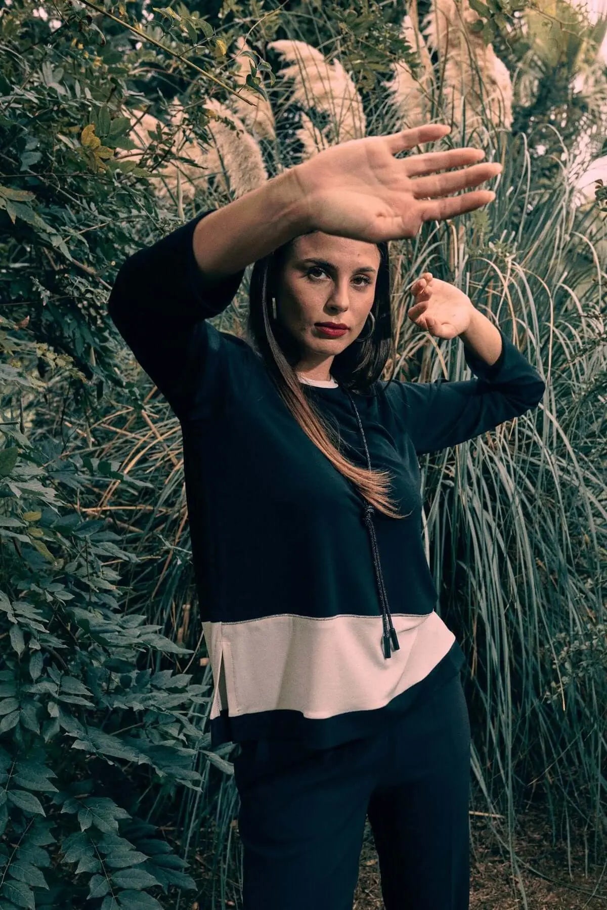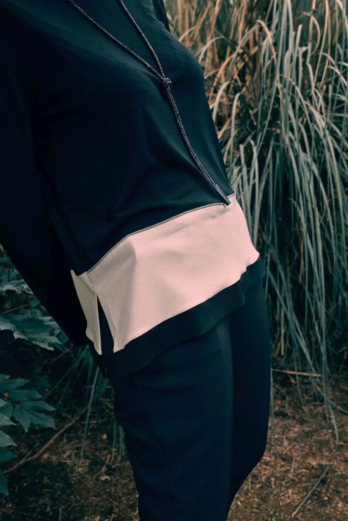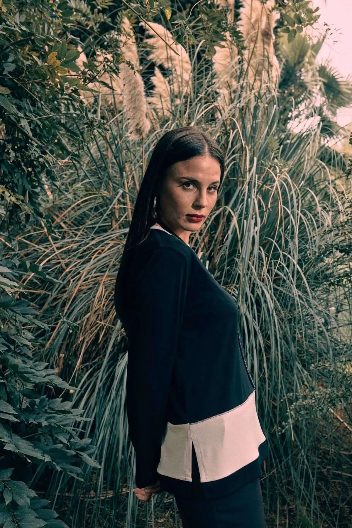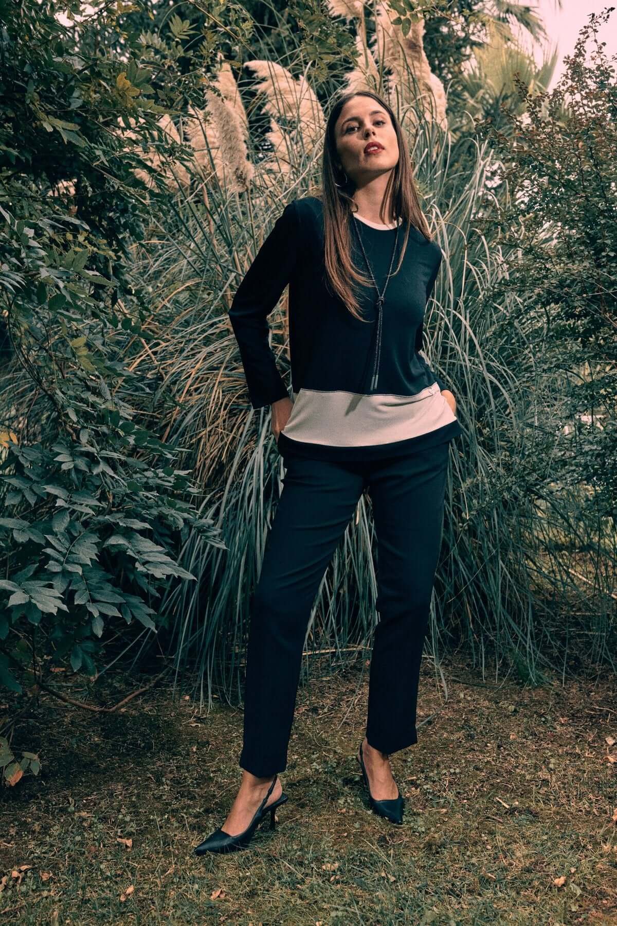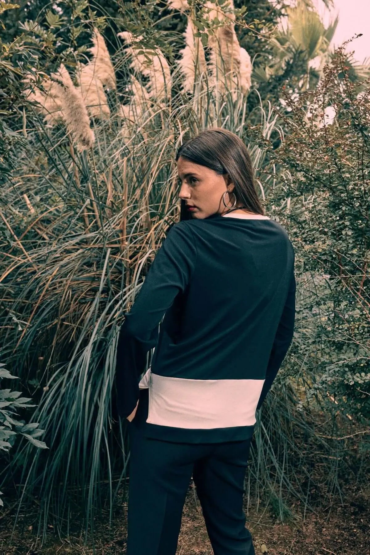 Jersey bicolor en tejido elástico con ribete delantero NEGRO