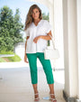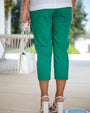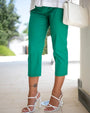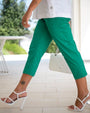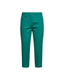 Pantalones capri de sarga de algodón elástico liso con cierre de cremallera. VERDE