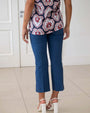 Pantalón pitillo con perneras acampanadas en sarga de mezcla de viscosa elástica de color liso. TORUNDA