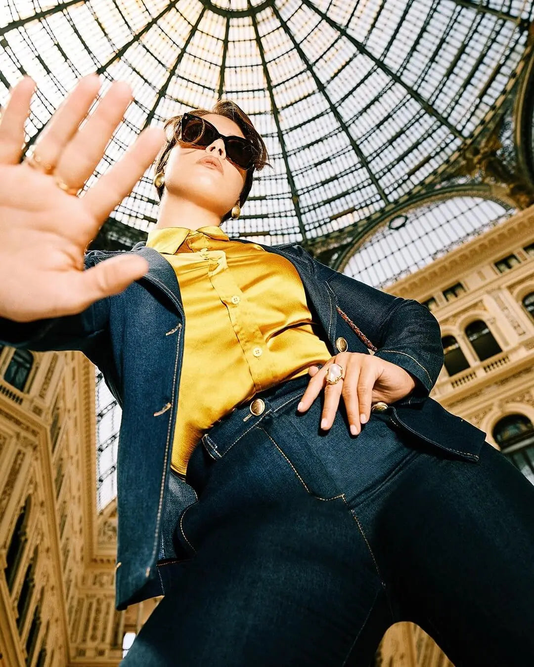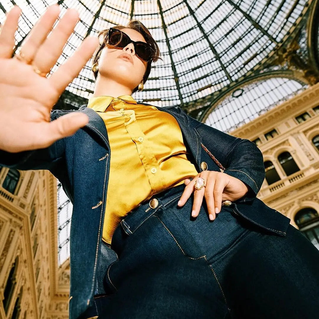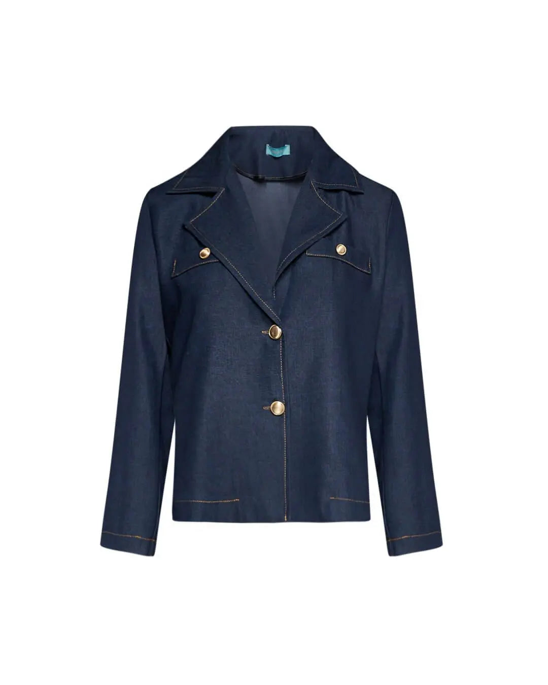 Chaqueta vaquera de botonadura sencilla con botones dorados AZUL