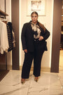 Pantalón recto en tejido de raya diplomática de lúrex NEGRO-DORADO