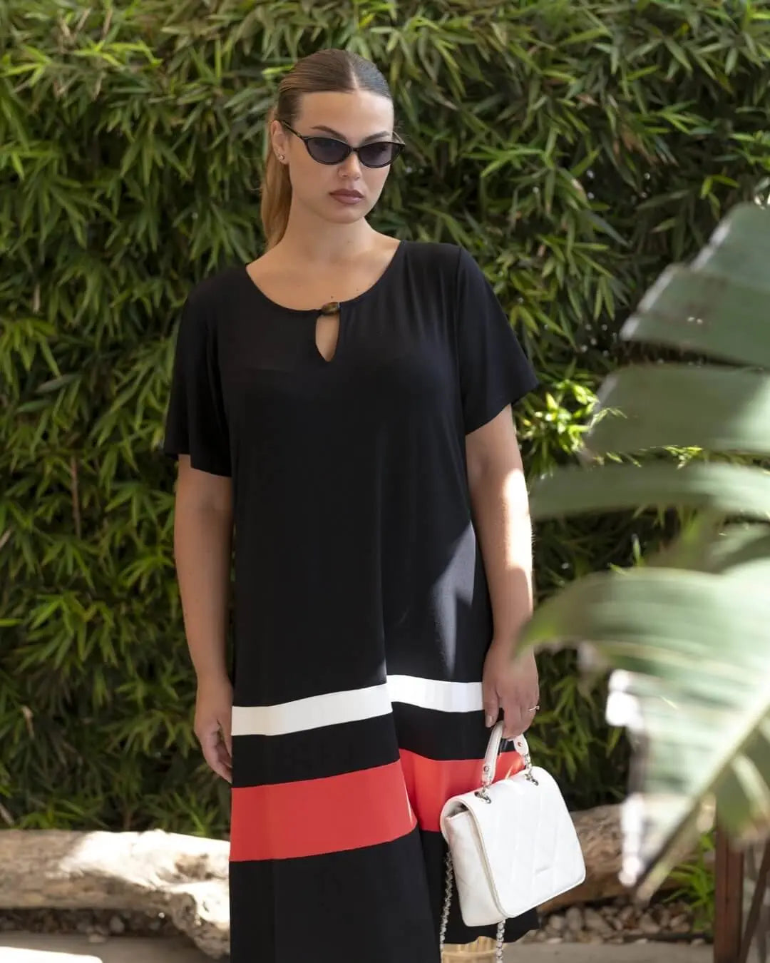 Vestido de viscosa de manga corta con bandas en el bajo NEGRO