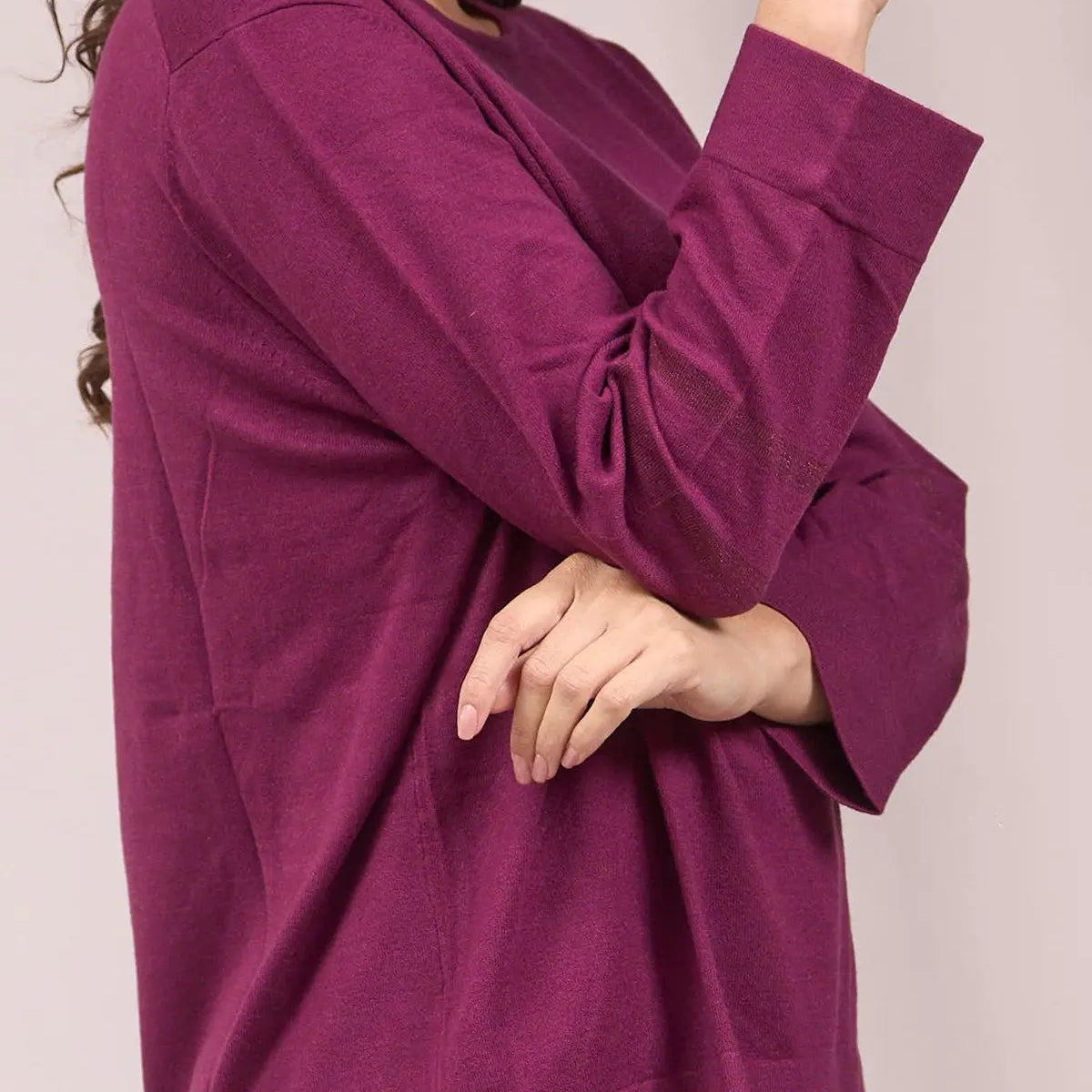Suéter de cuello redondo con aberturas e inserciones de lúrex VINO