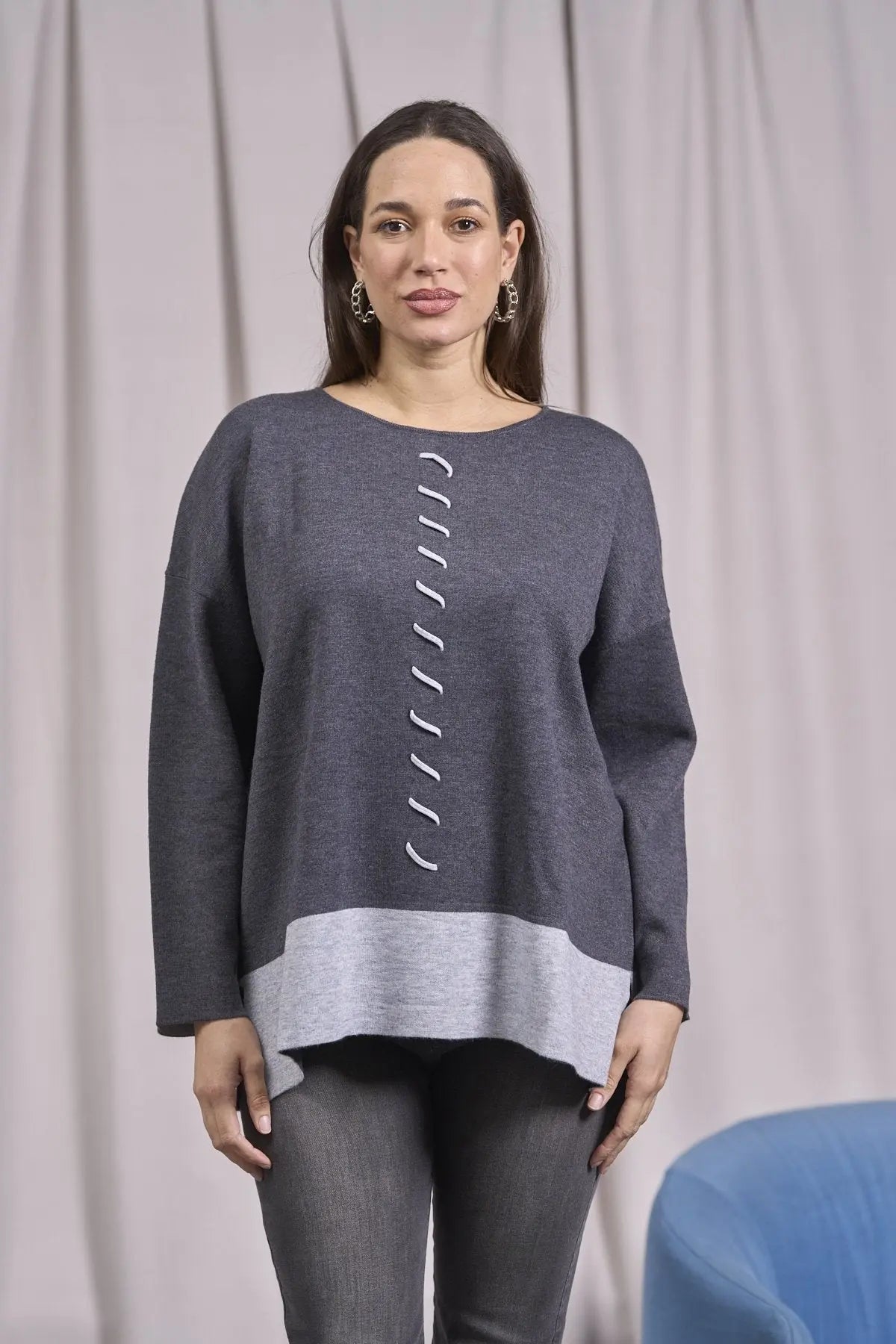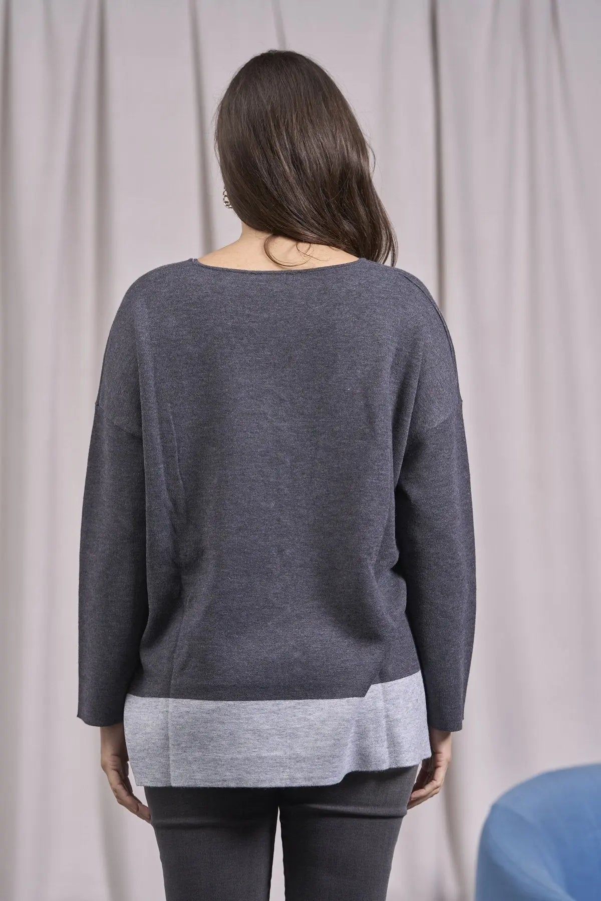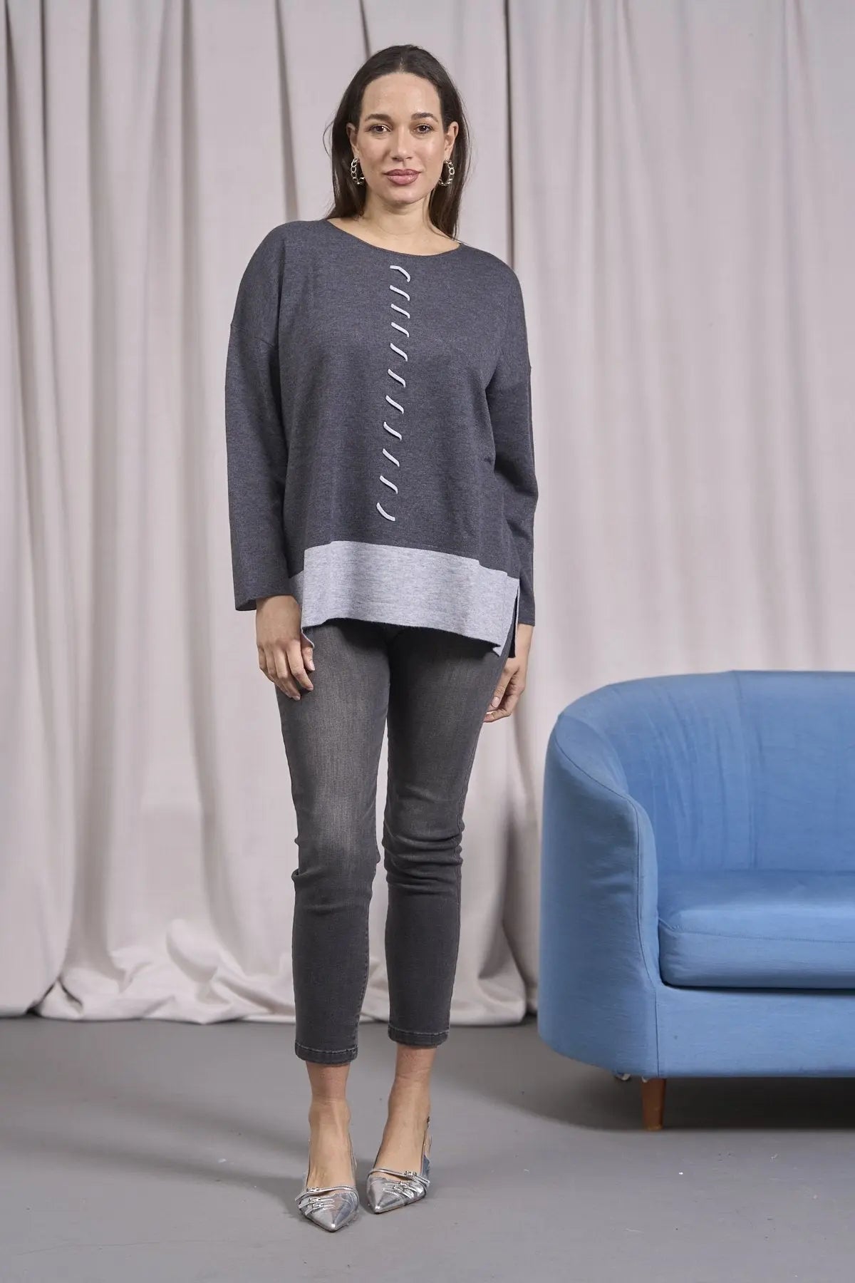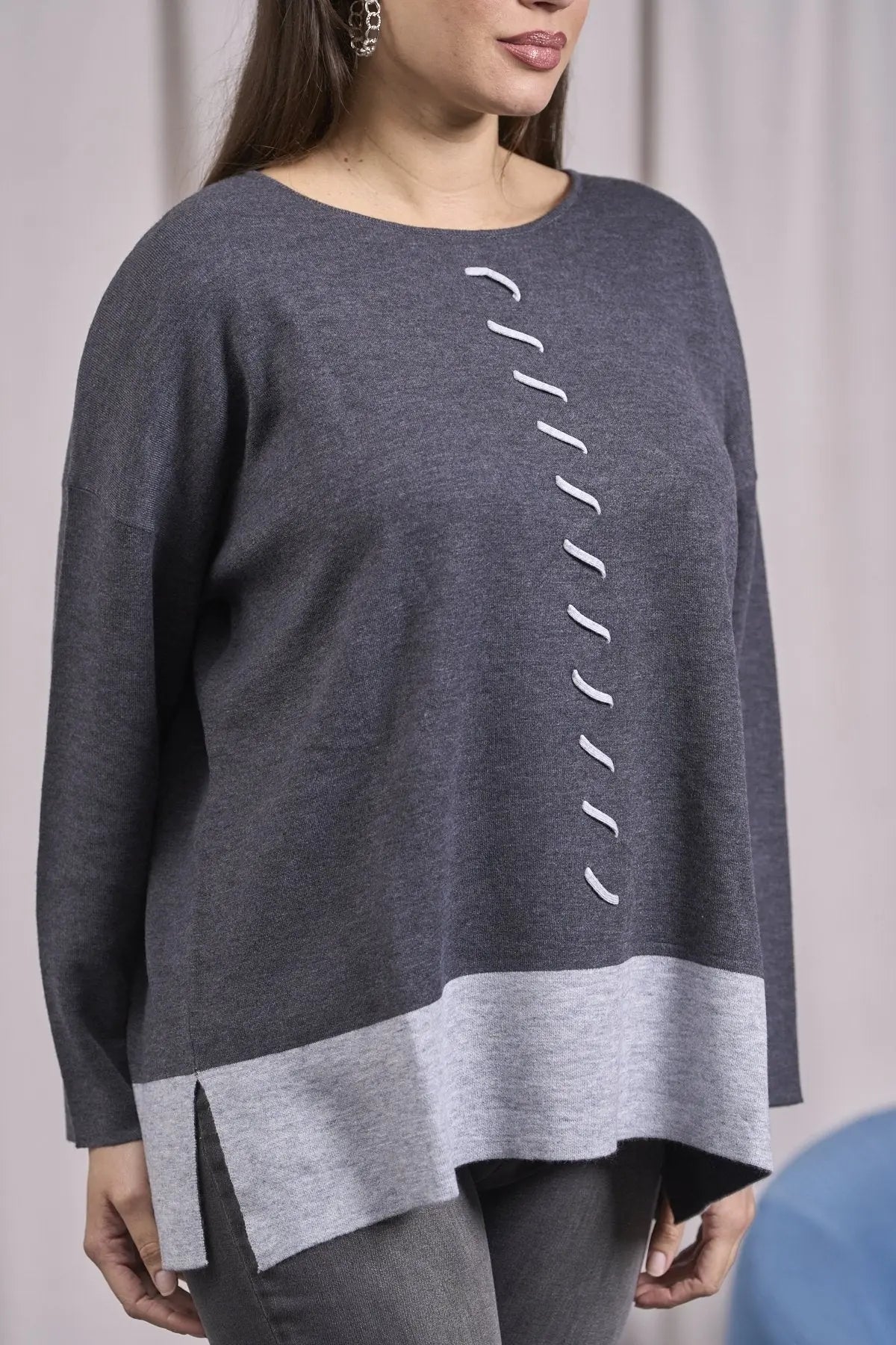 Jersey de cuello redondo con aberturas y contrastes bicolor ANTRACITA
