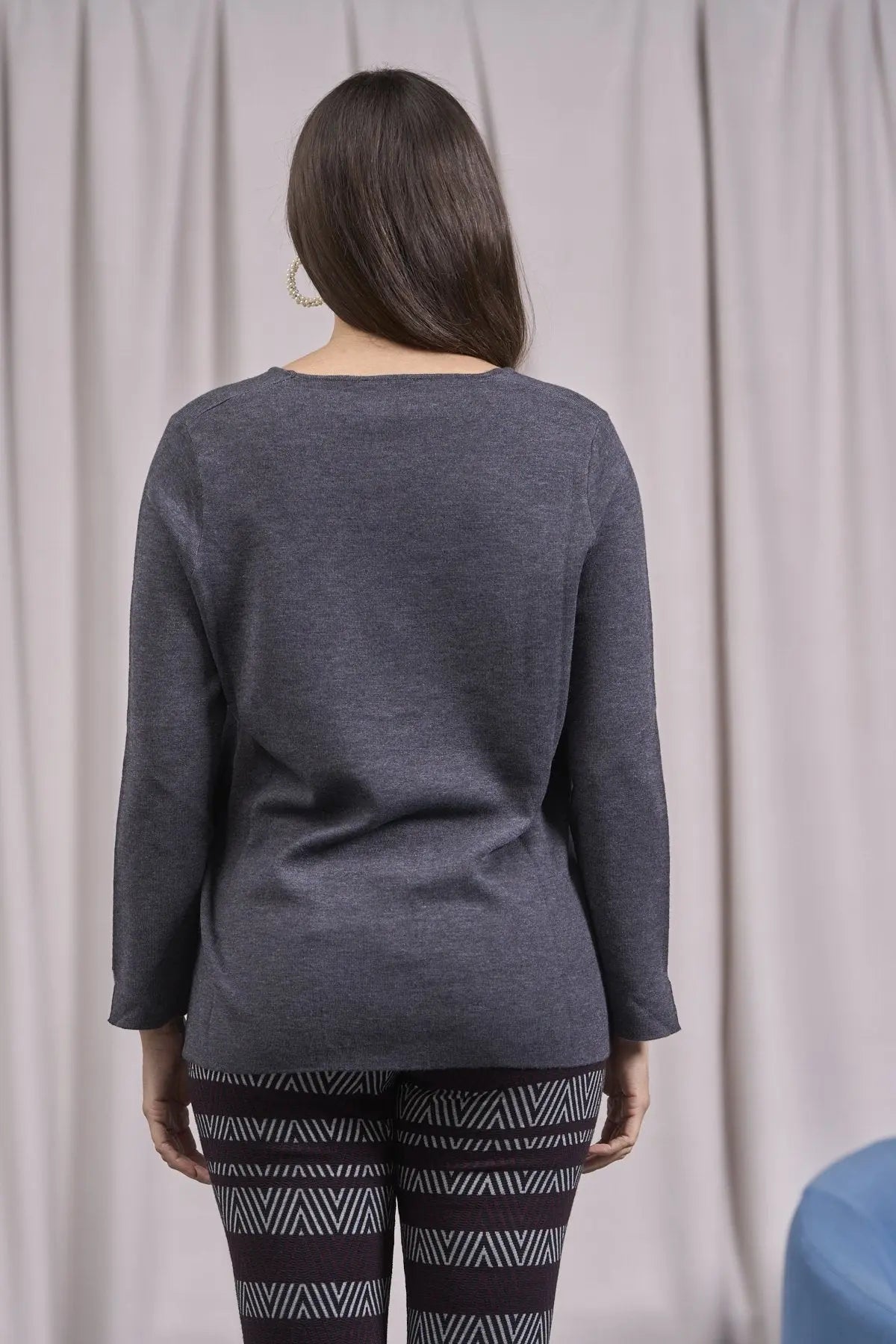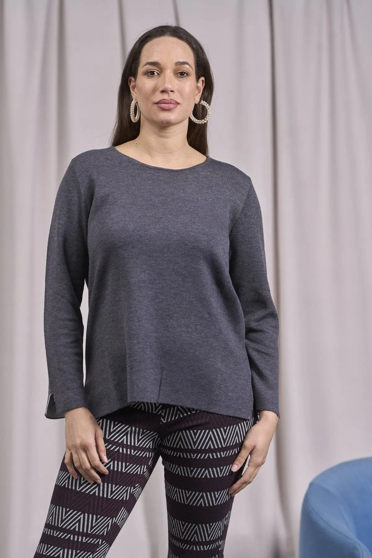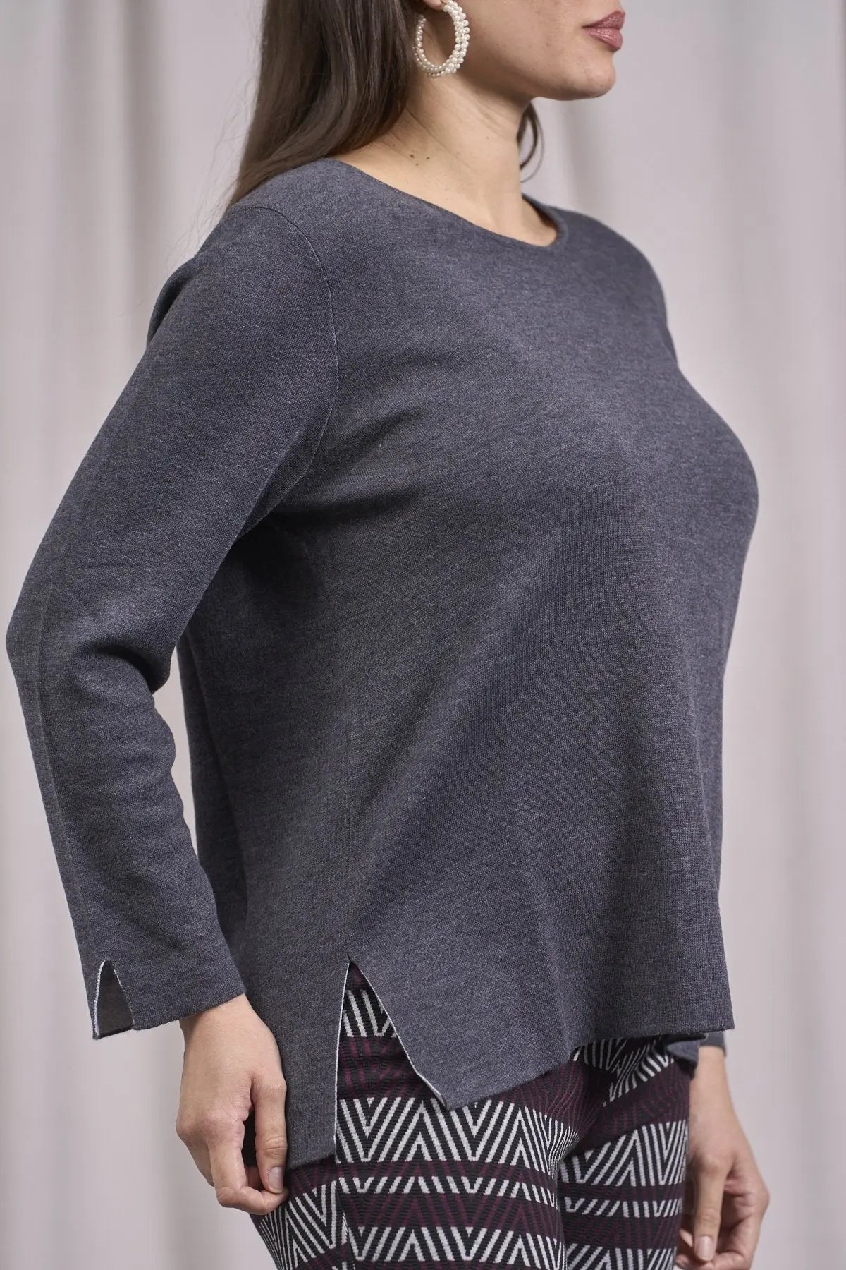 Jersey bicolor de cuello redondo con aberturas ANTRACITA