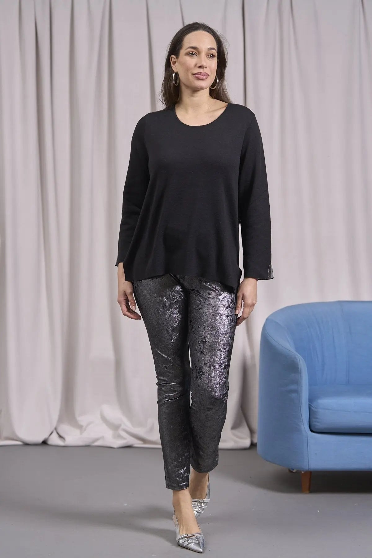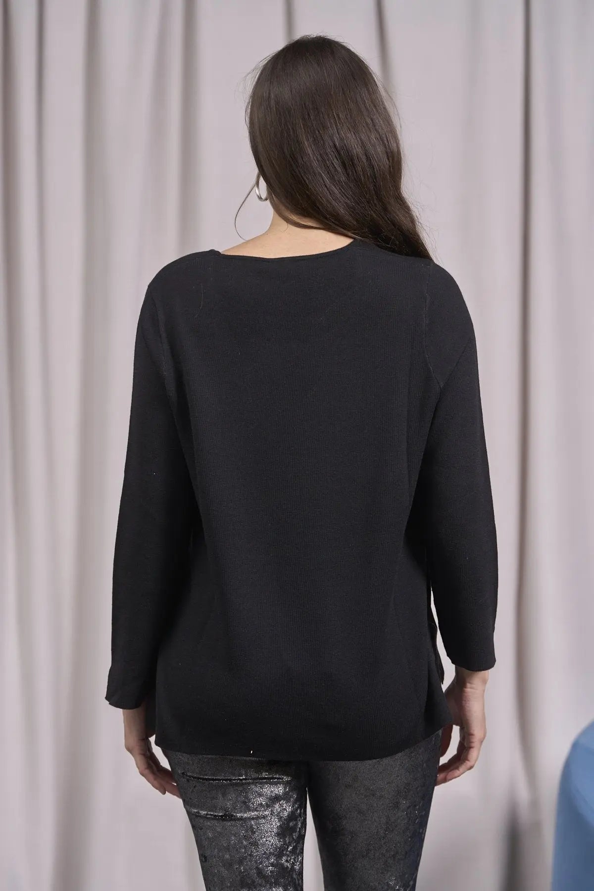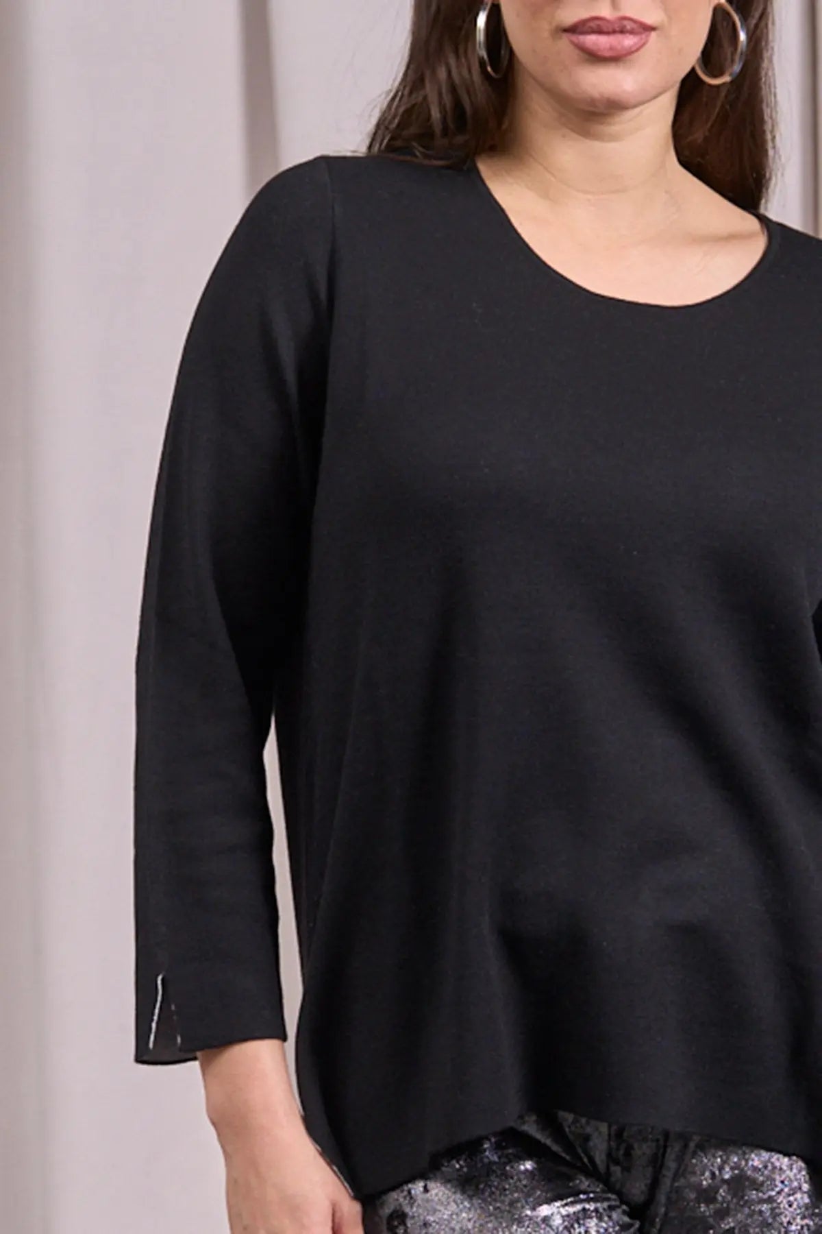 Jersey bicolor de cuello redondo con aberturas NEGRO