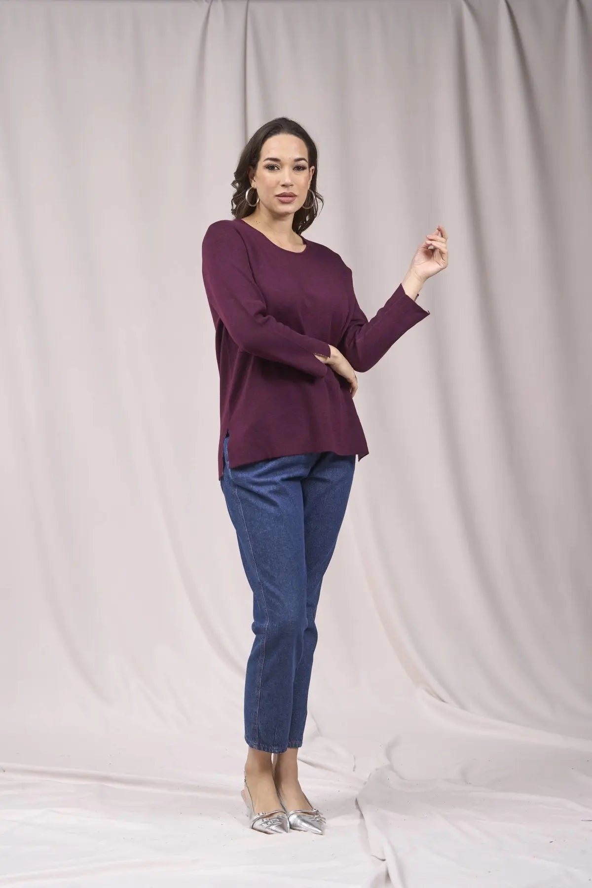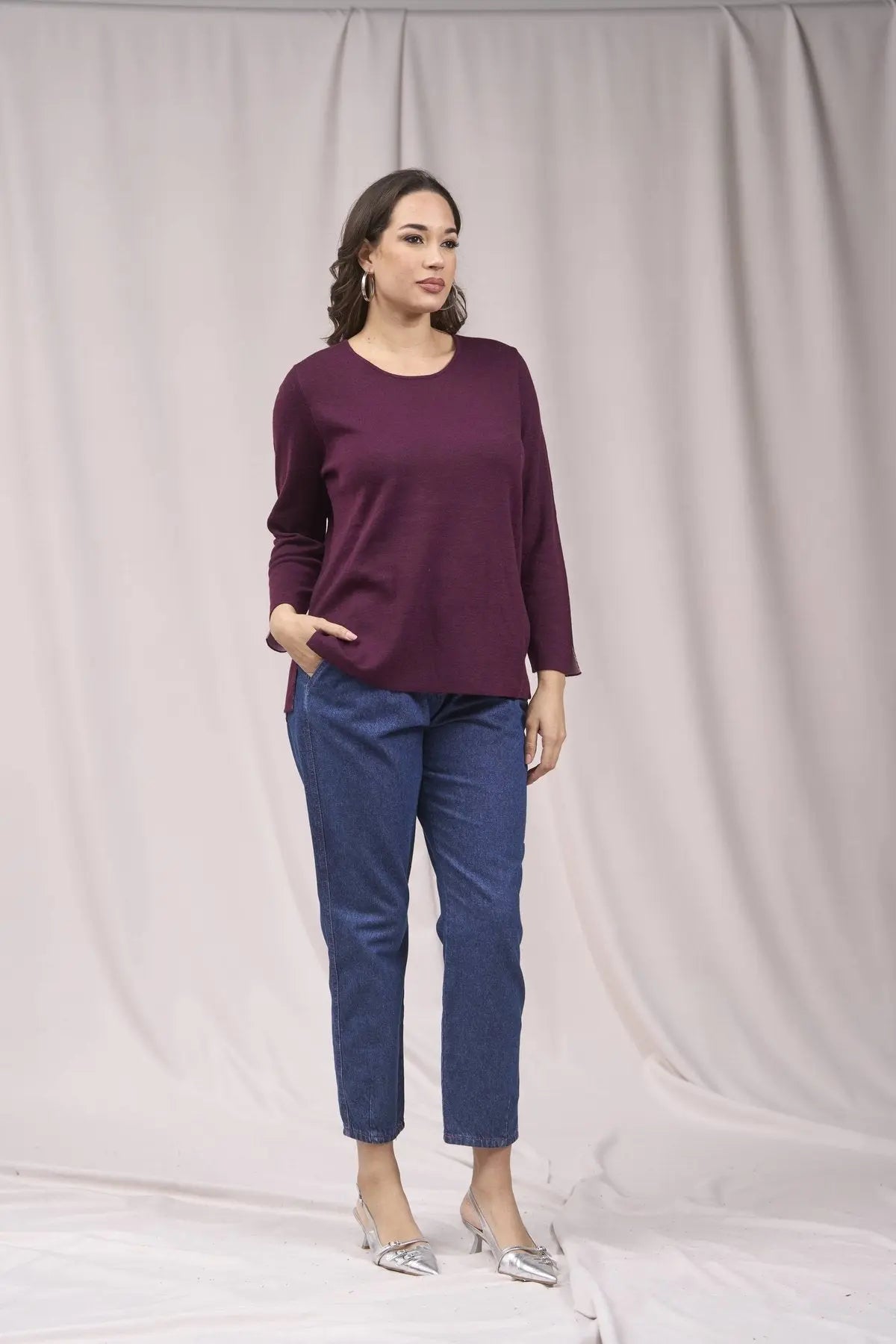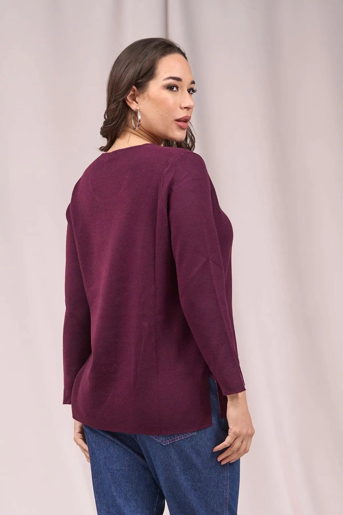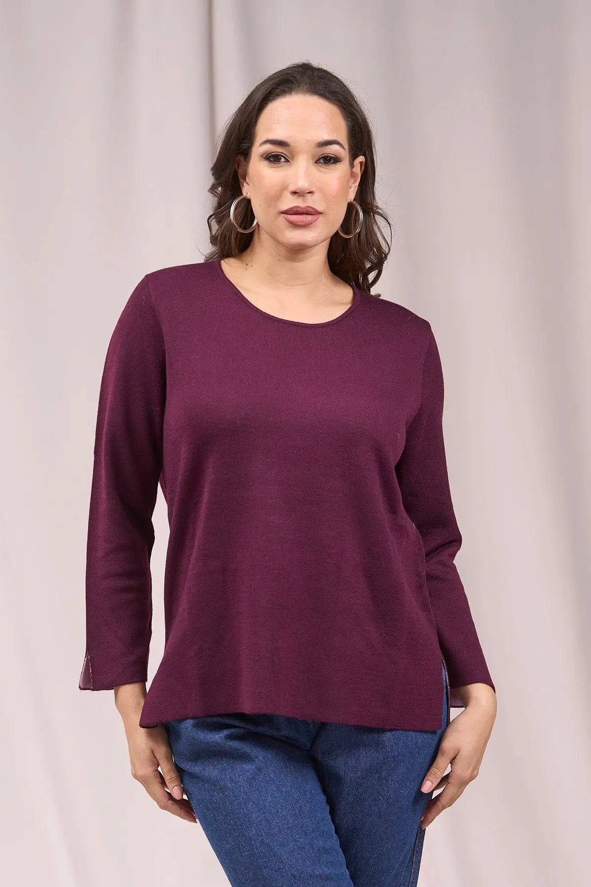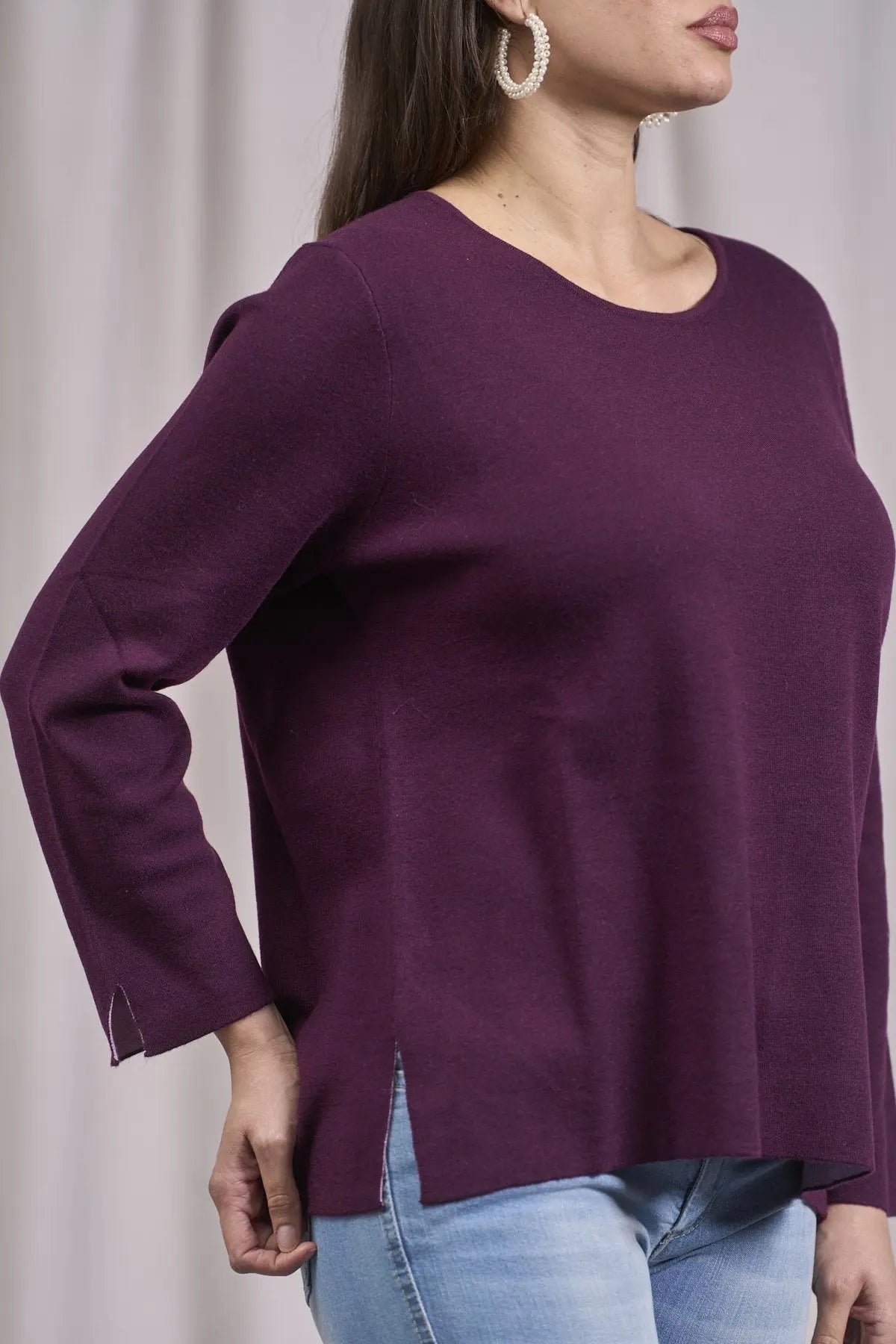 Jersey bicolor de cuello redondo con aberturas VINO