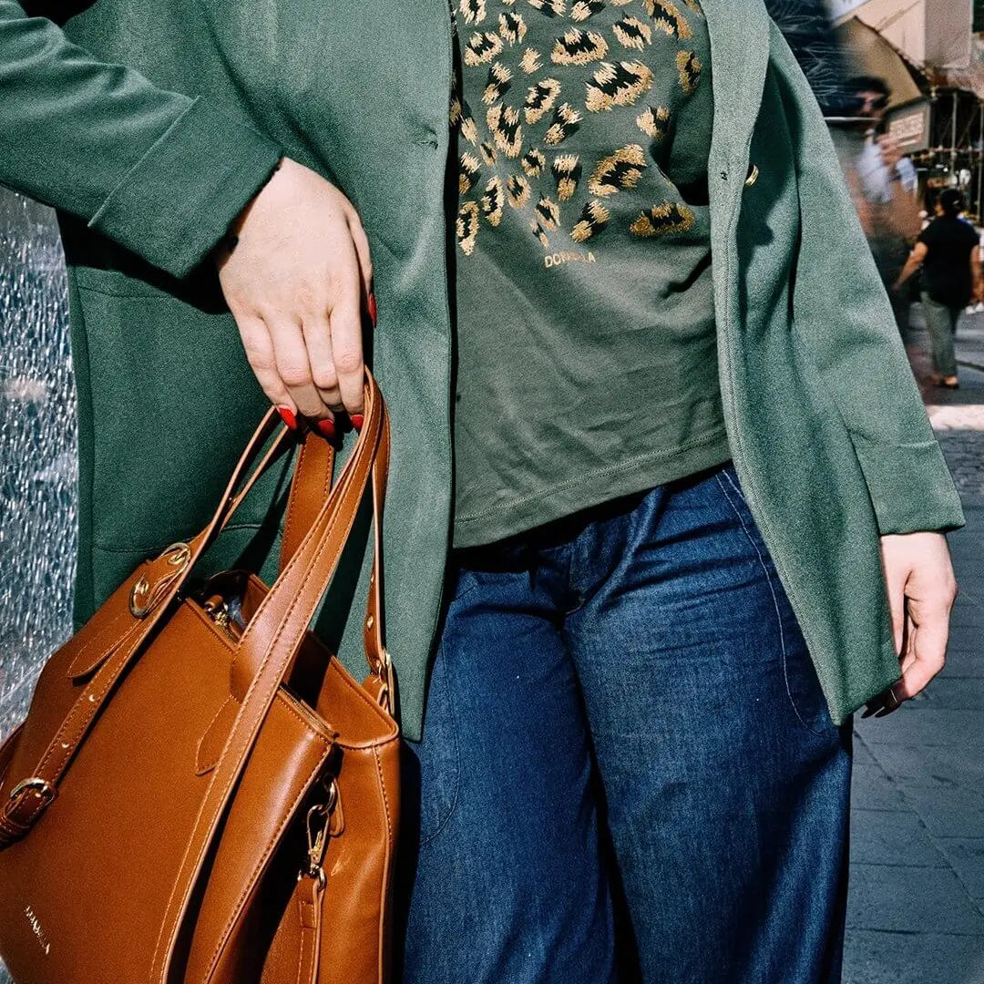 La modelo mide 1,75 m y usa talla M.