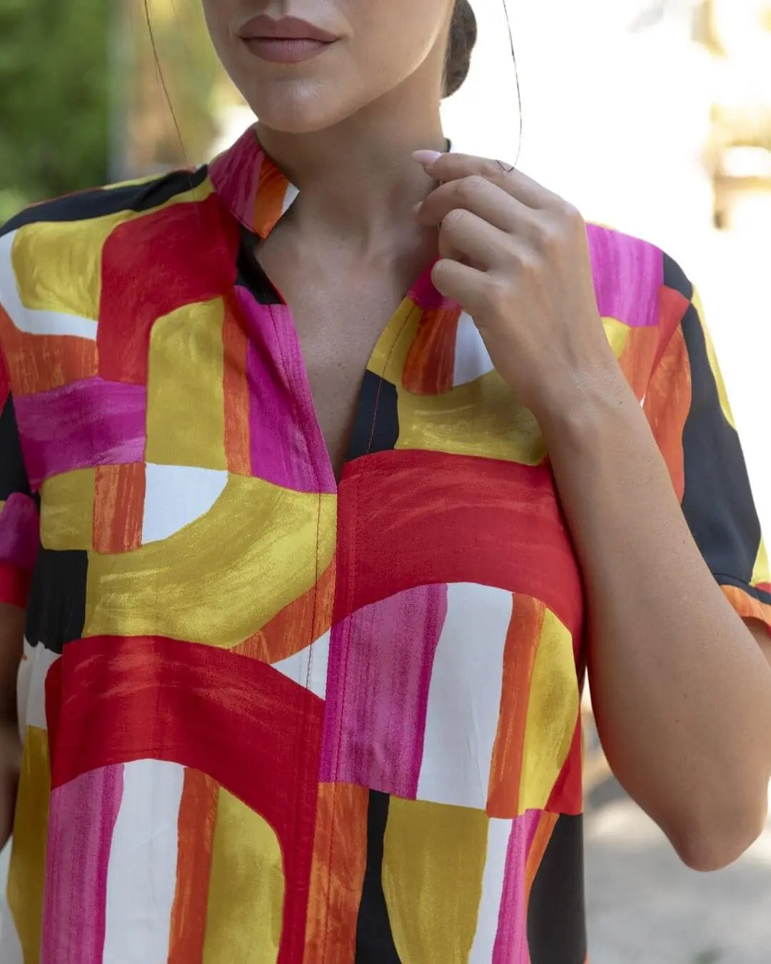 La modelo mide 1,75 m y usa talla M.