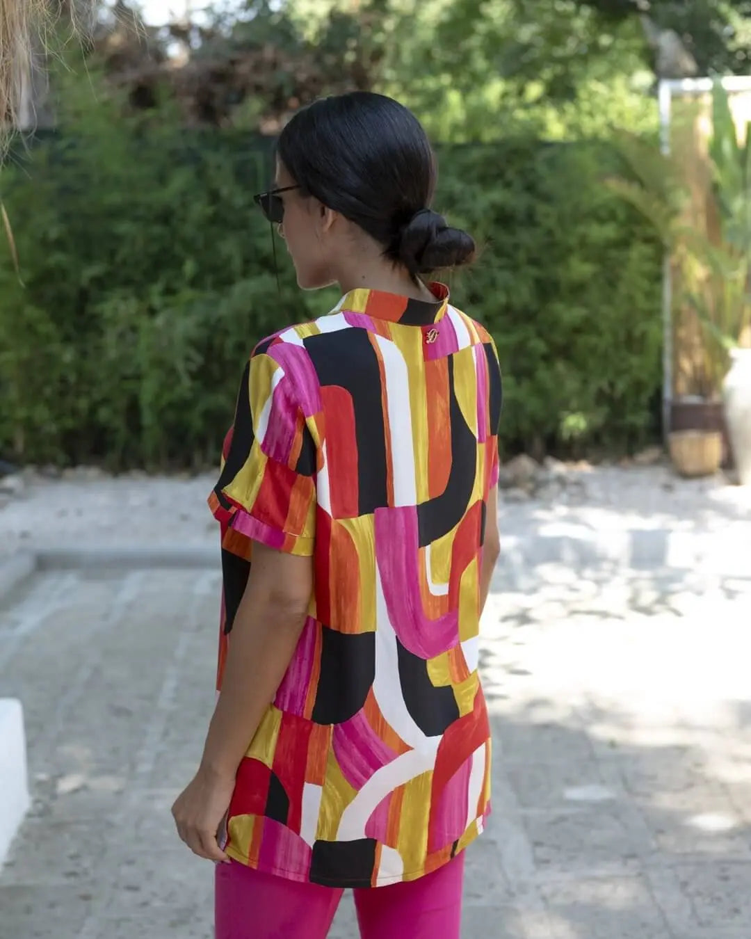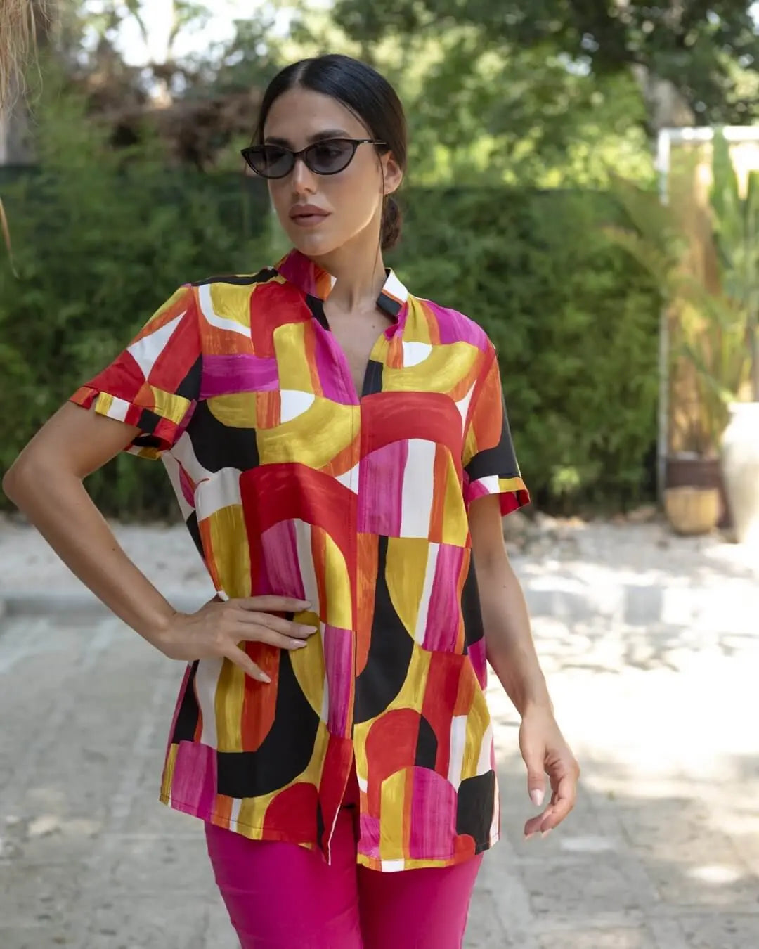 Blusa con estampado coreano, cuello en V y manga corta ROJA