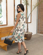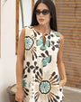 Vestido sin mangas en mezcla de algodón con pliegues BEIGE