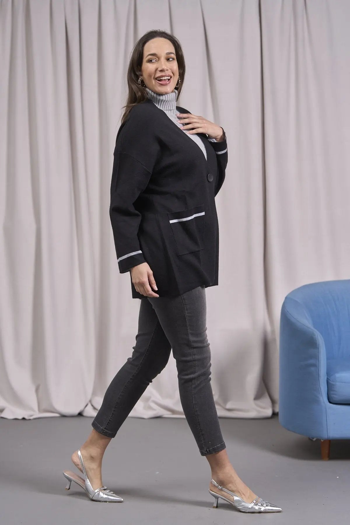 Cárdigan de botonadura sencilla con corte sin rematar y bolsillos NEGRO