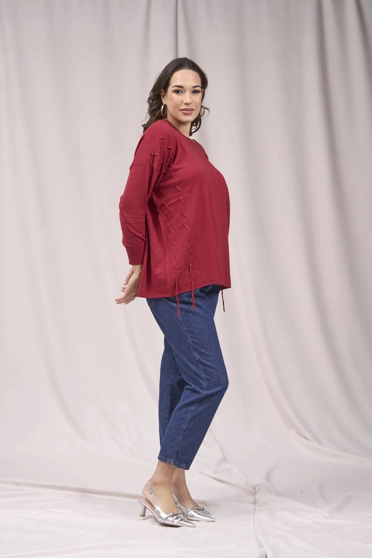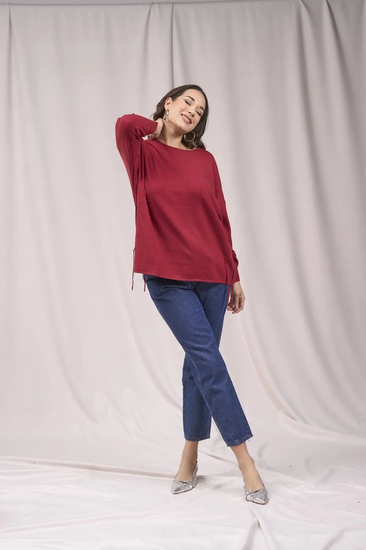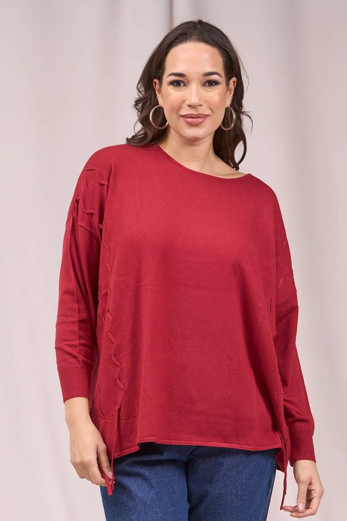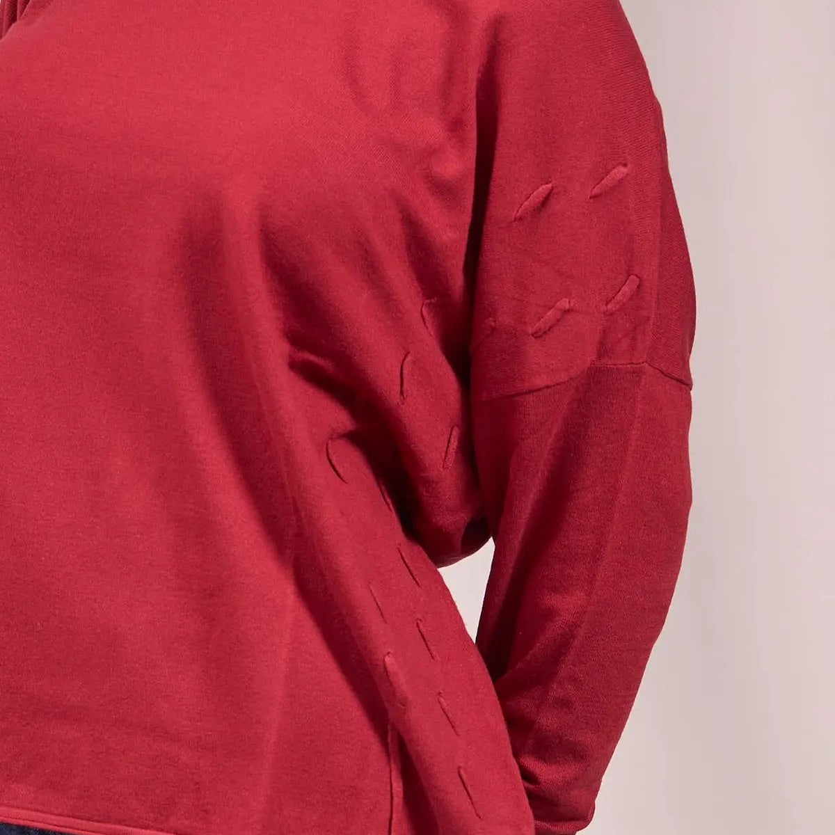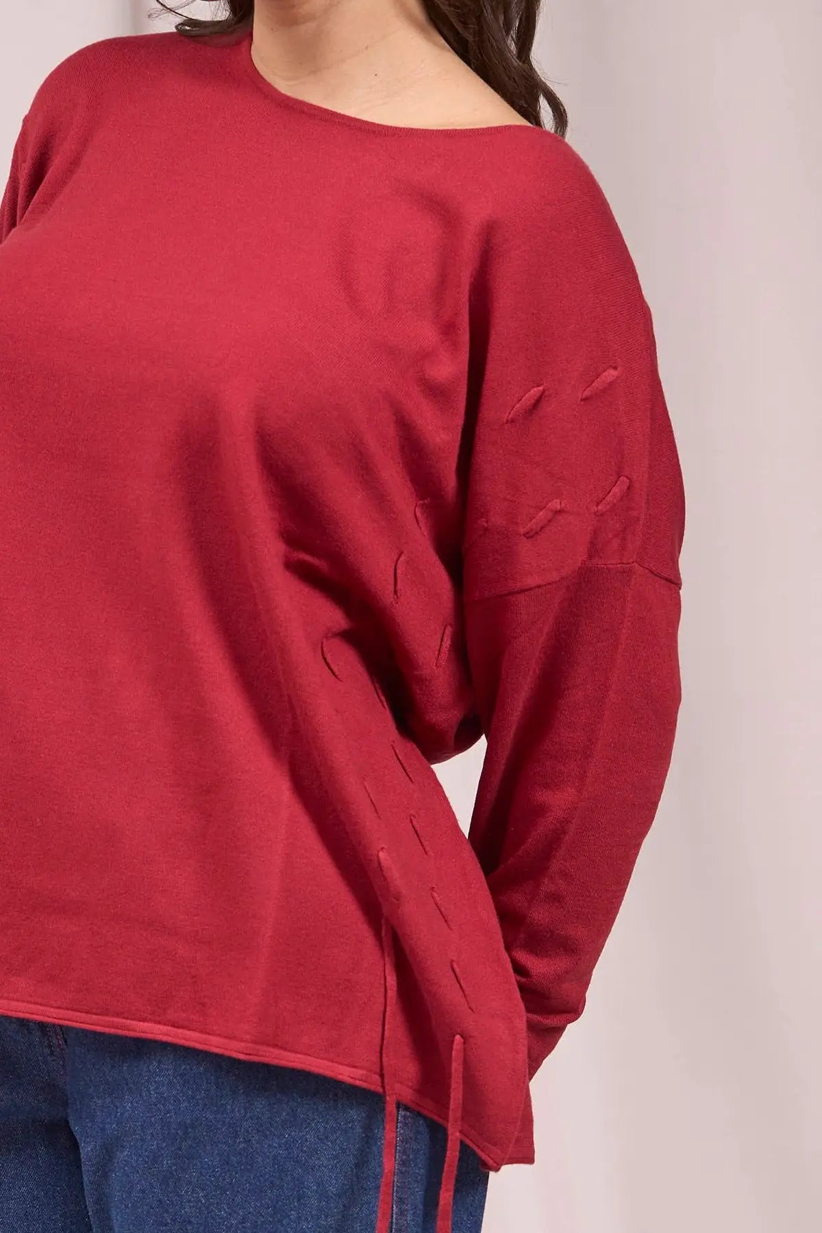 Suéter de cuello redondo con trenzas delanteras ROJO
