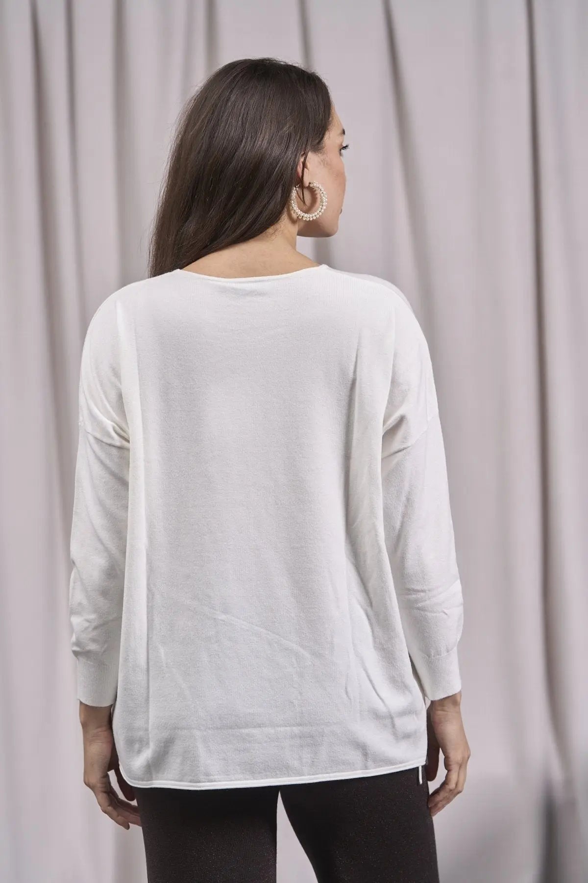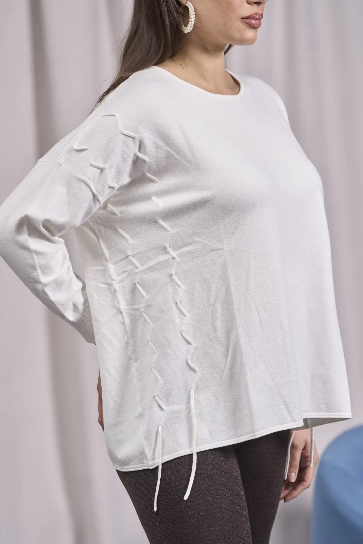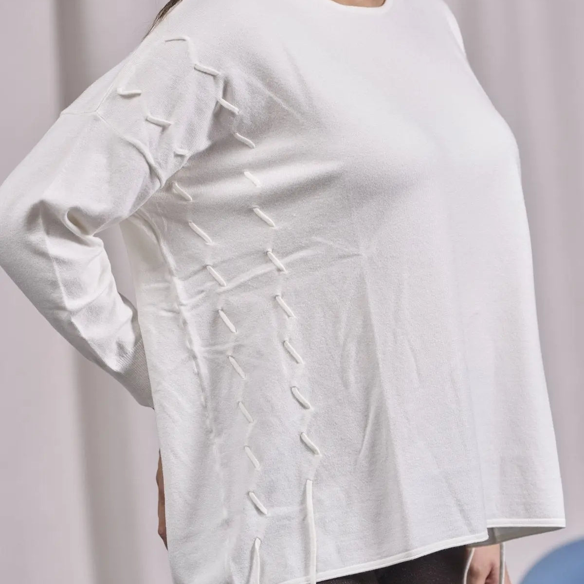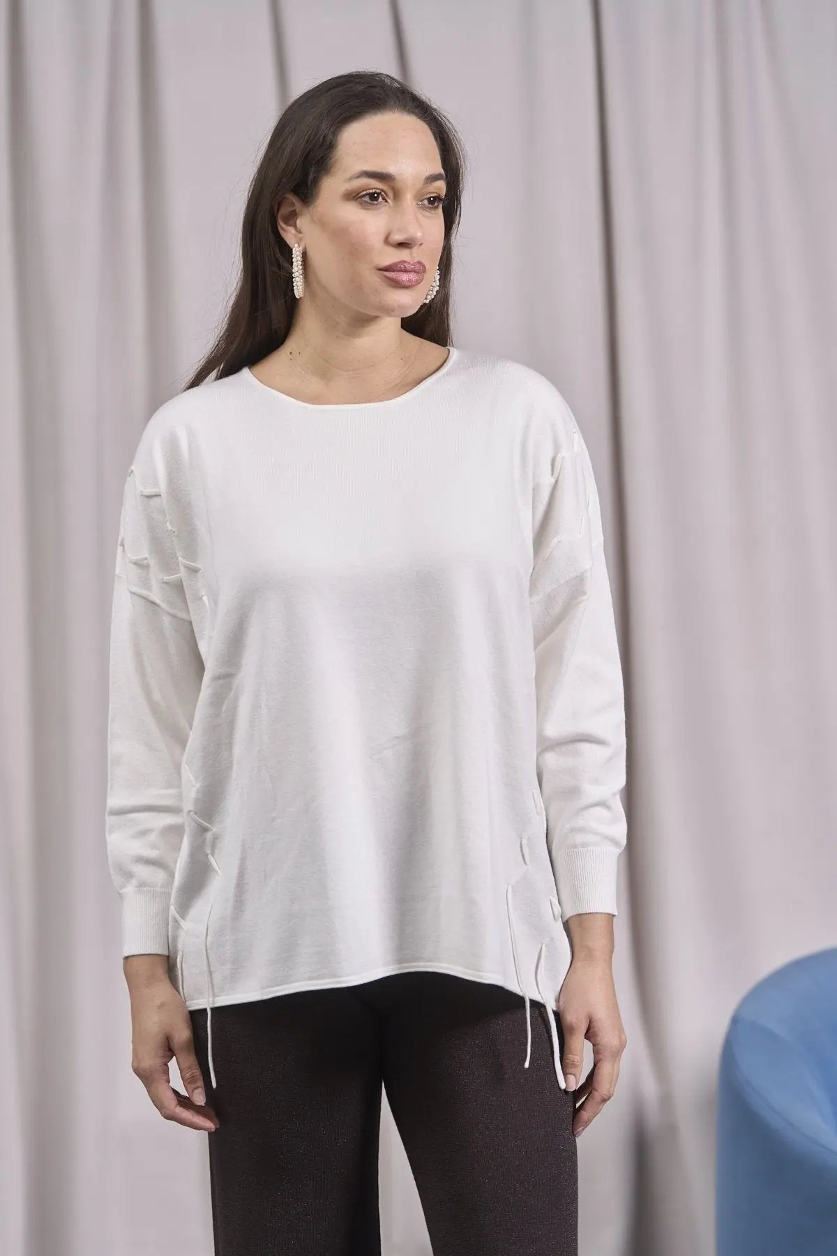 Suéter de cuello redondo con trenzas delanteras OFF WHITE