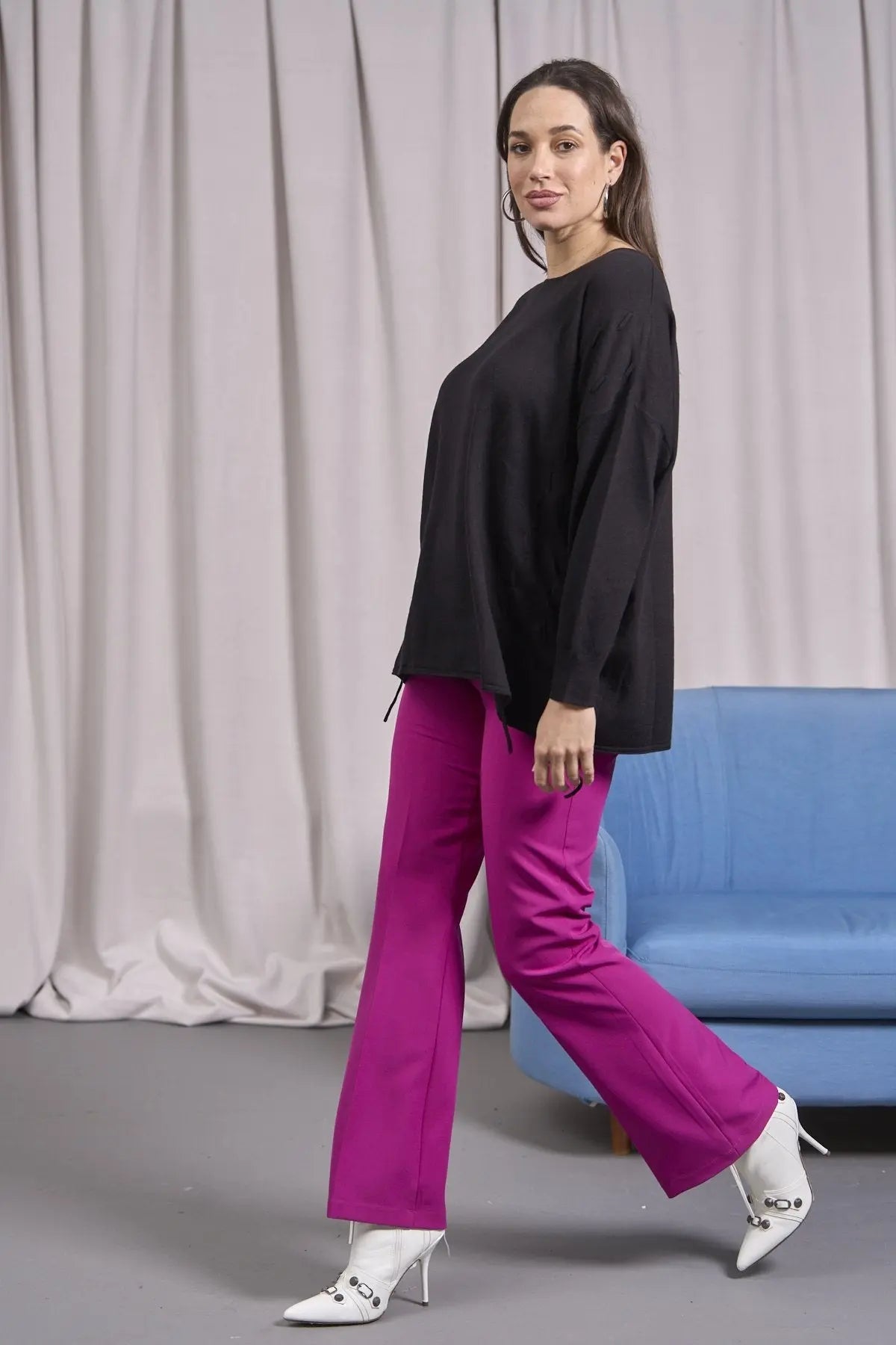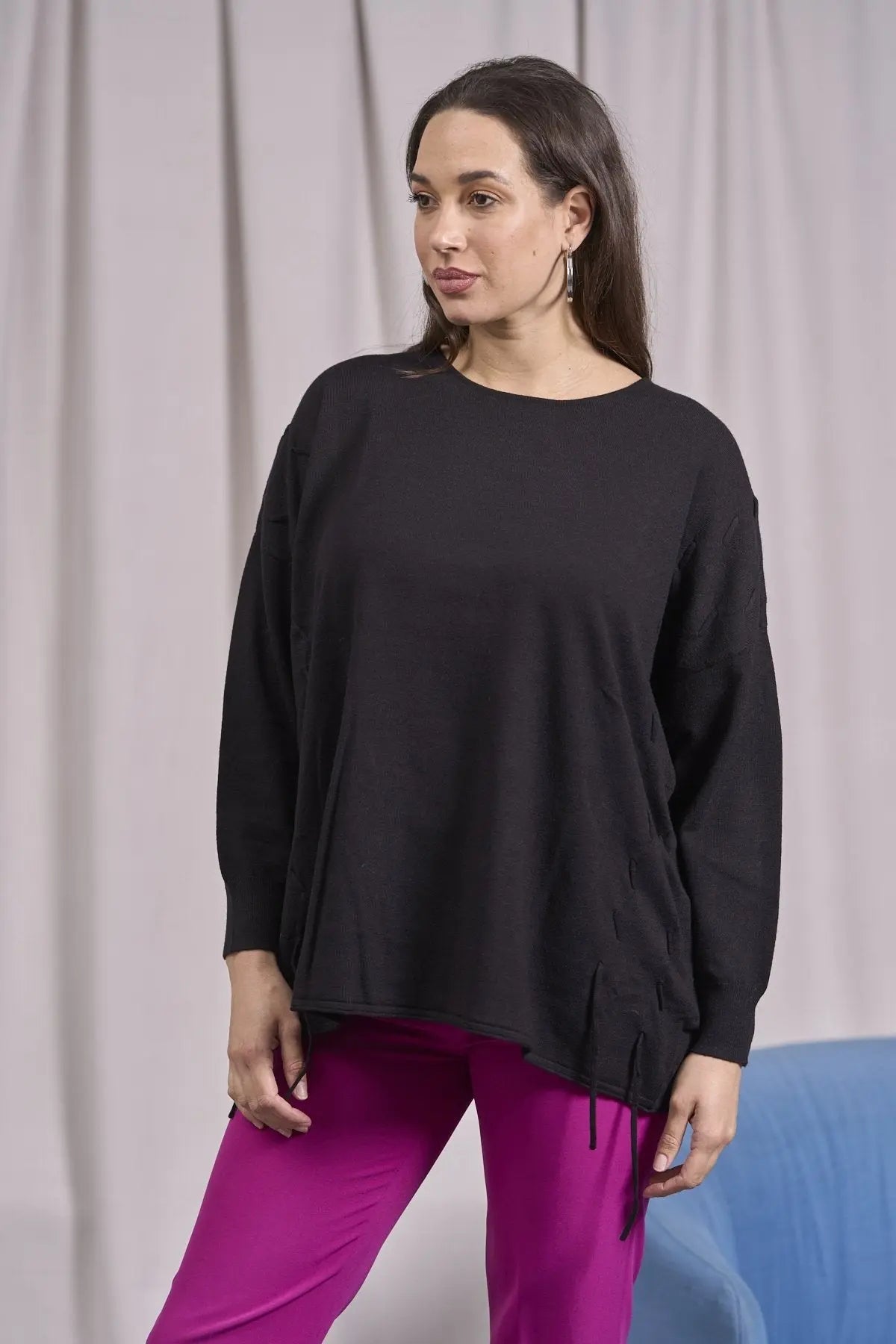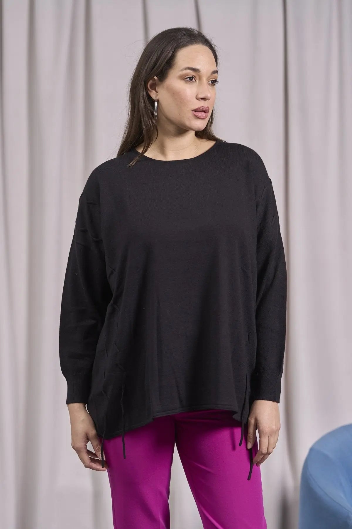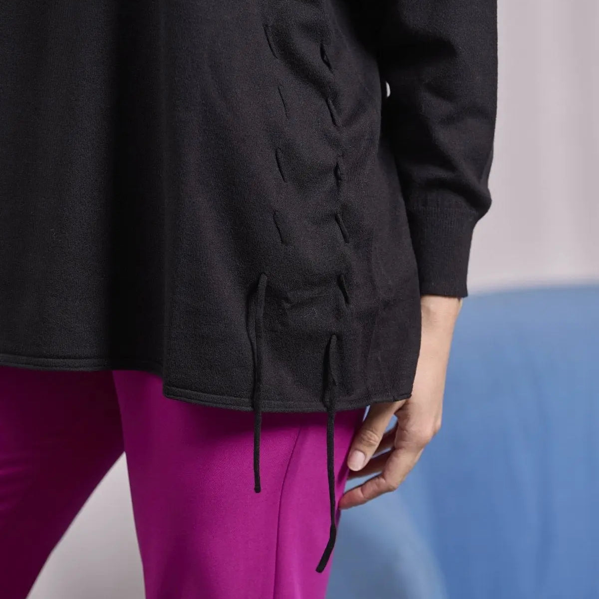 Suéter de cuello redondo con trenzas delanteras NEGRO