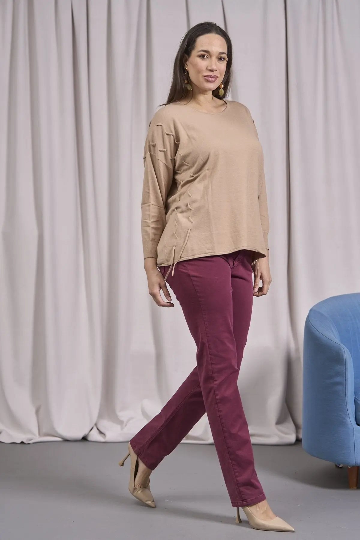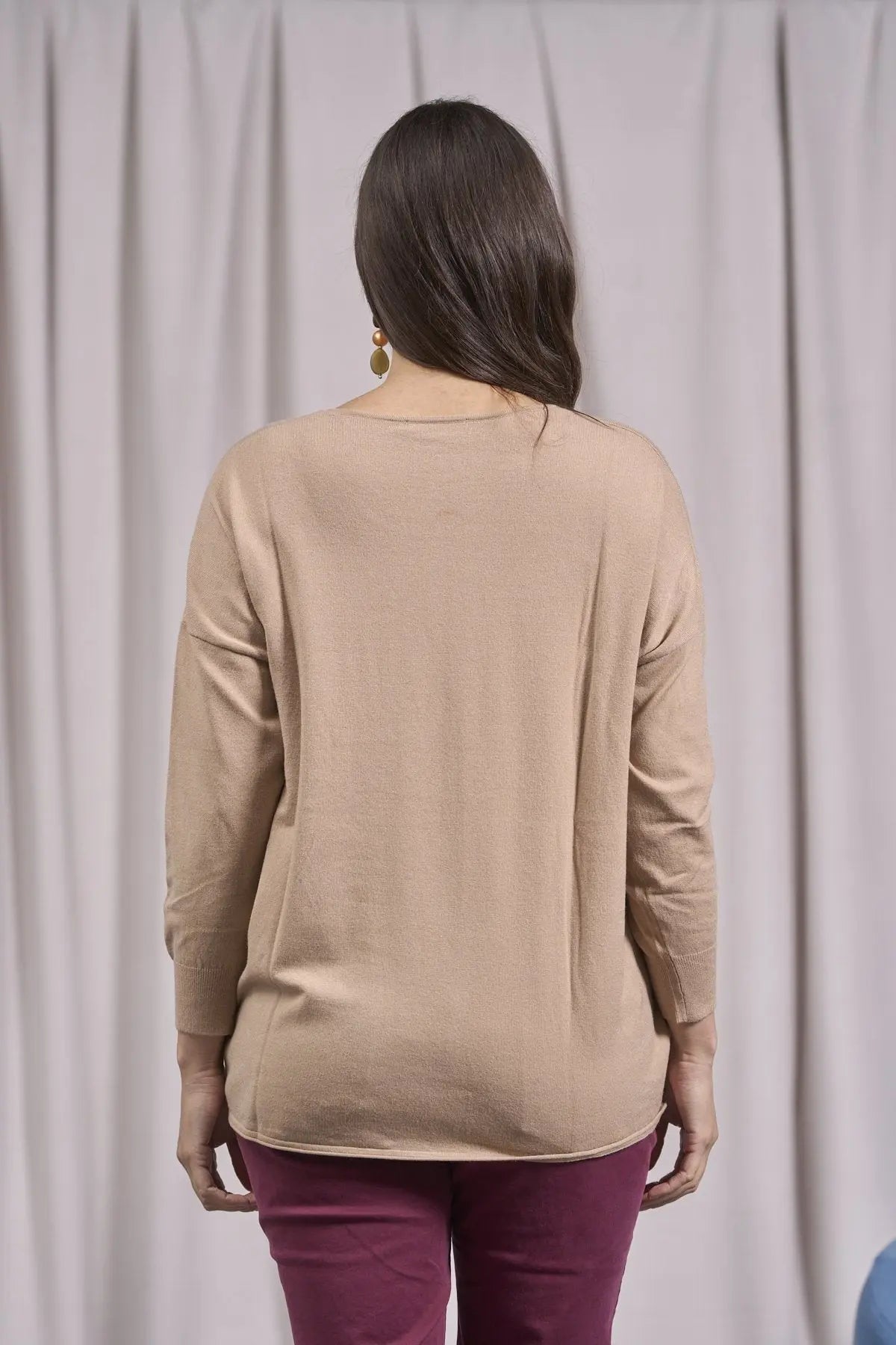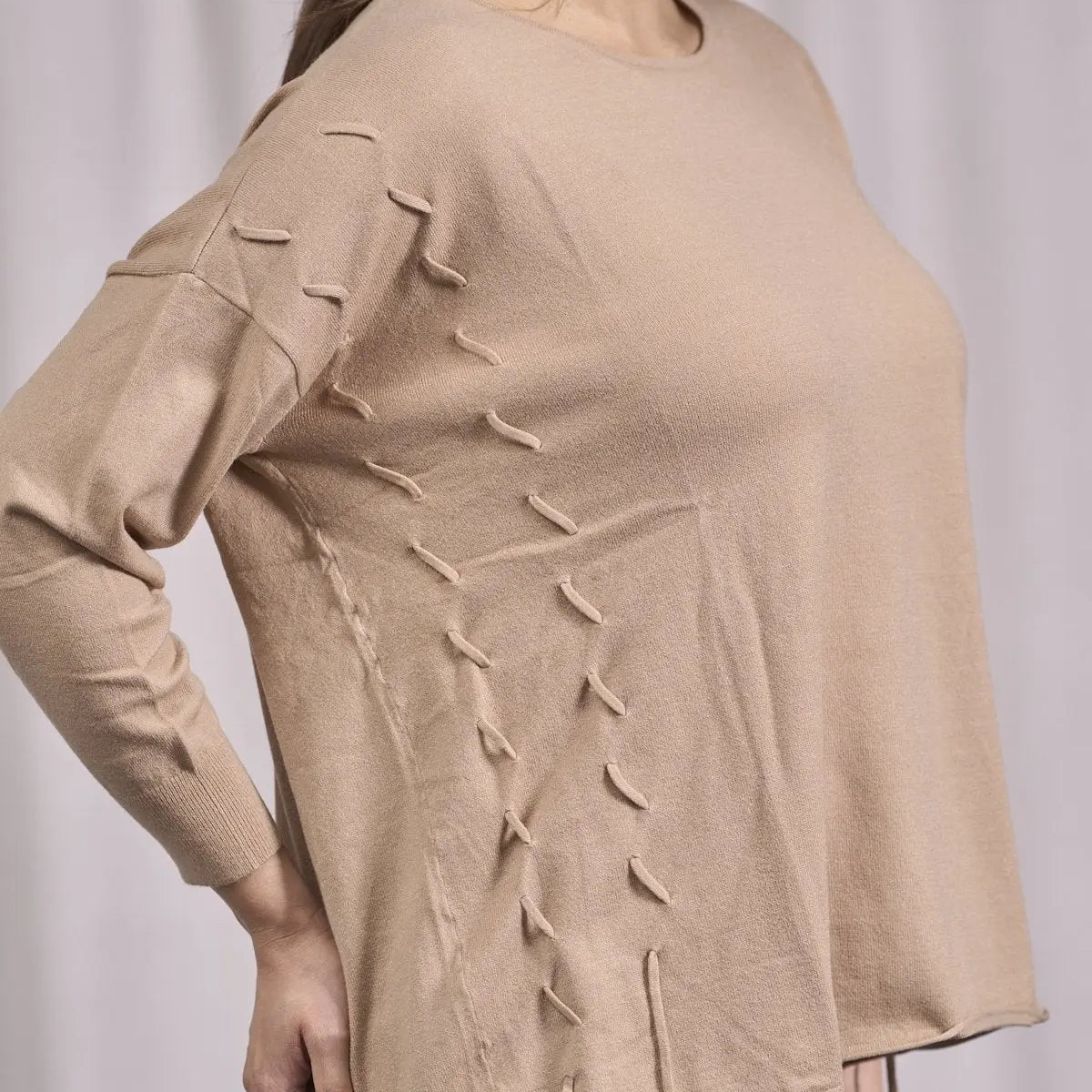 Suéter de cuello redondo con trenzas delanteras CAMEL