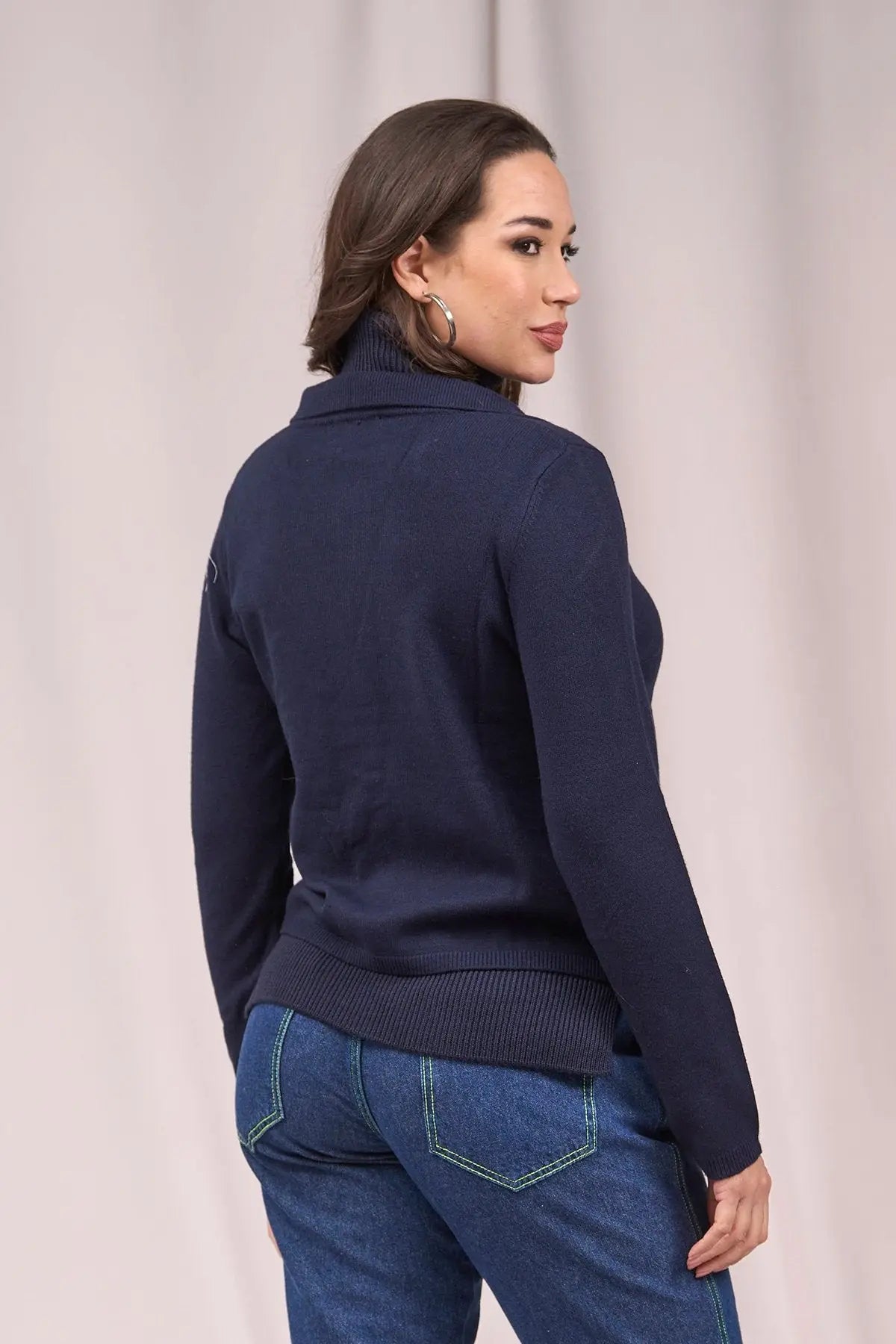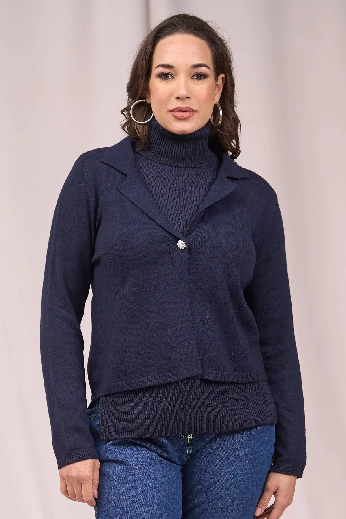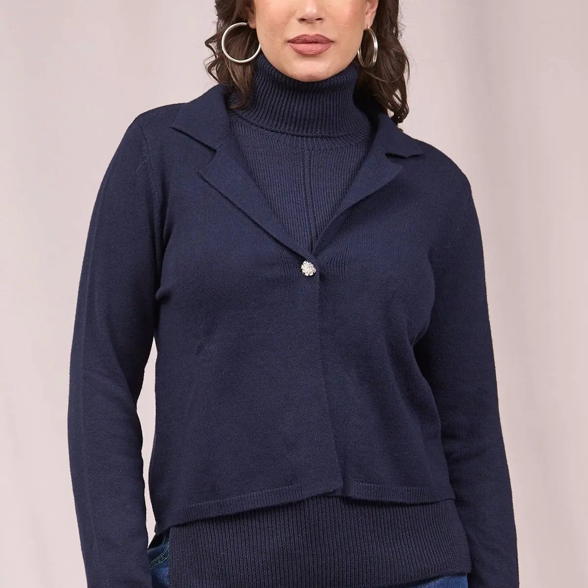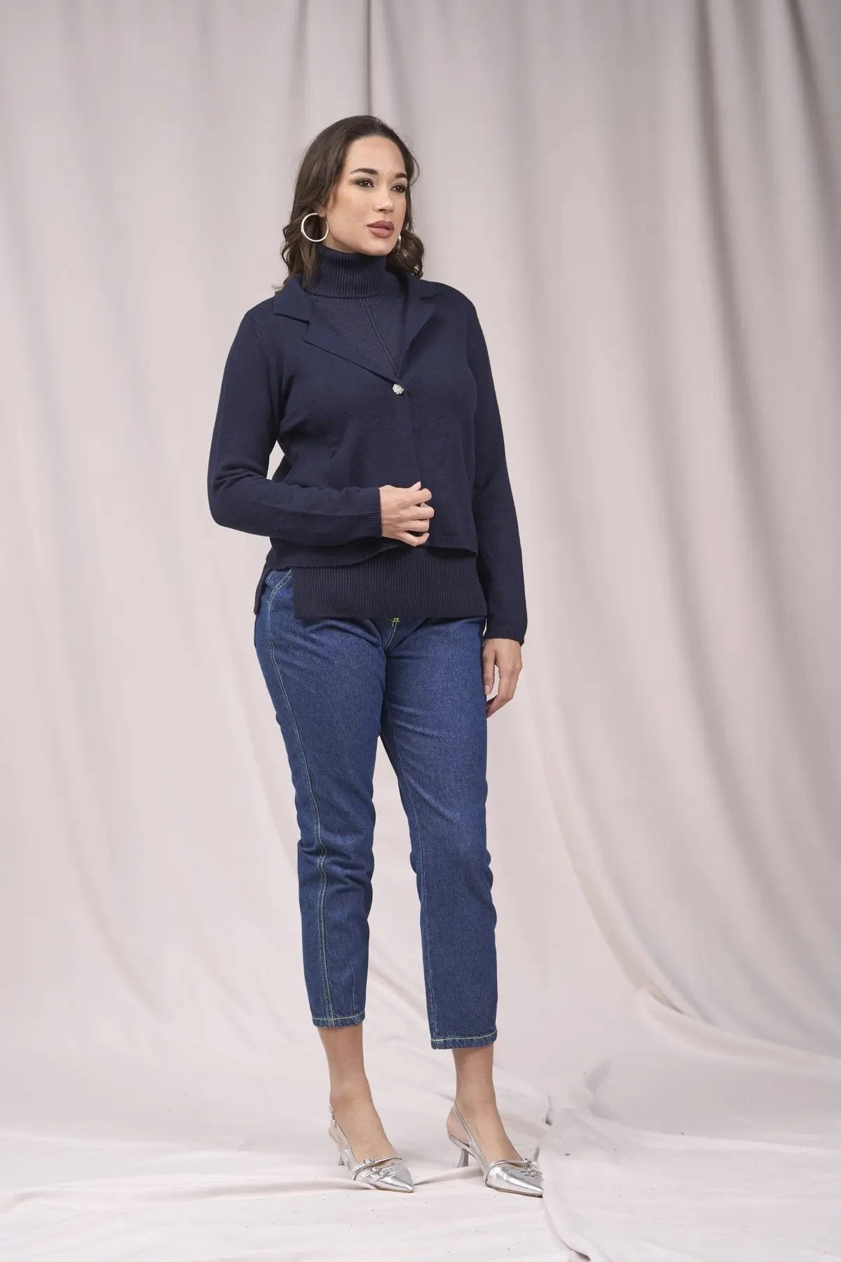 Cárdigan corto con cuello, solapa y botón AZUL