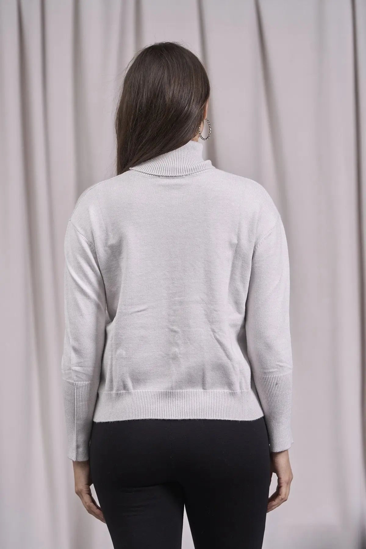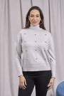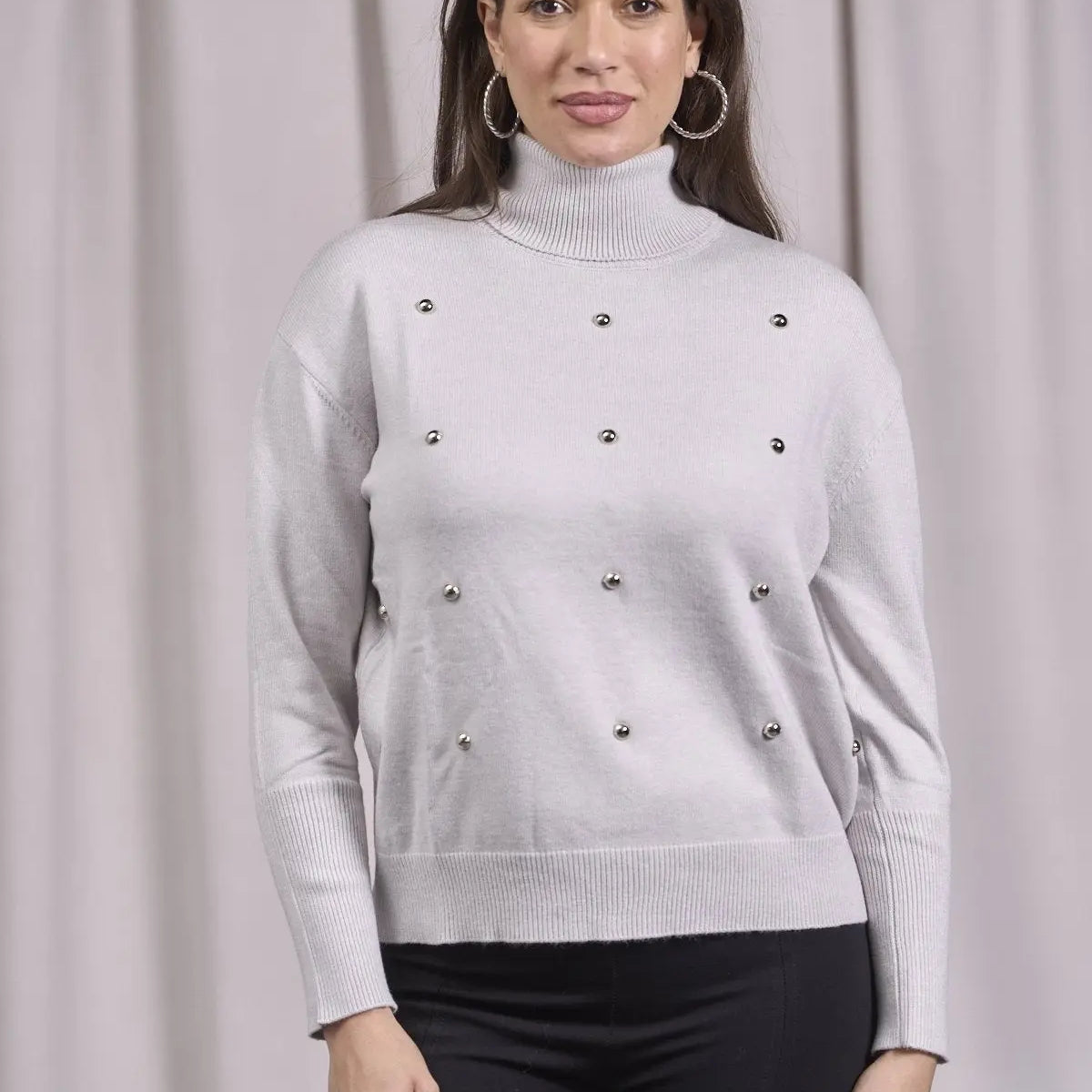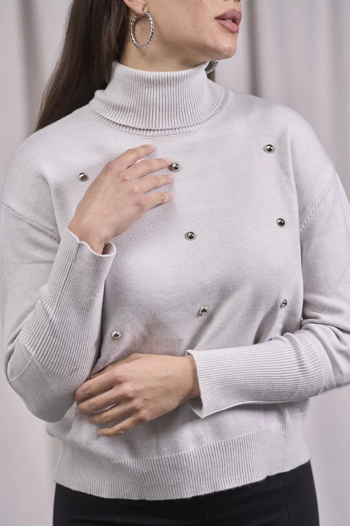 Suéter de cuello alto con tachuelas delanteras GRIS PERLA