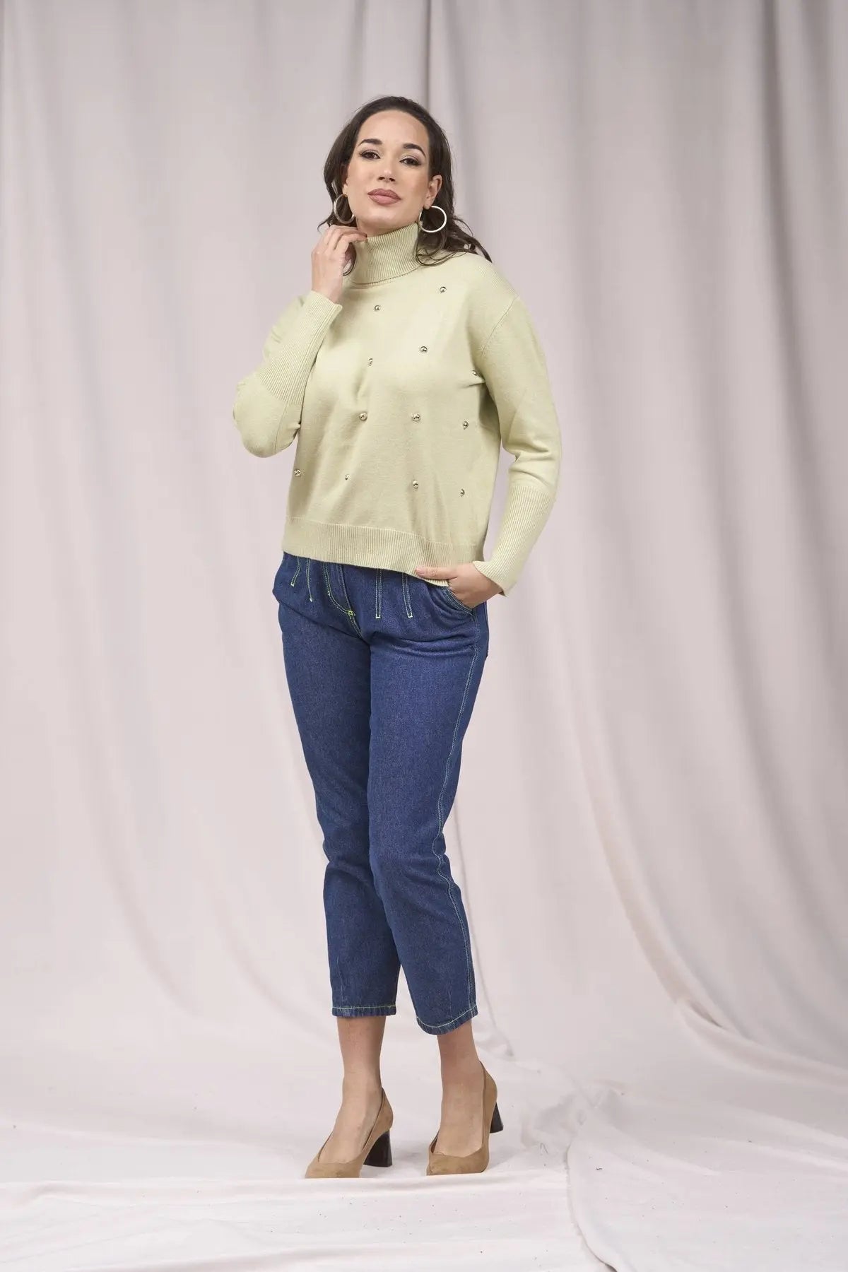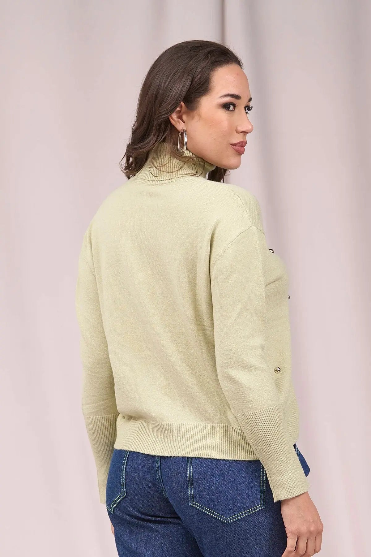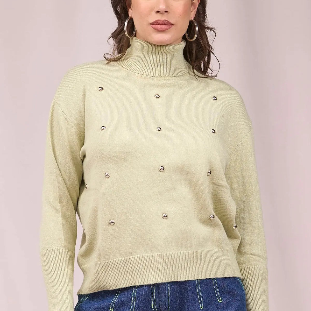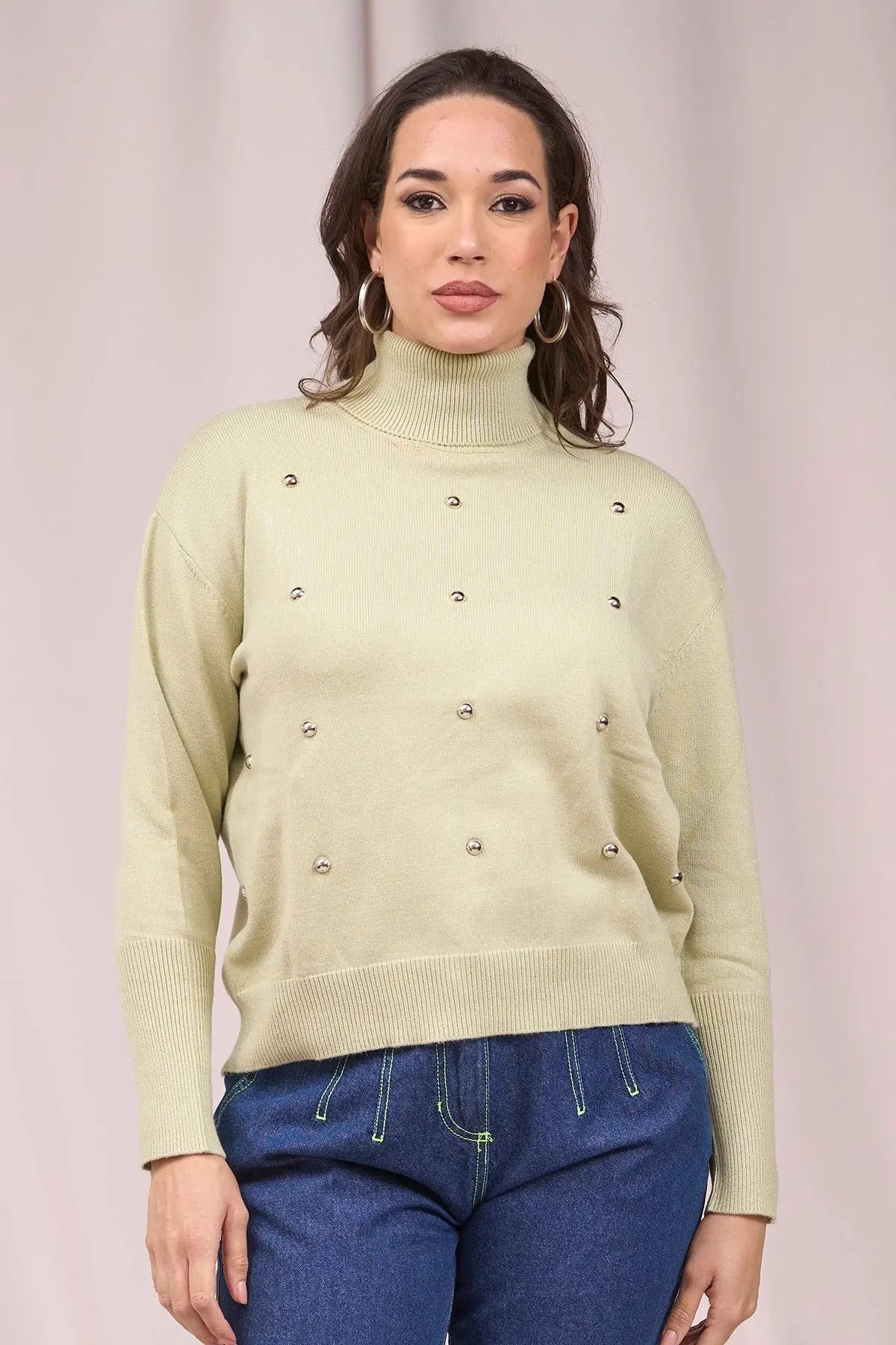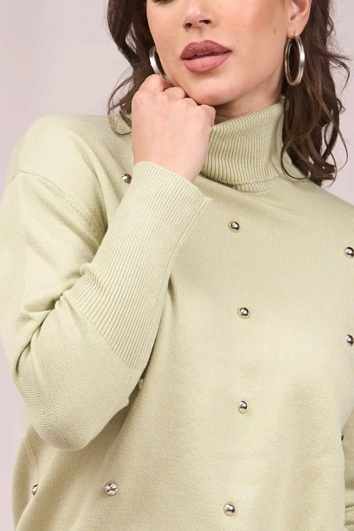 Suéter de cuello alto con tachuelas en la parte delantera VERDE