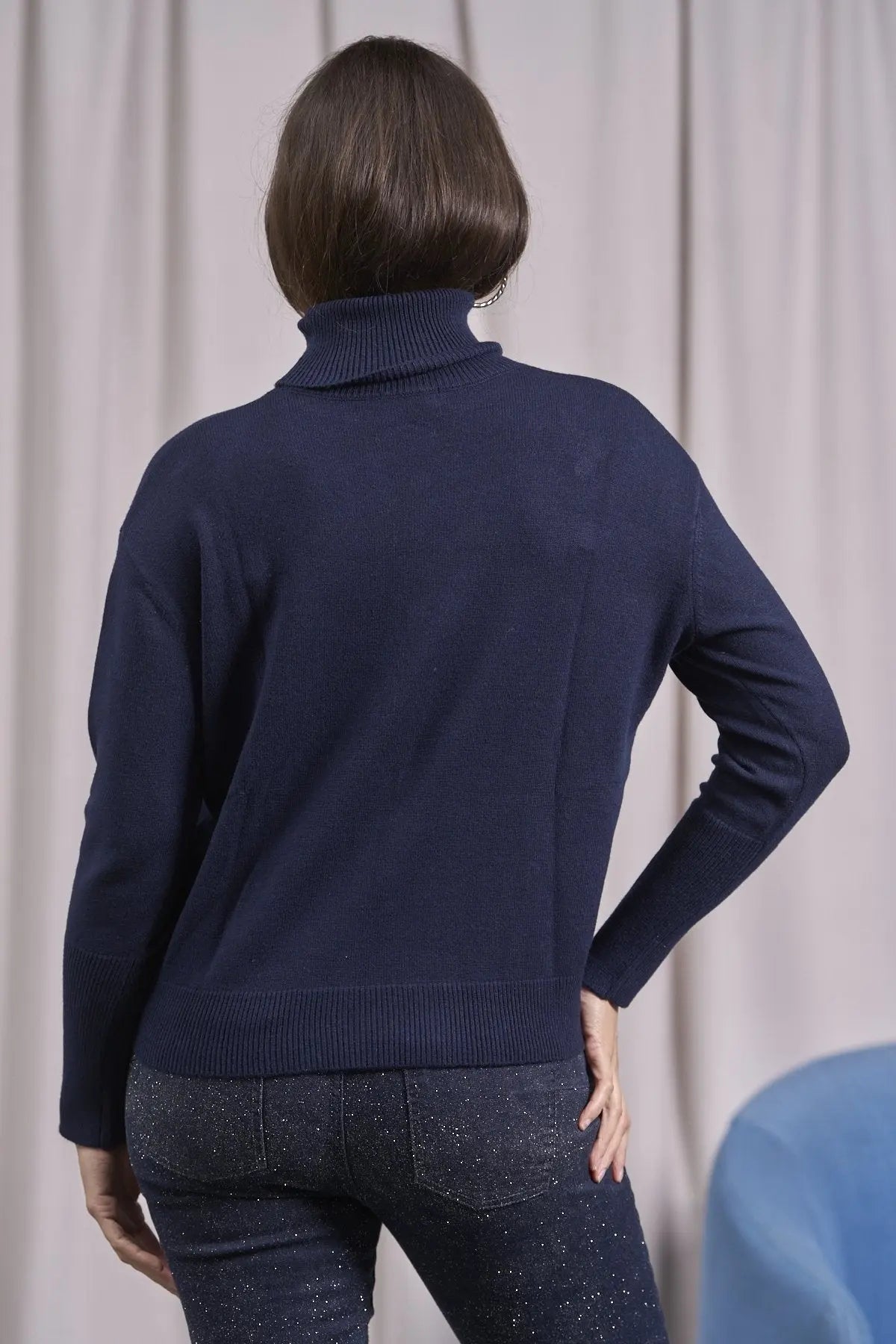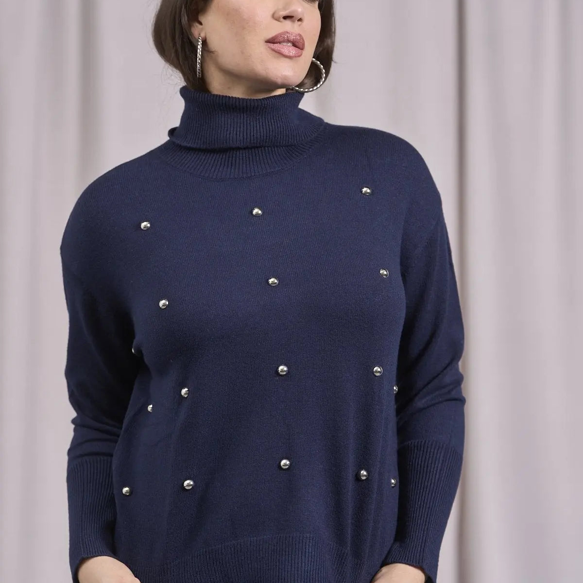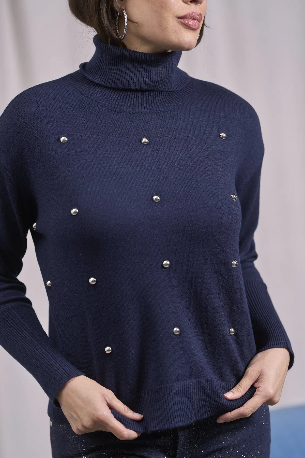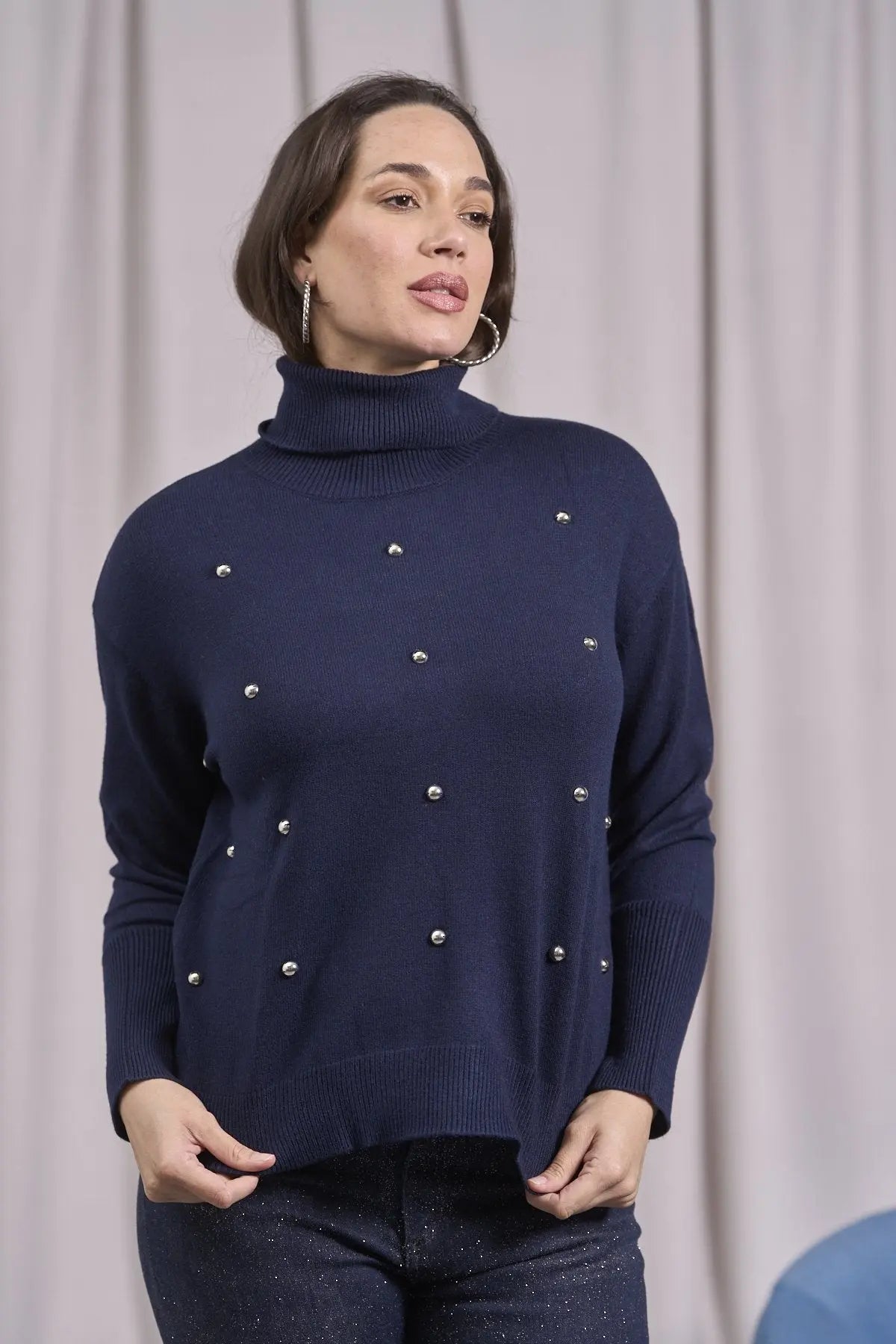 Suéter de cuello alto con tachuelas en la parte delantera AZUL