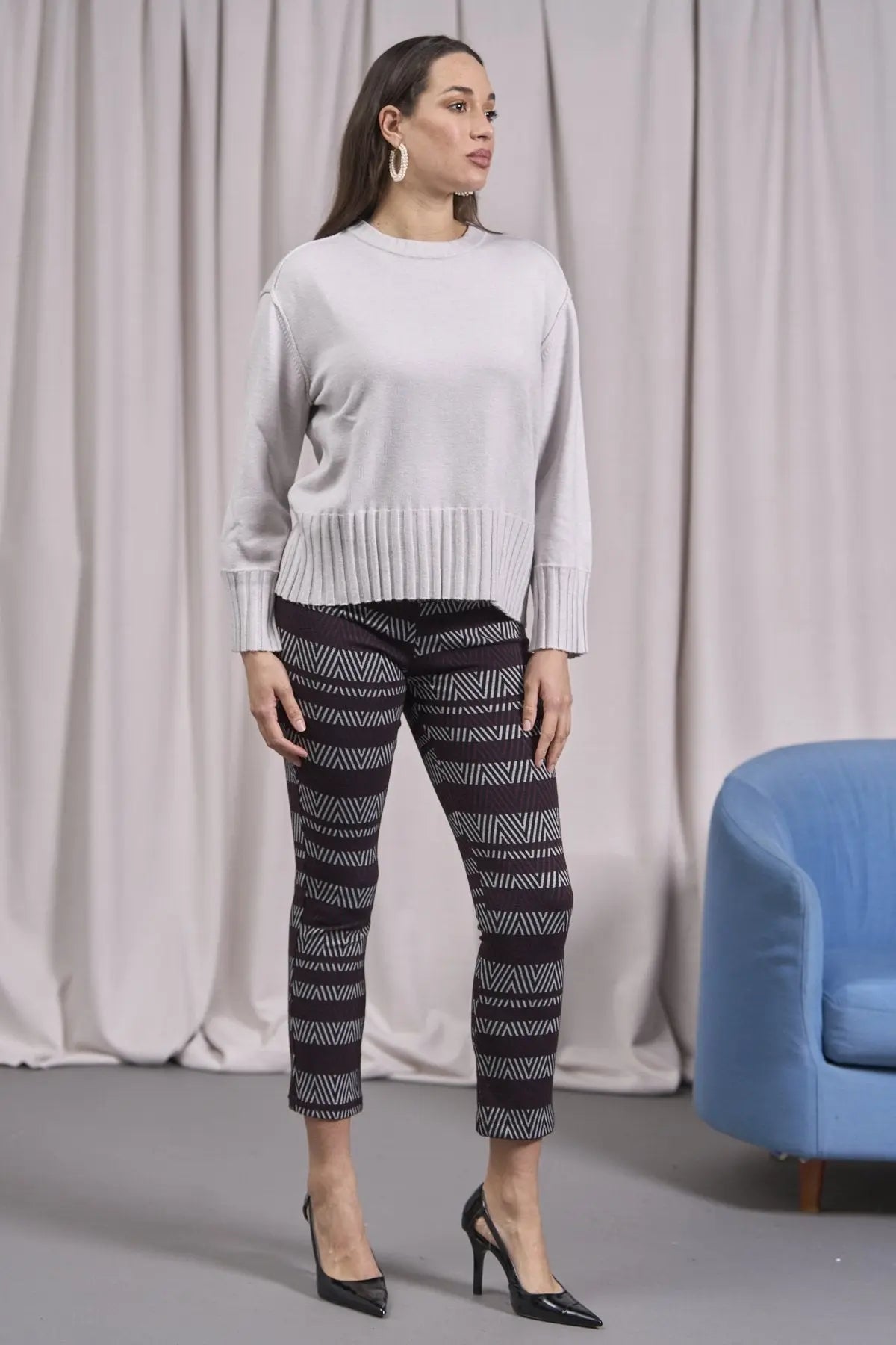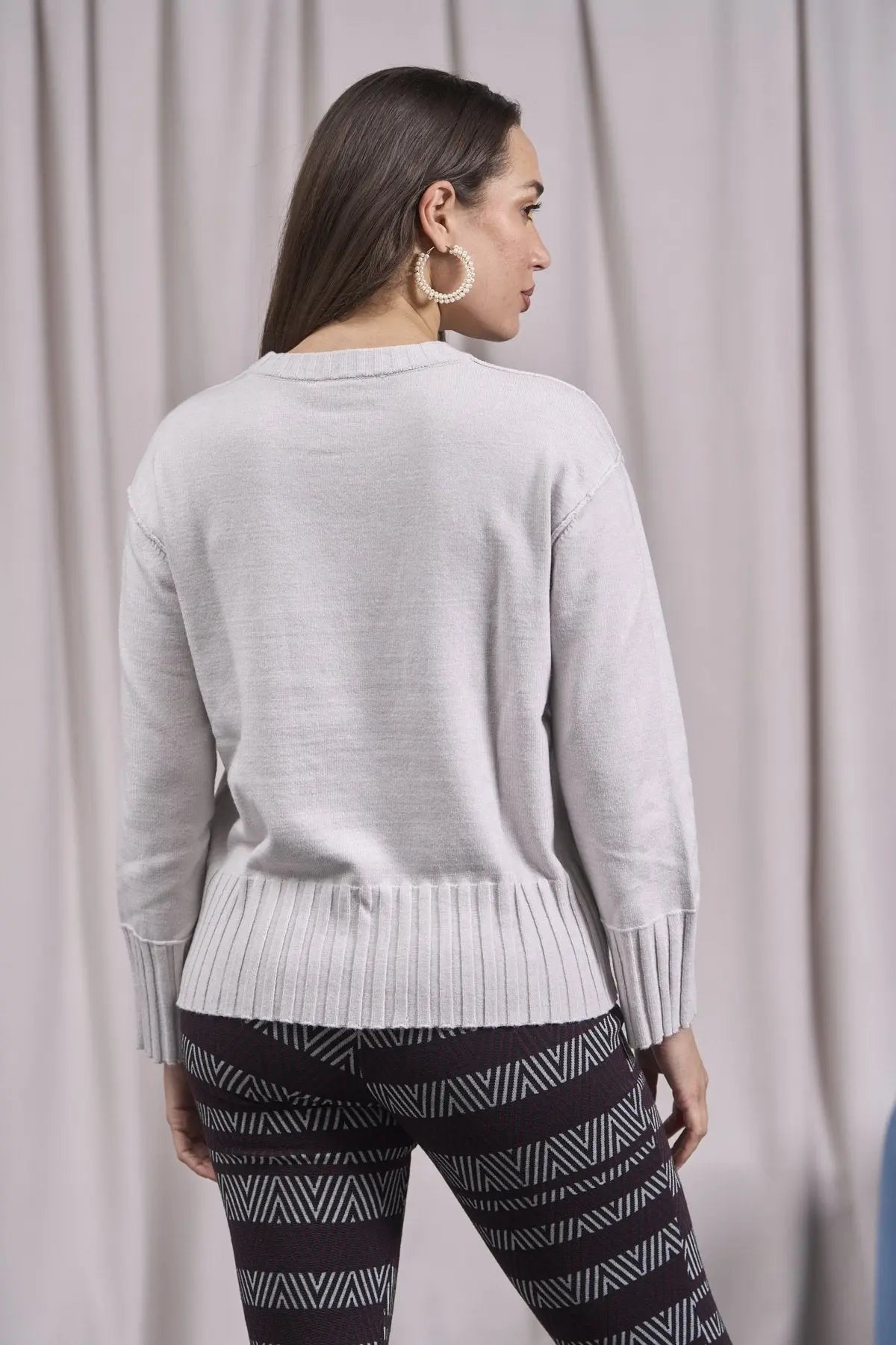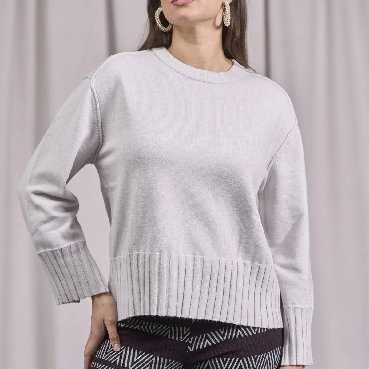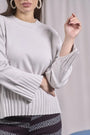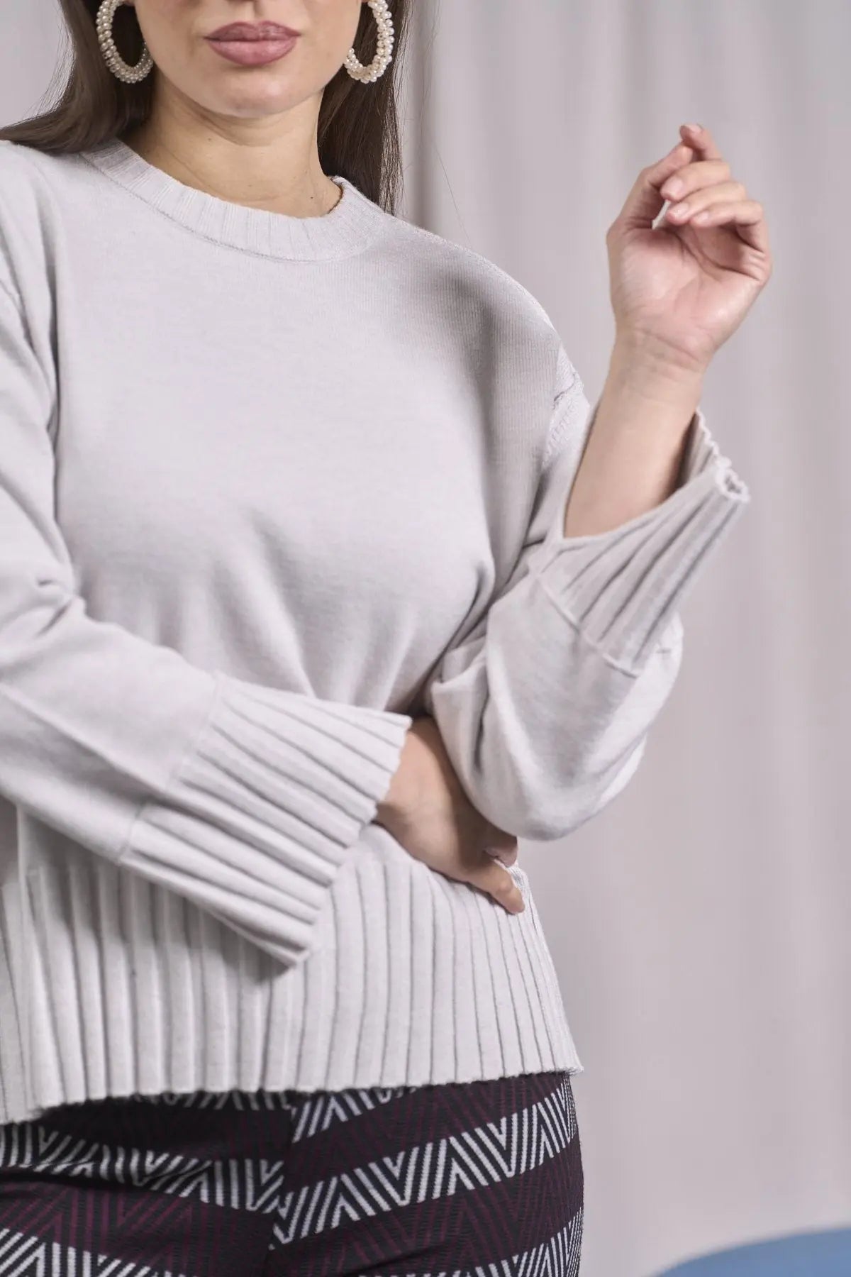 Suéter de cuello redondo con bordes anchos de canalé GRIS PERLA