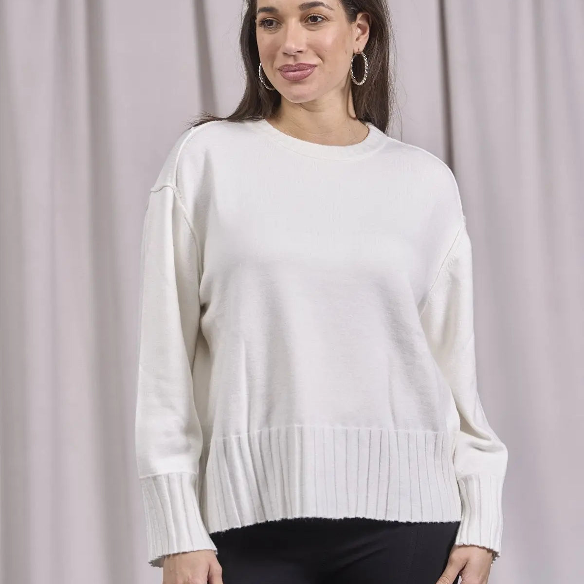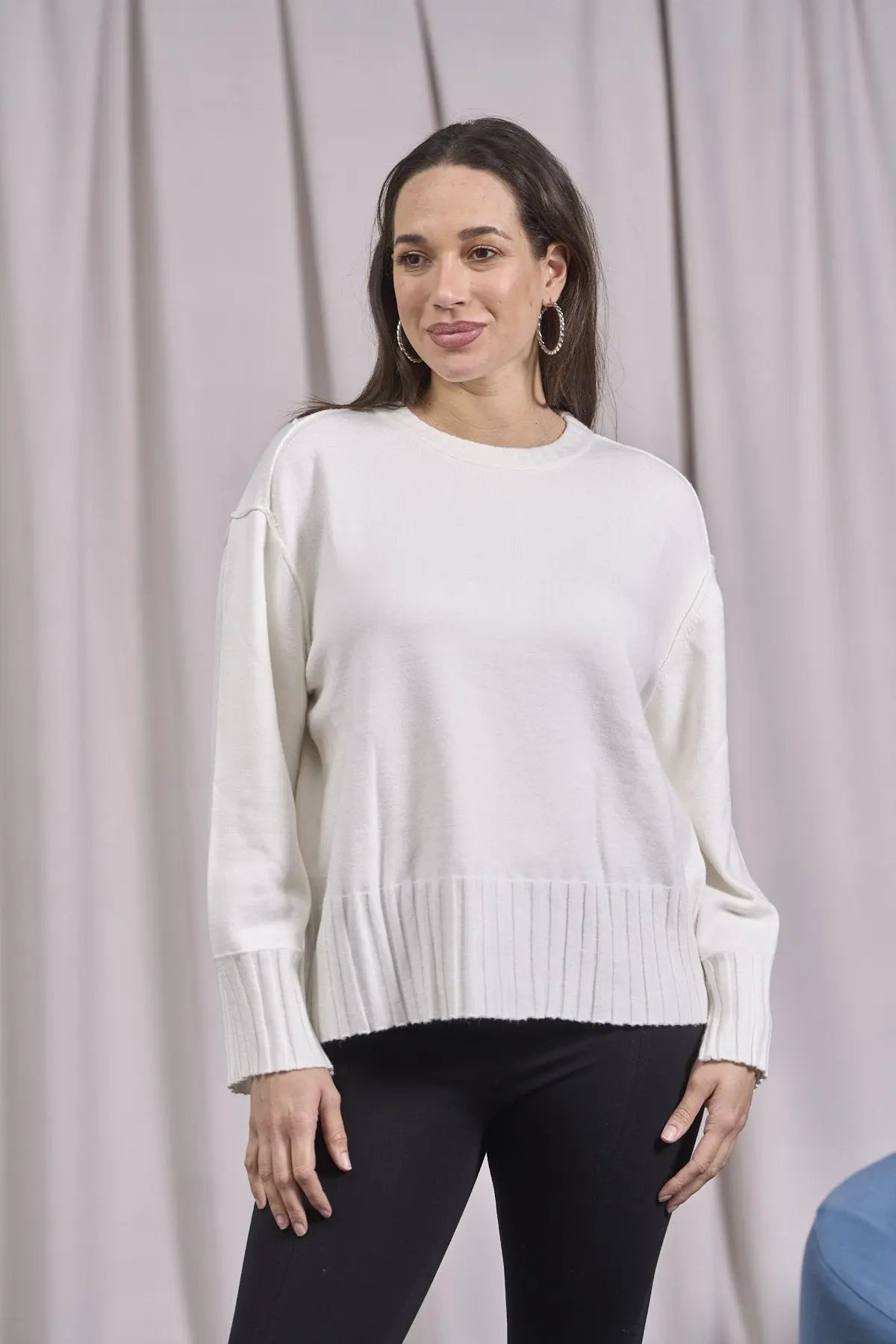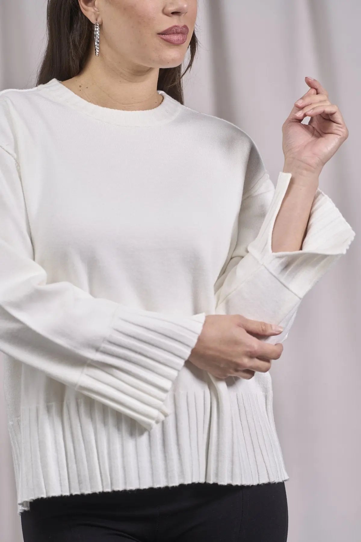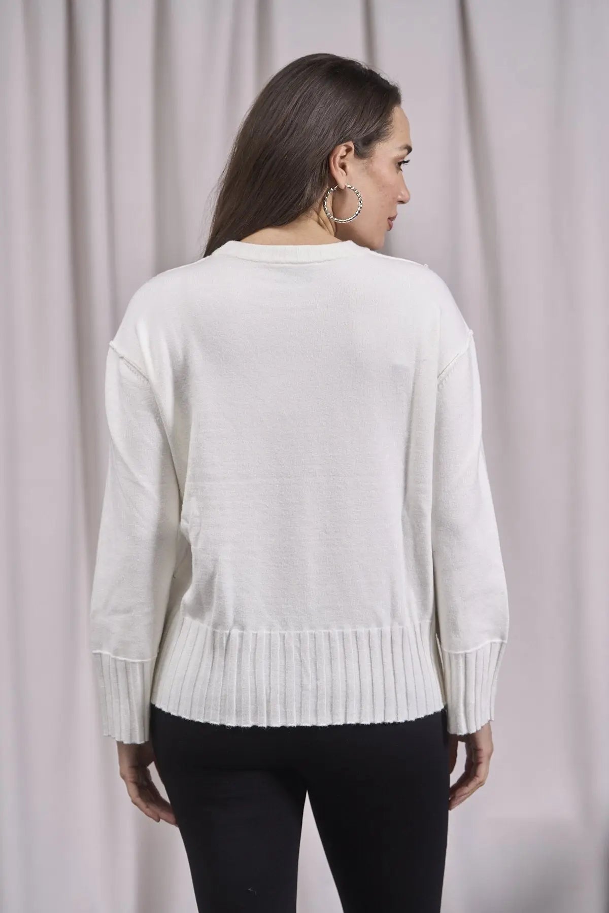 Suéter de cuello redondo con bordes anchos de canalé BLANCO ROJO