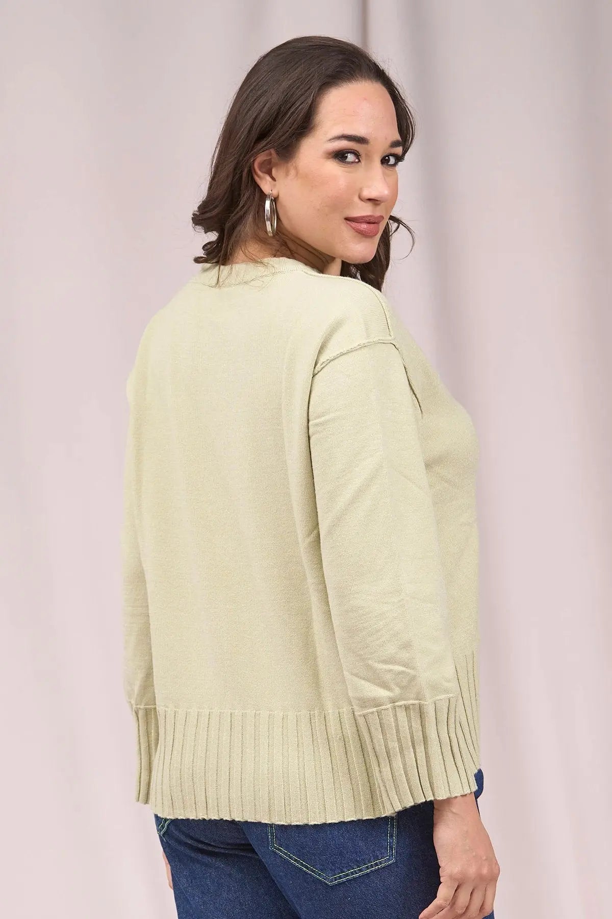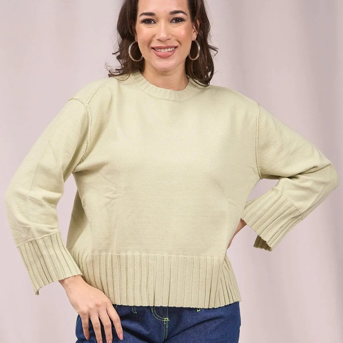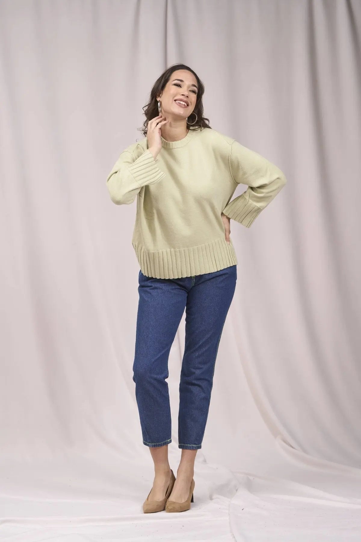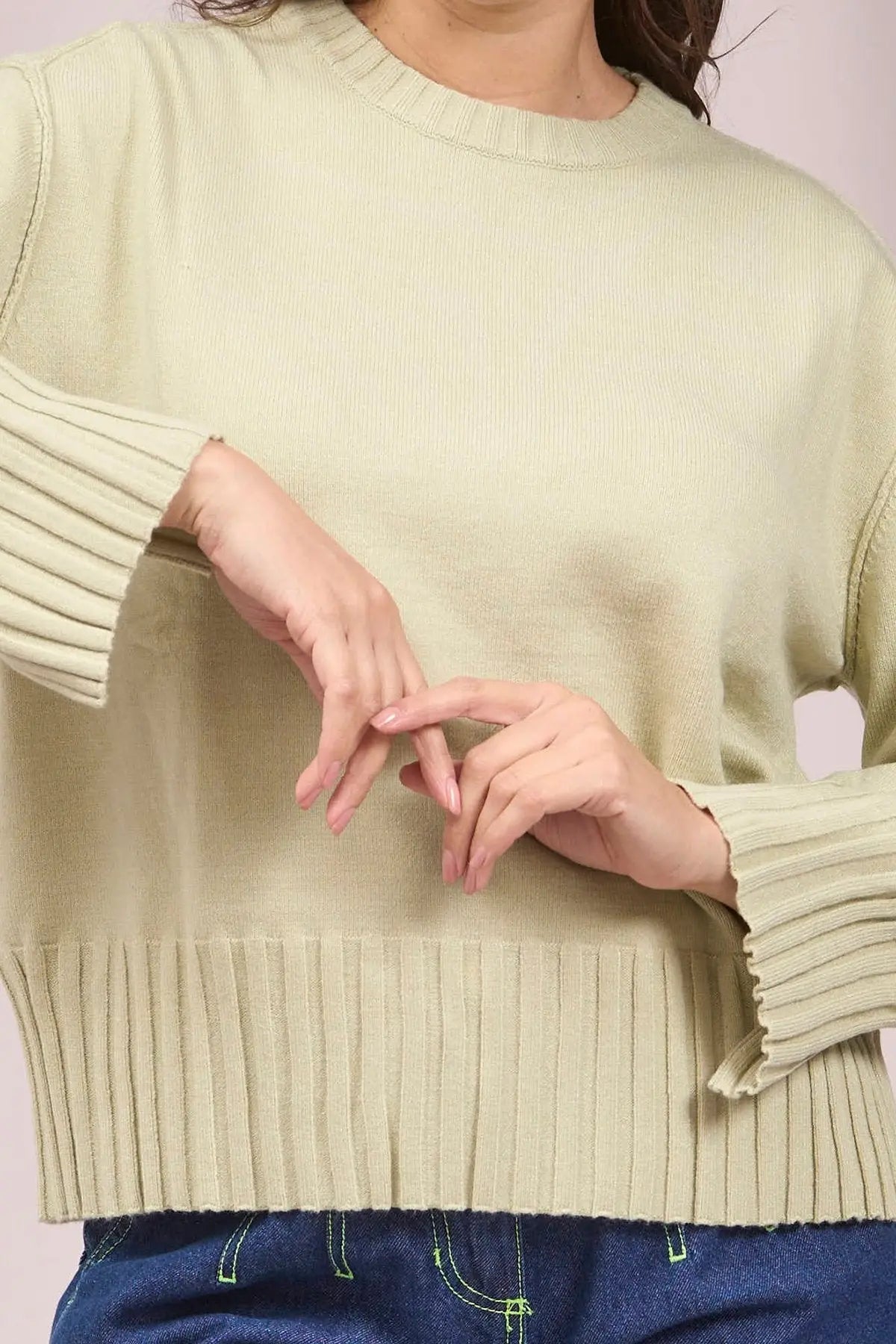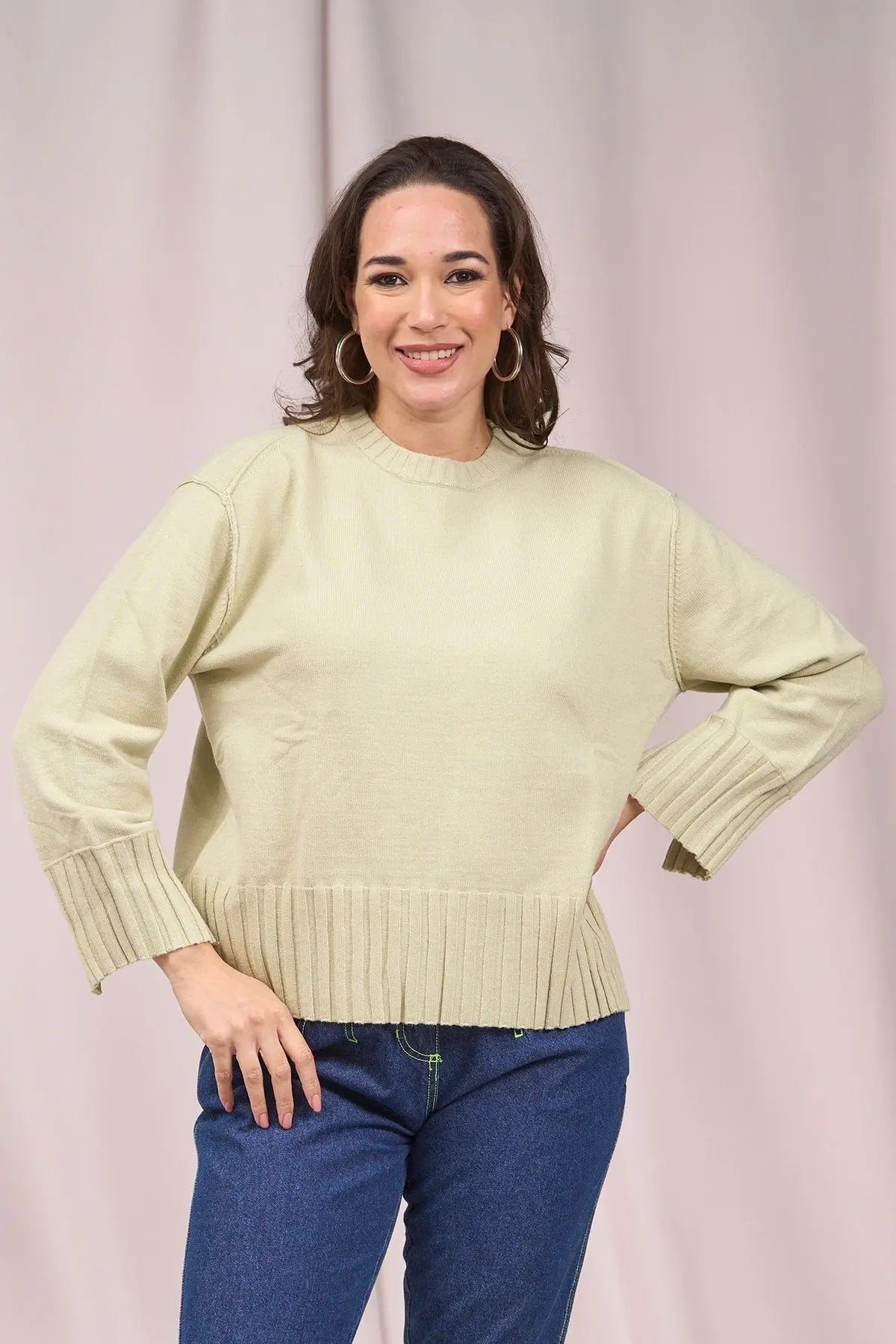Suéter de cuello redondo con bordes anchos de canalé VERDE