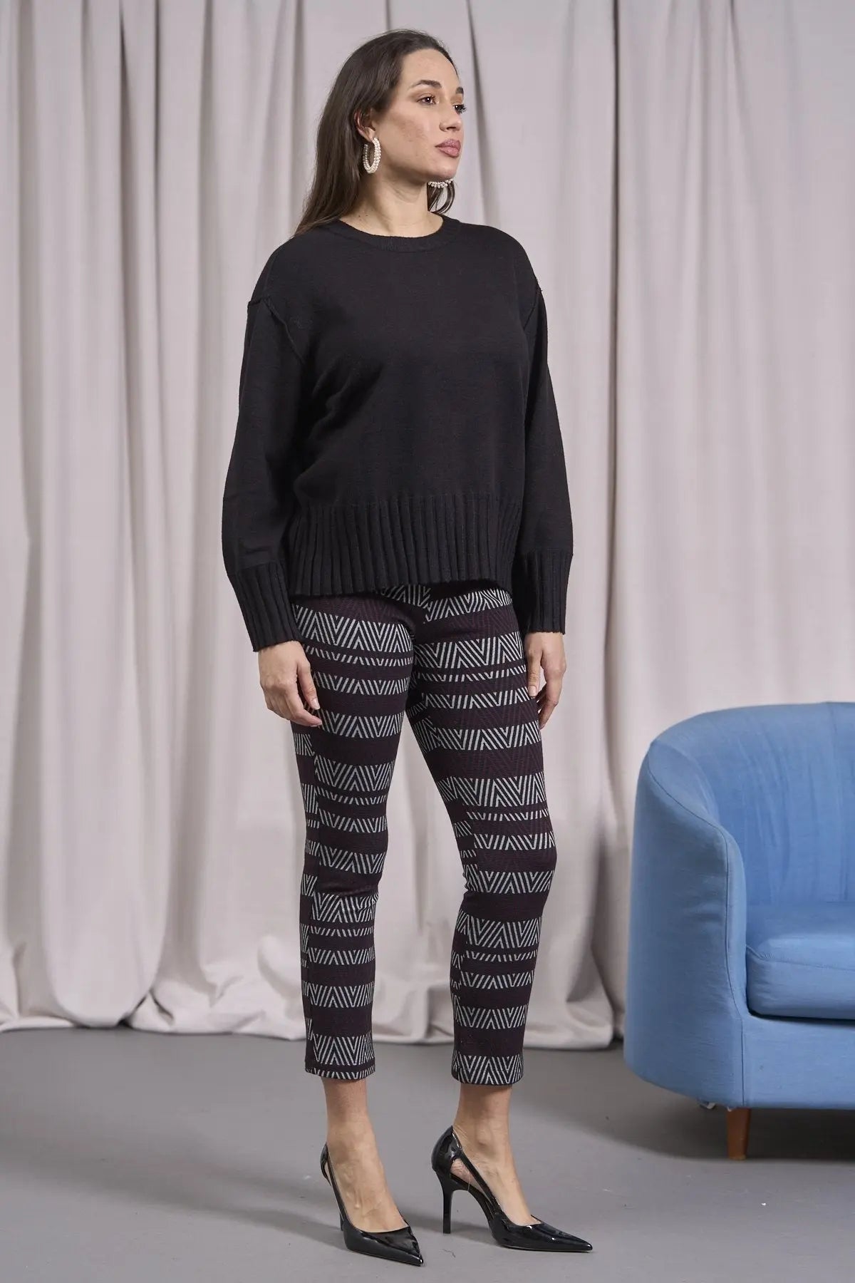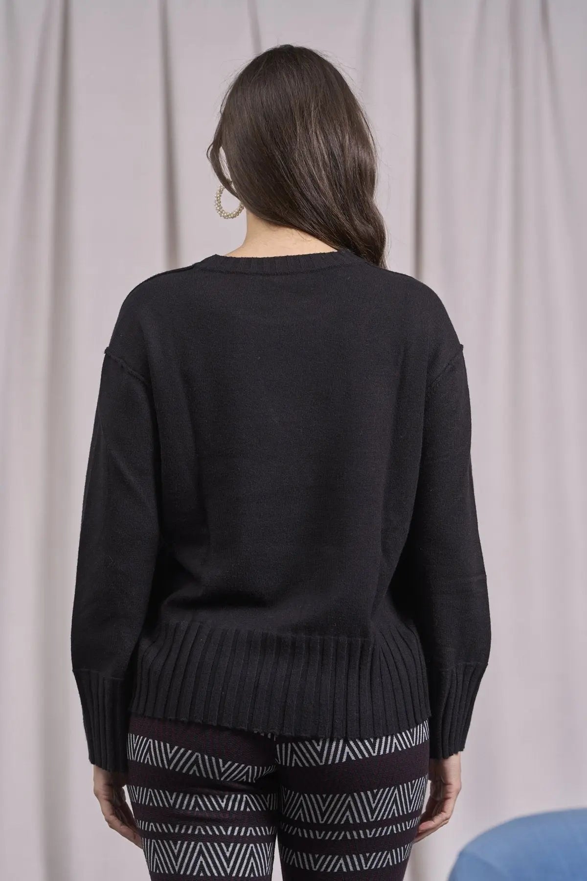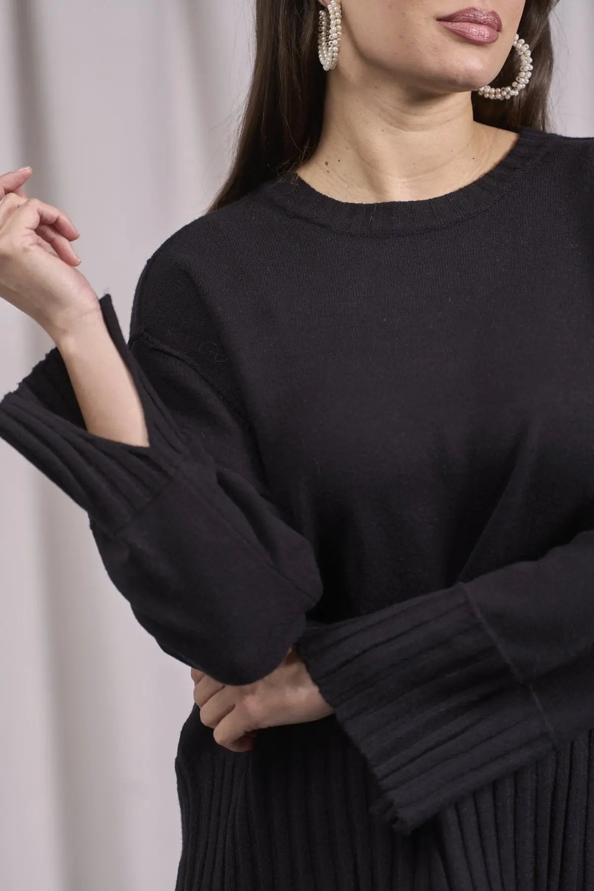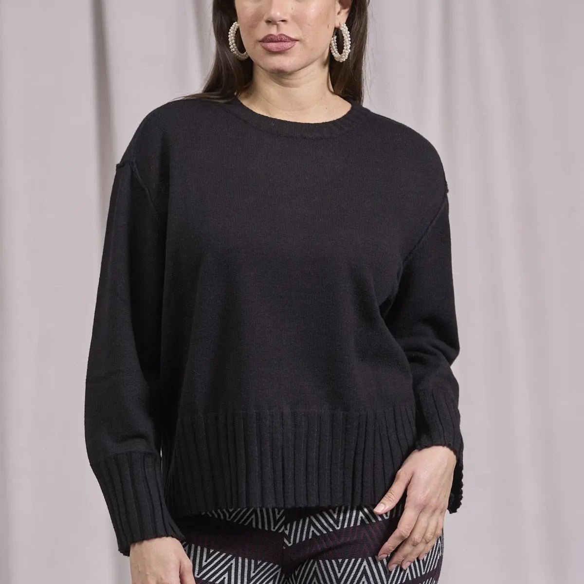 Suéter de cuello redondo con bordes anchos de canalé NEGRO