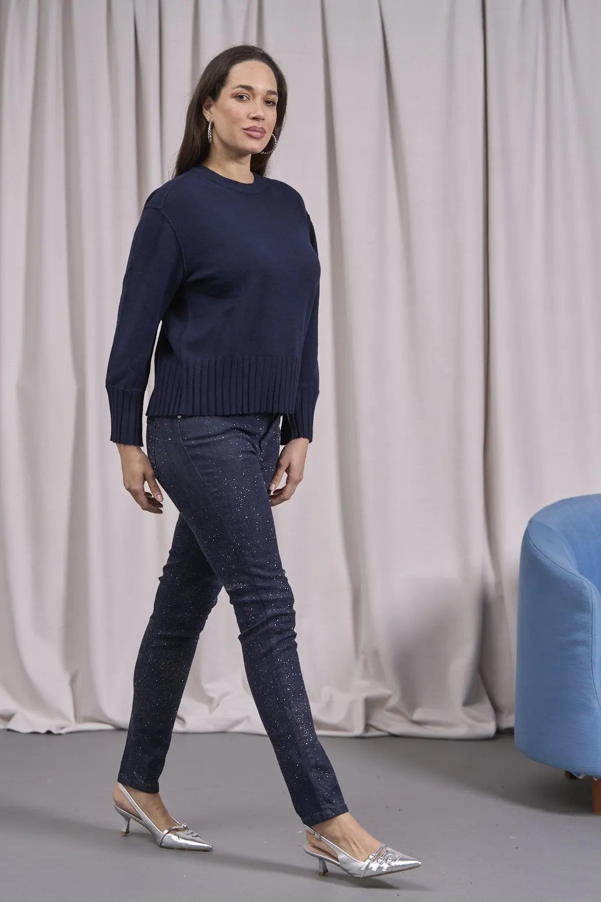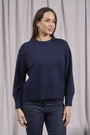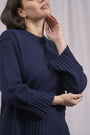 Suéter de cuello redondo con bordes anchos de canalé AZUL