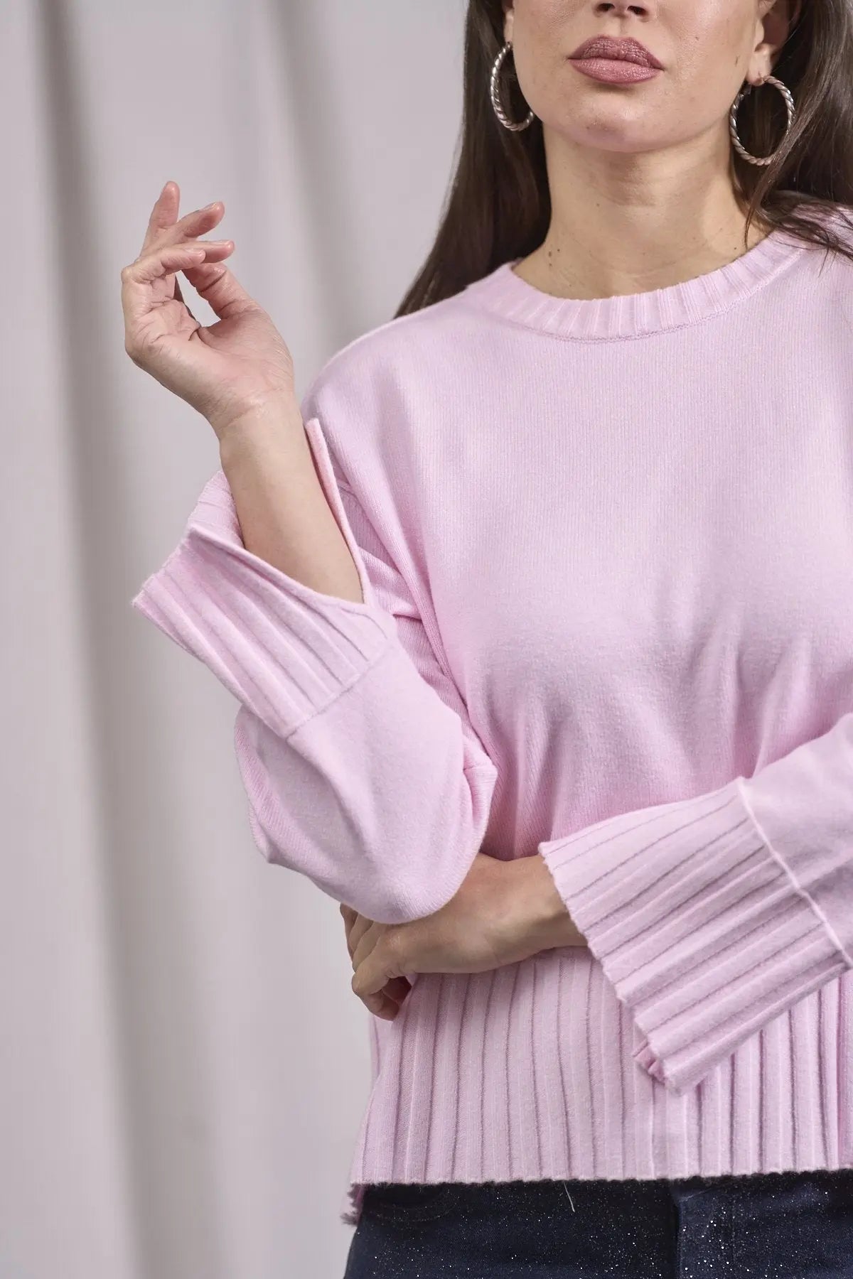 Suéter de cuello redondo con bordes anchos de canalé ROSA