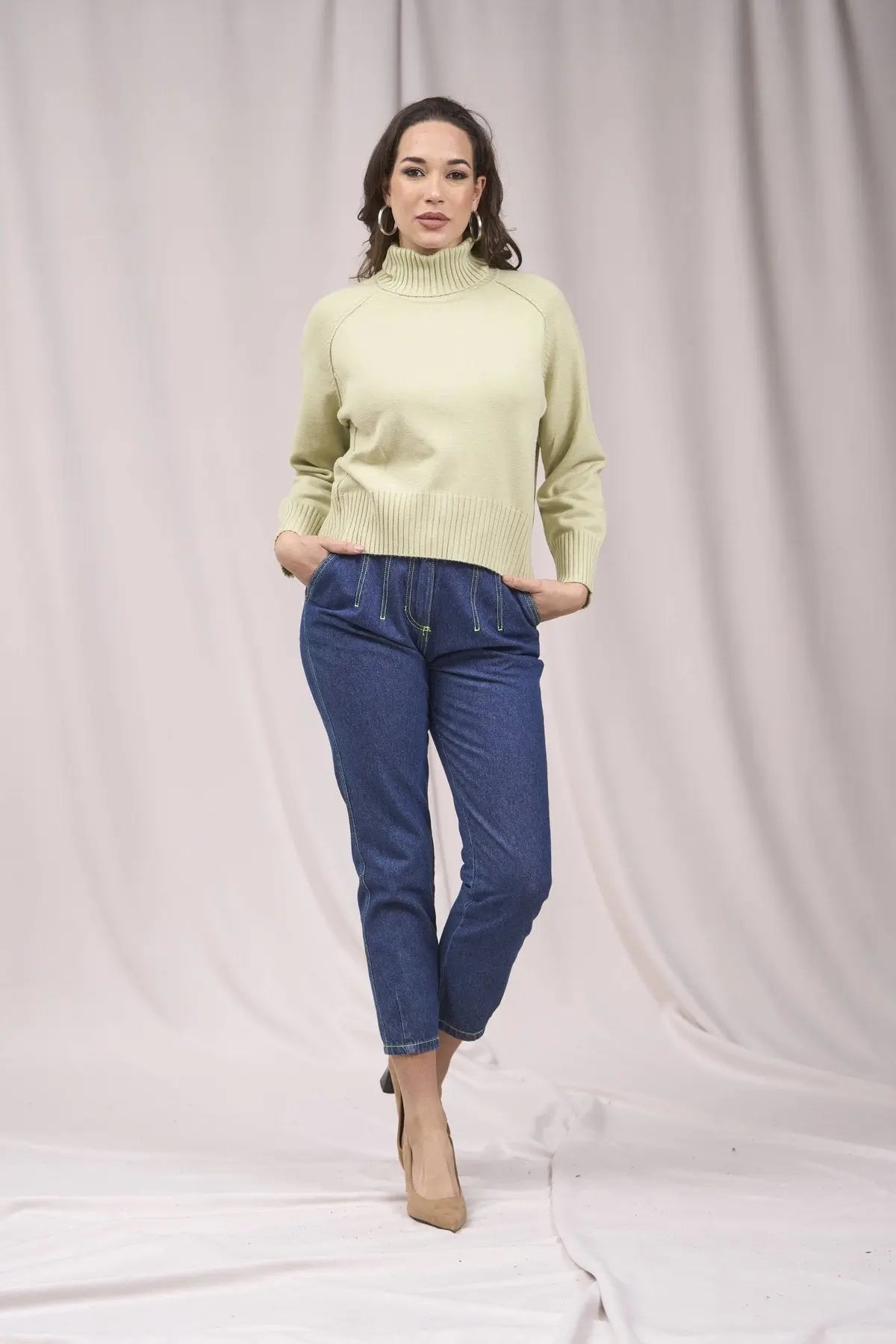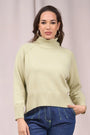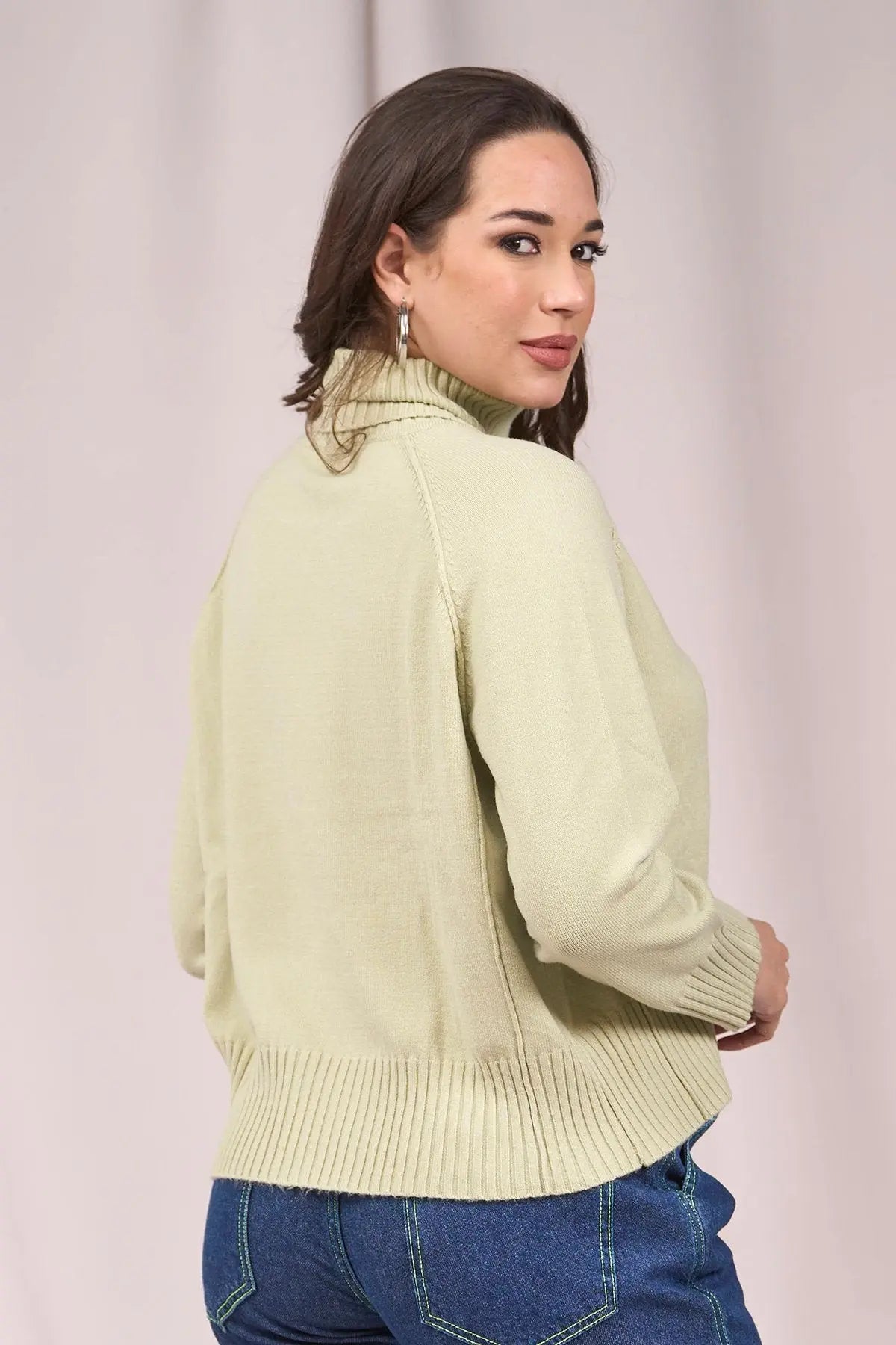 Suéter VERDE de cuello alto, manga raglán y canalé