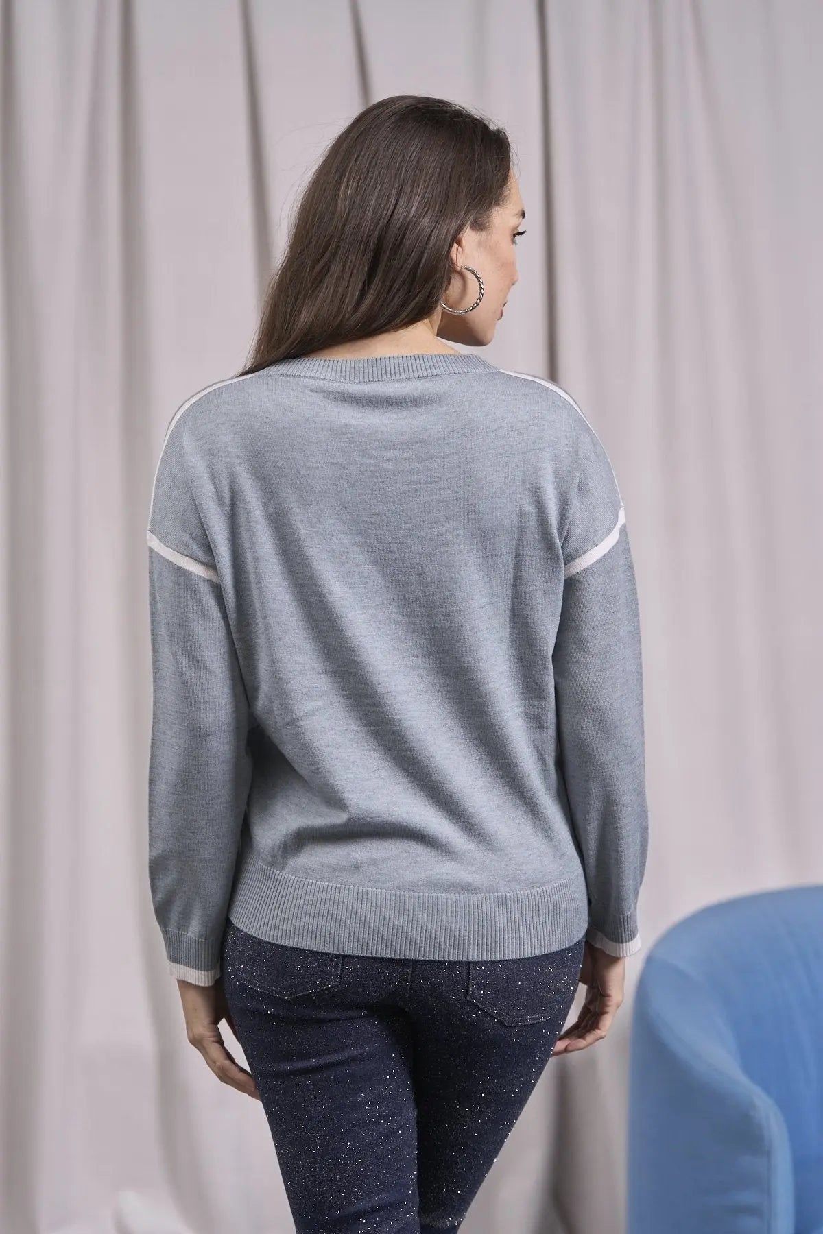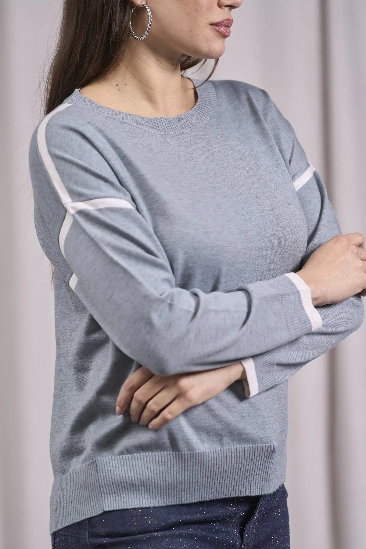 Suéter de cuello redondo con bordes en contraste GRIS CLARO