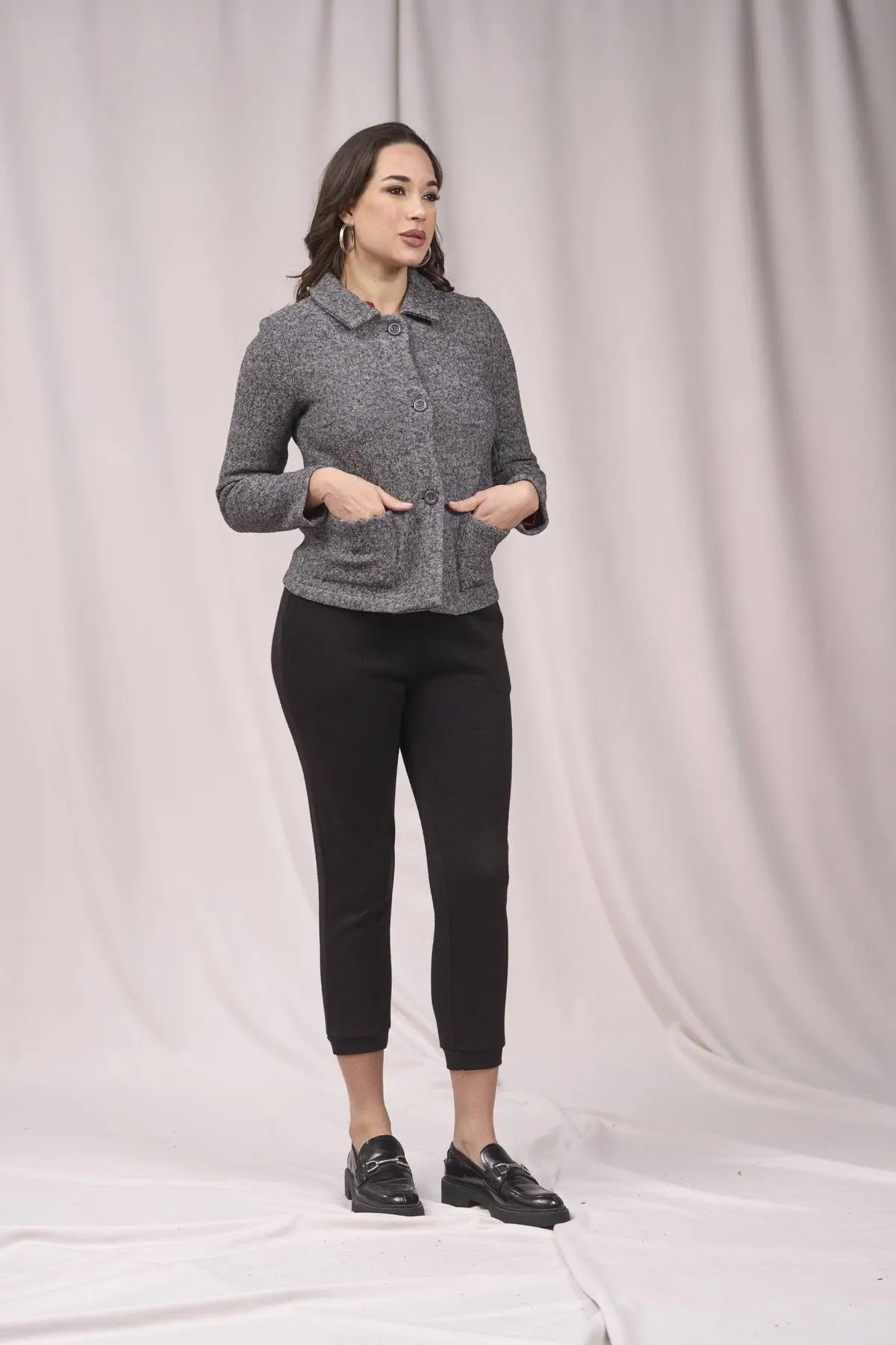 Abrigo corto con botones y bolsillos ANTRACITA