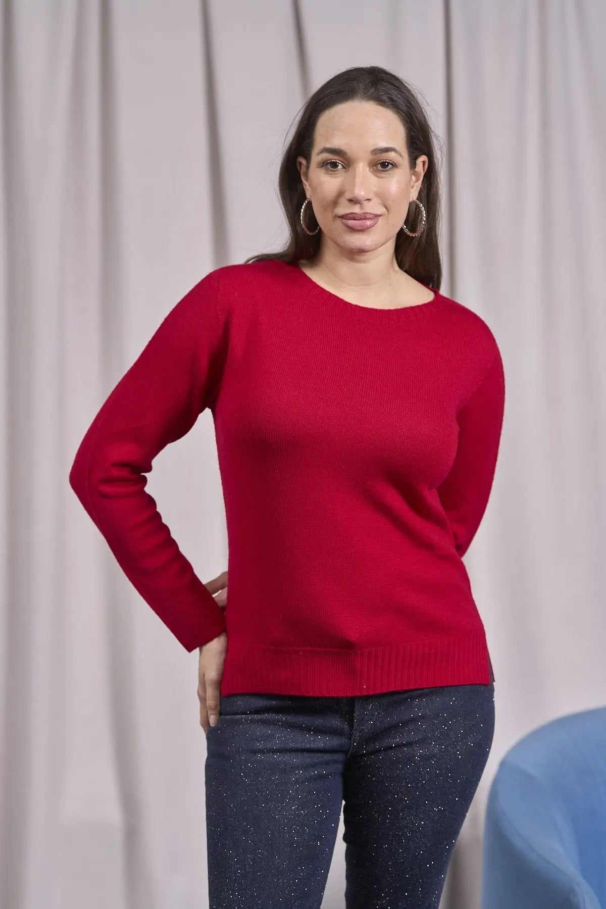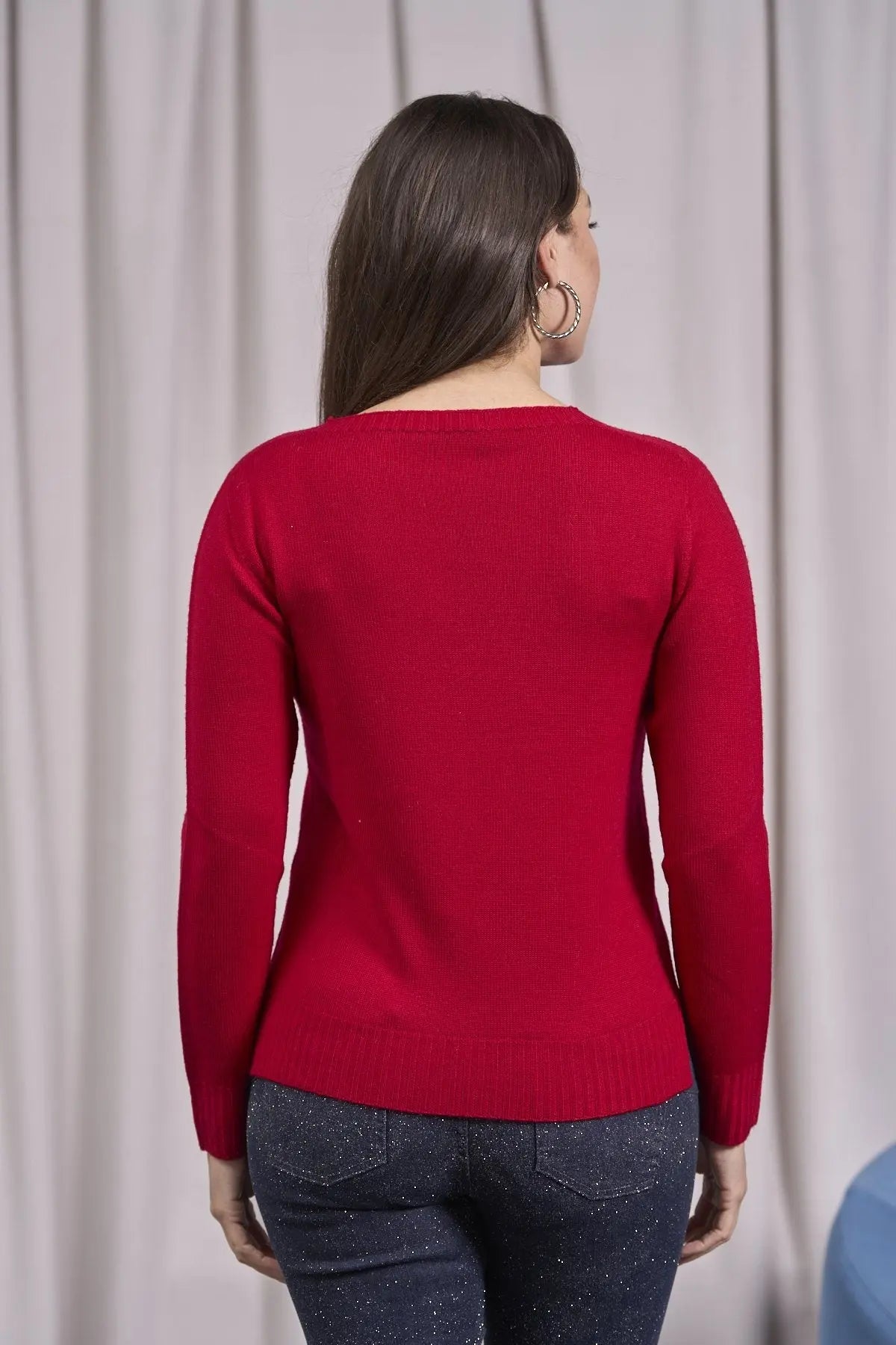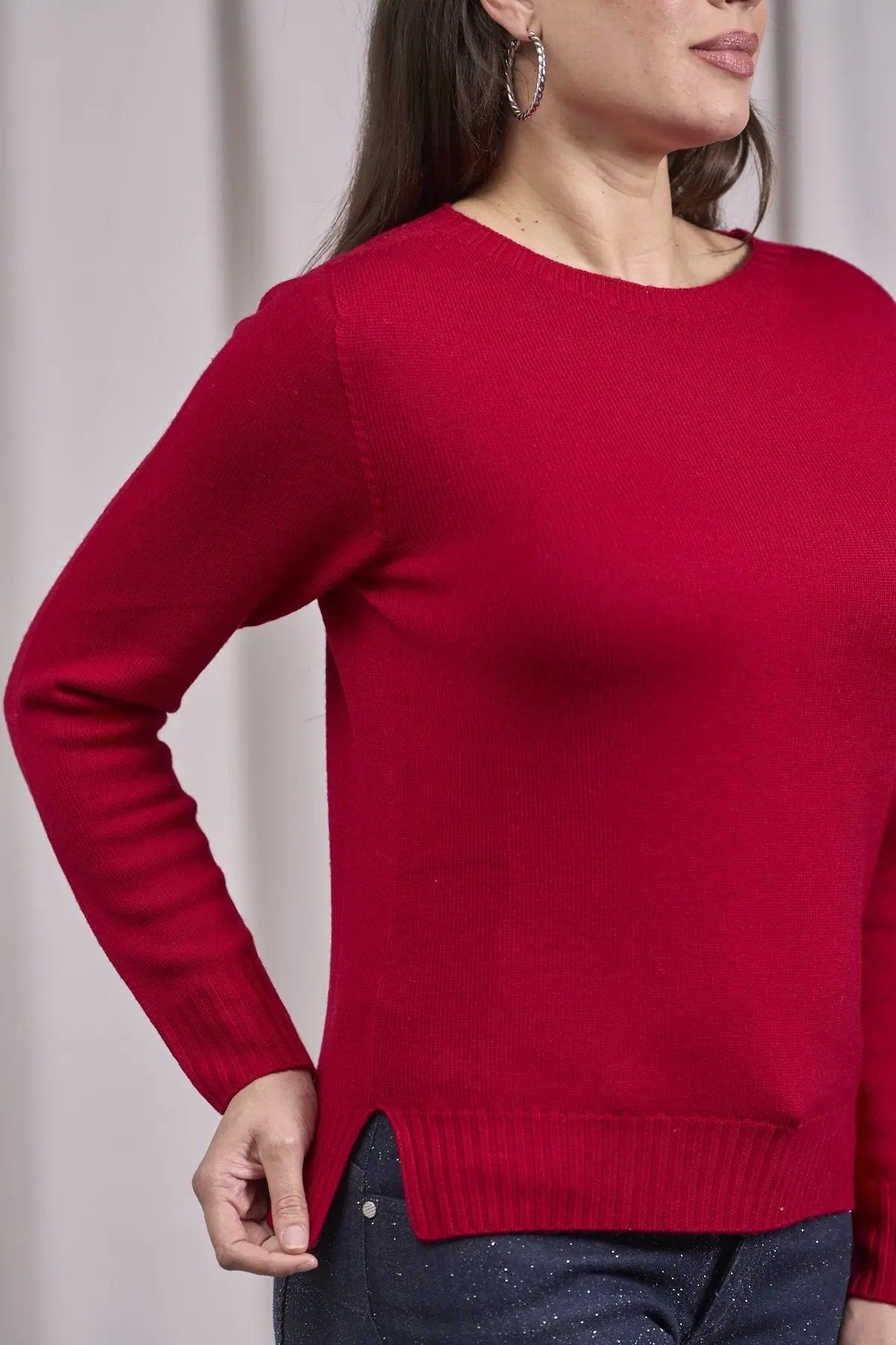 Suéter de cuello redondo con detalles de canalé ancho ROJO