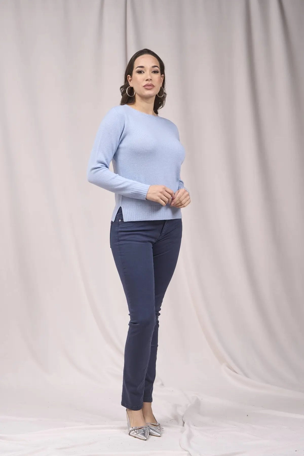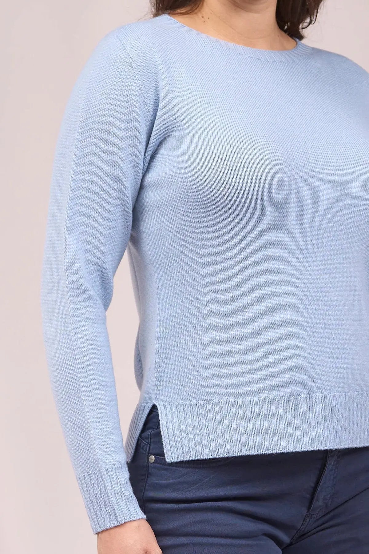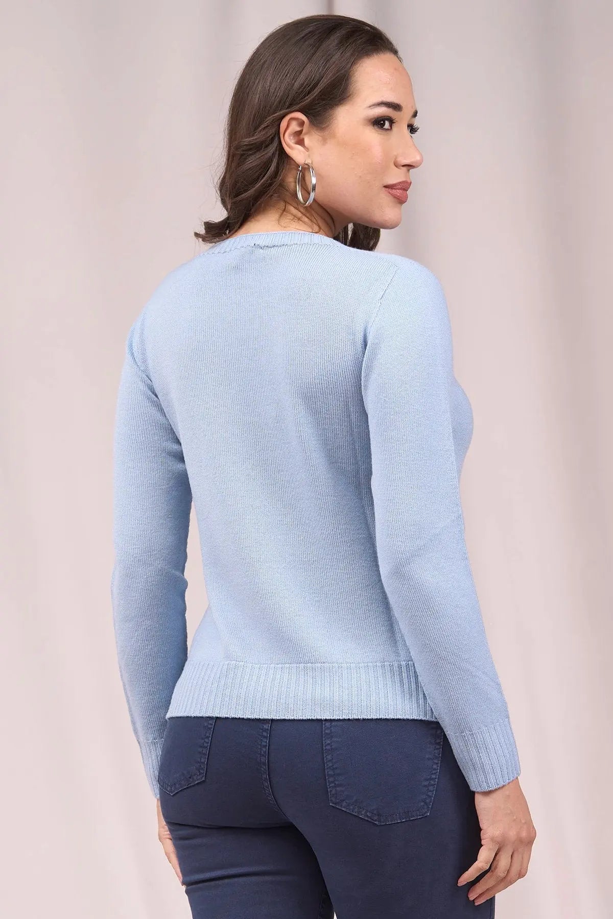 Suéter de cuello redondo con detalles de canalé ancho CELESTE